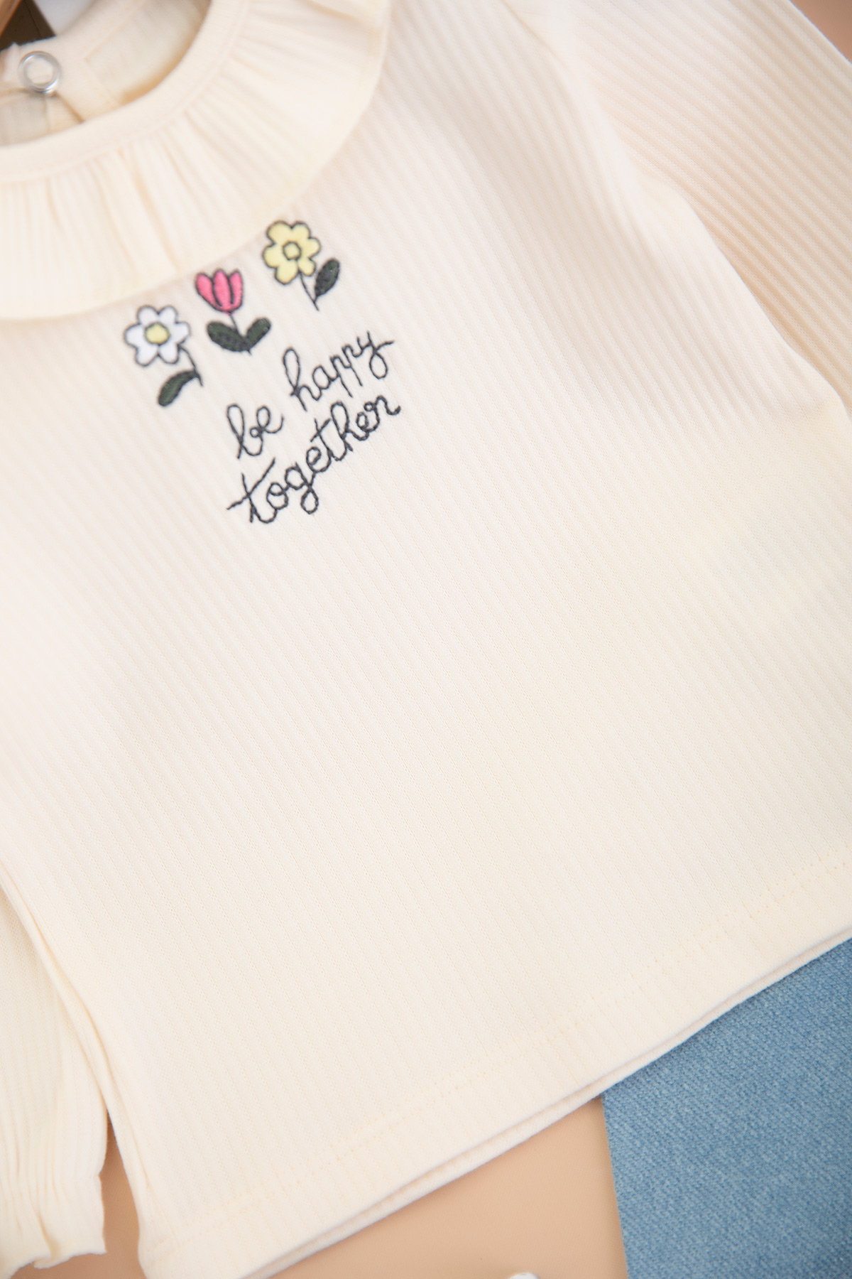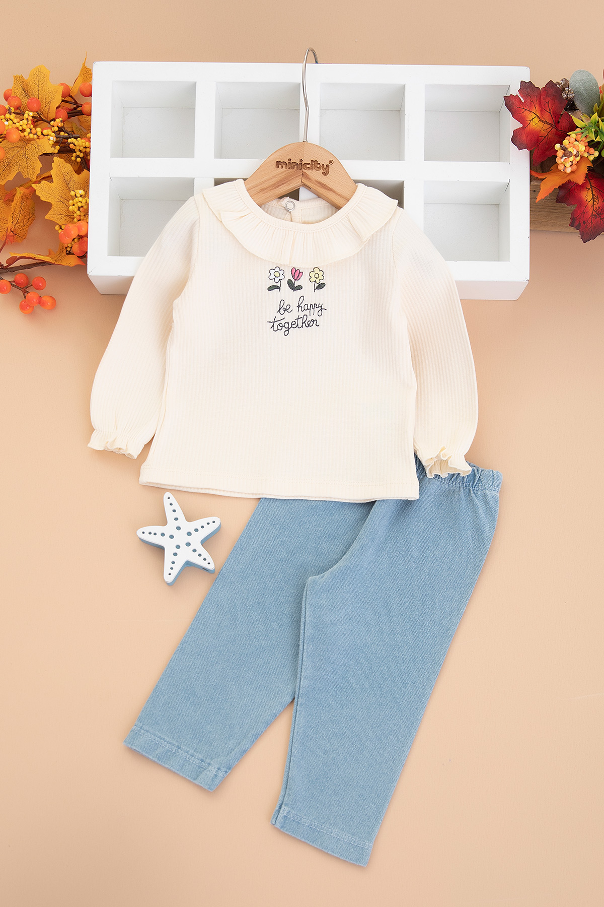 Kız Bebek Be Happy Nakışlı Kot Takım - 0329 (9-24 Ay)