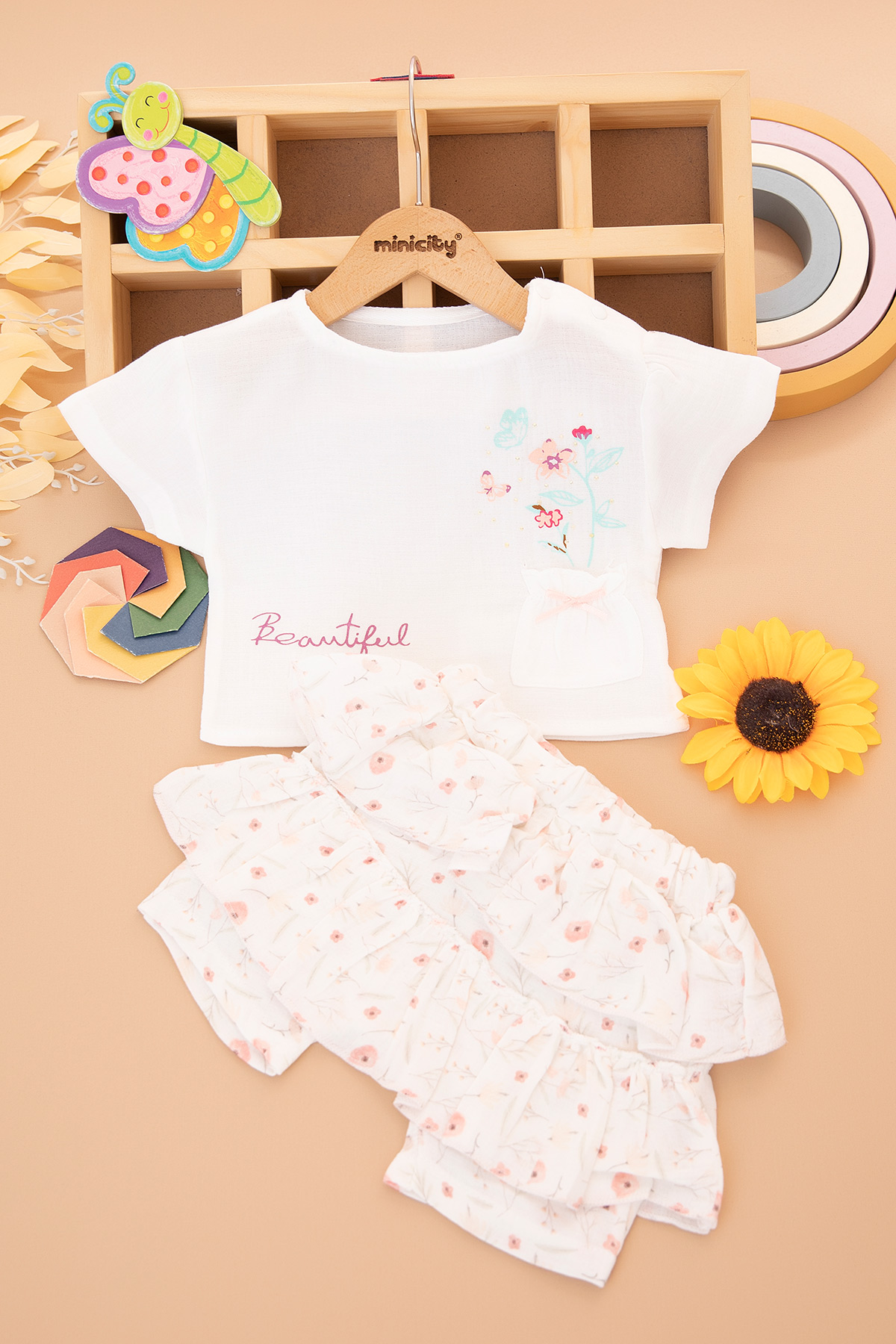 Kız Bebek Beautiful Baskılı Şortlu Takım - 2500 (9-18 Ay)