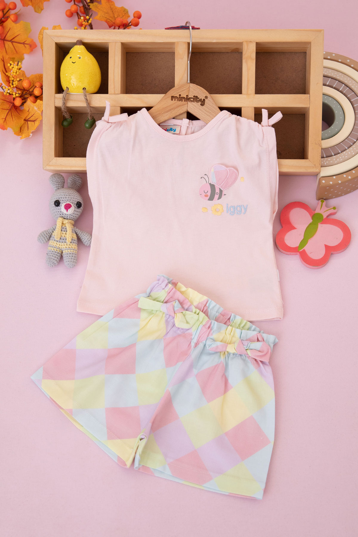 Kız Bebek Bee Arı Nakışlı Şortlu Takım - 126219 (6-24 Ay)