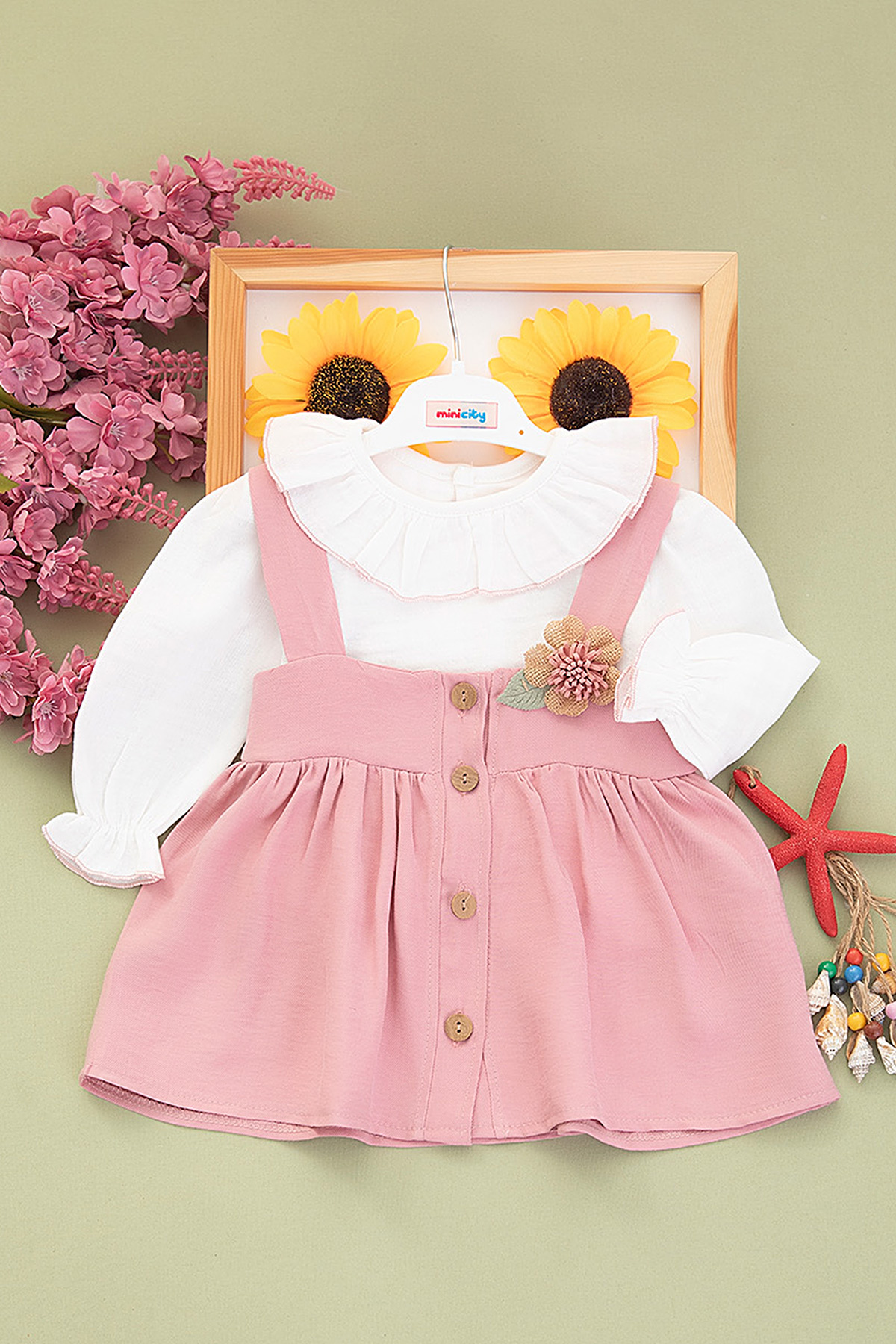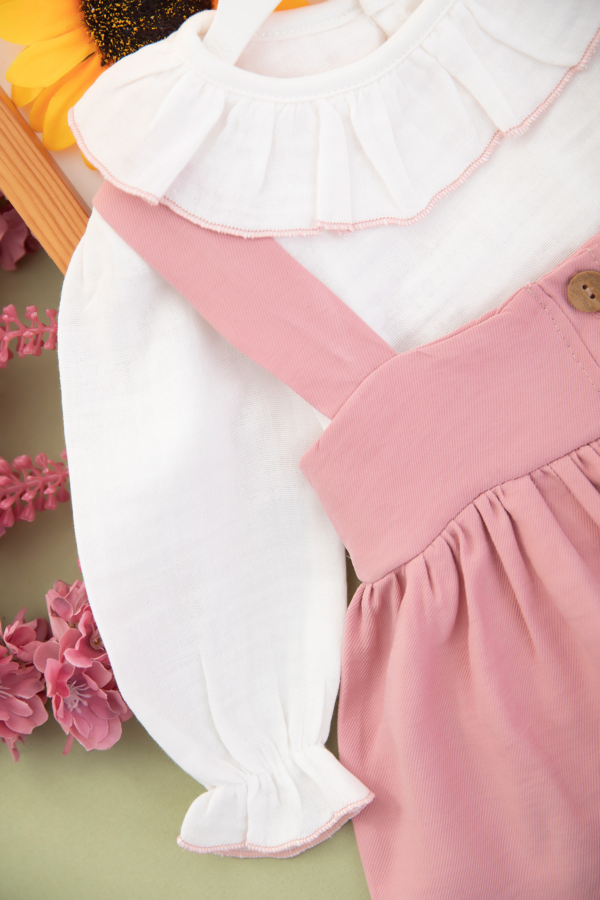 Kız Bebek Begonia Düğmeli Badi Salopet Takım - 3116 (9-24 Ay)