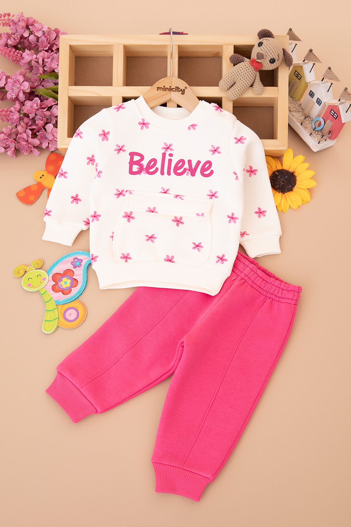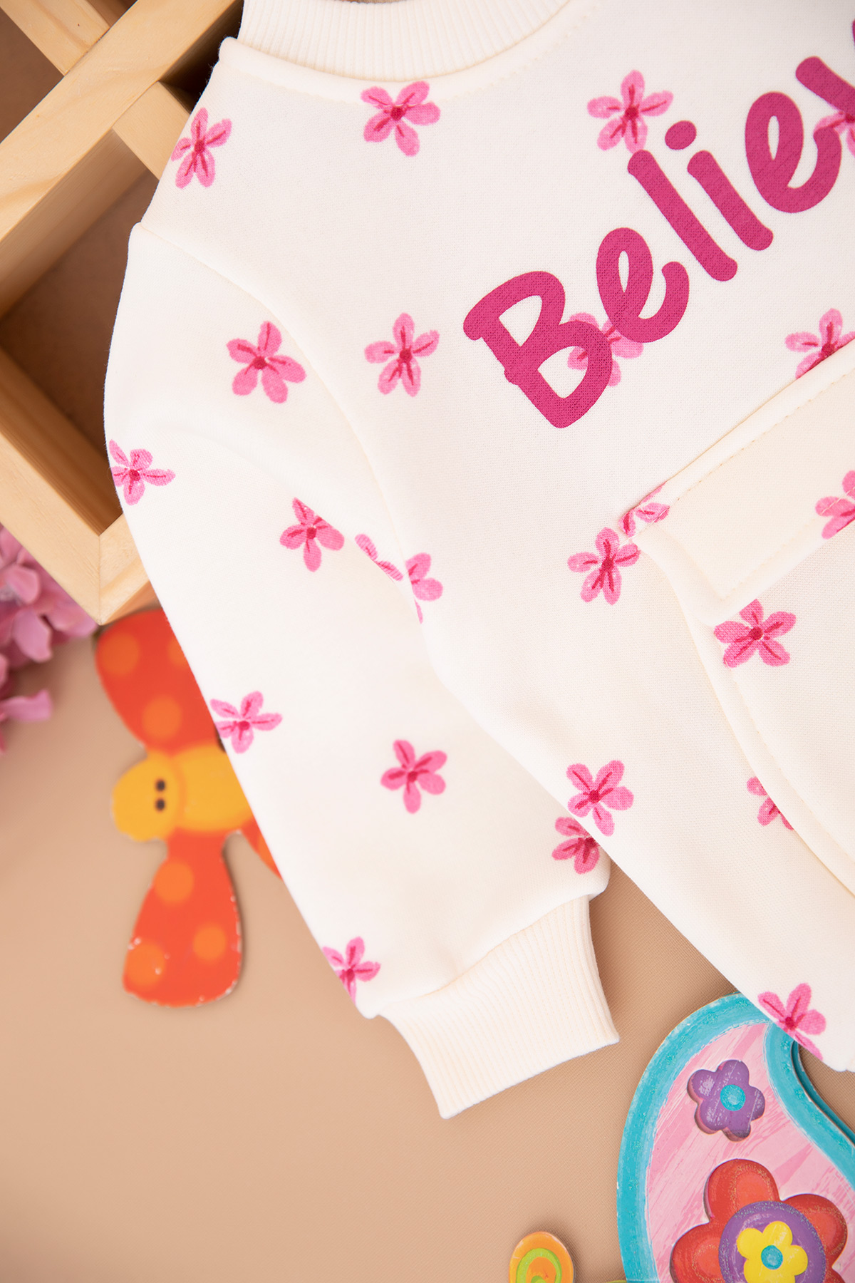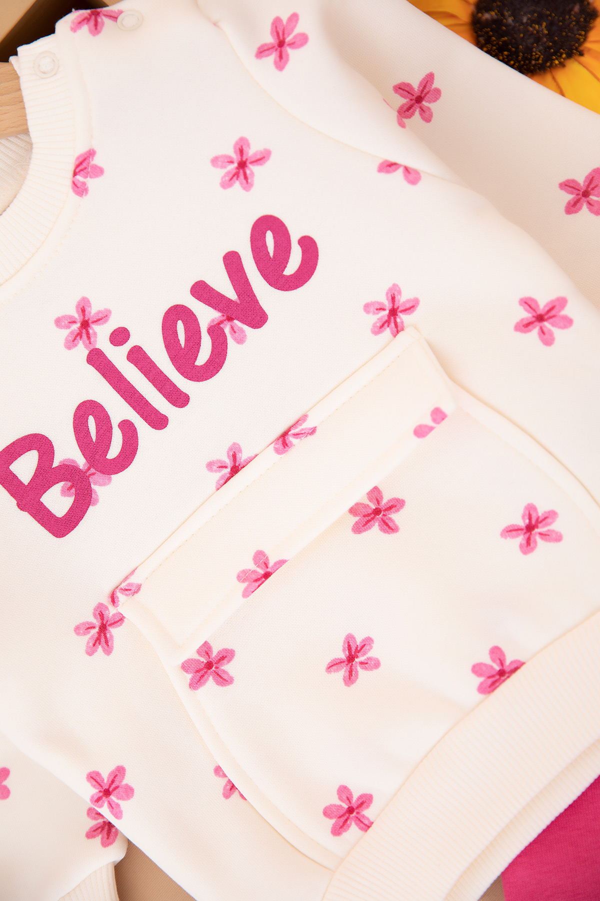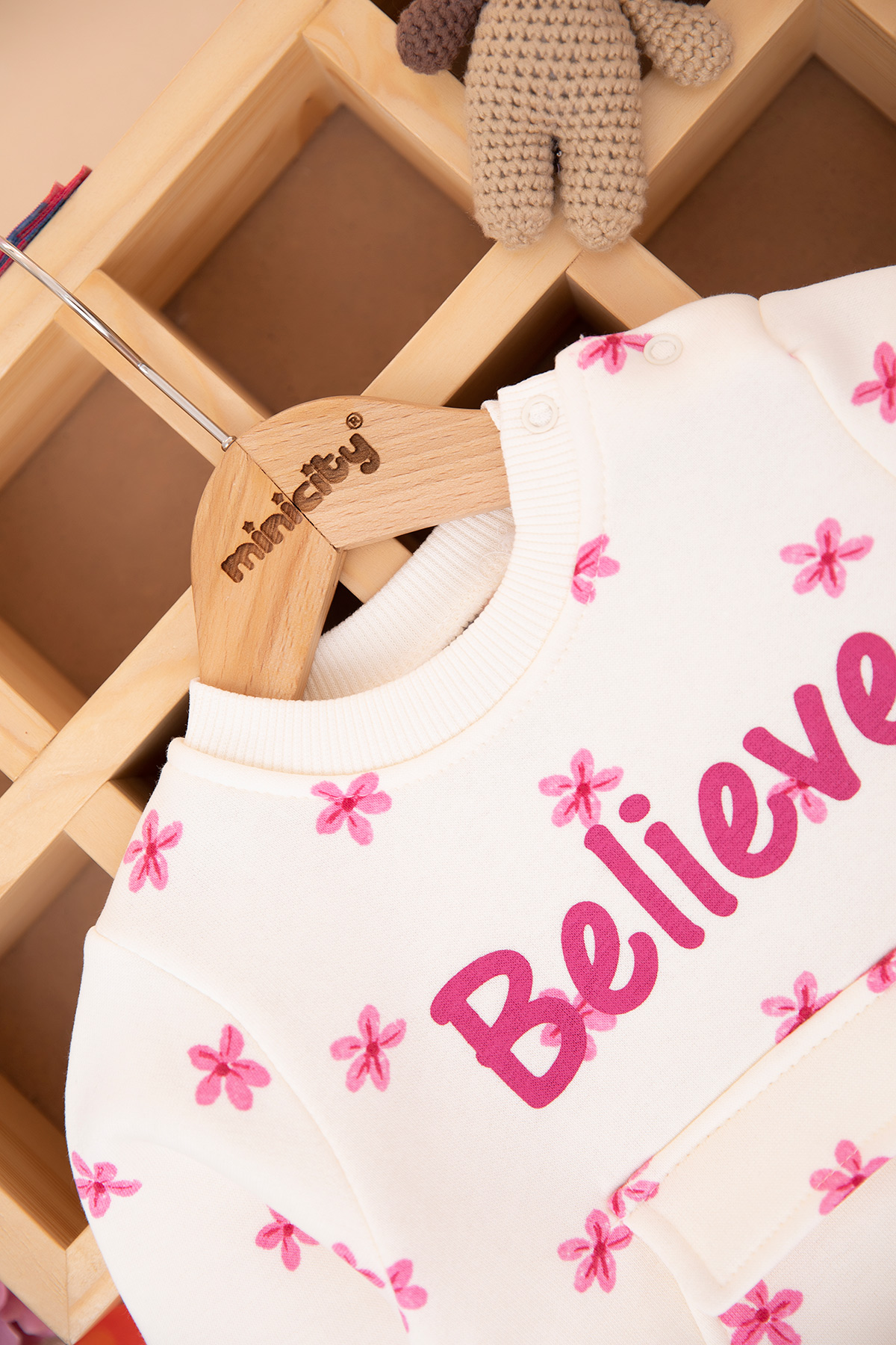 Kız Bebek Believe Baskılı Üçip Takım - 25879 (9-24 Ay)