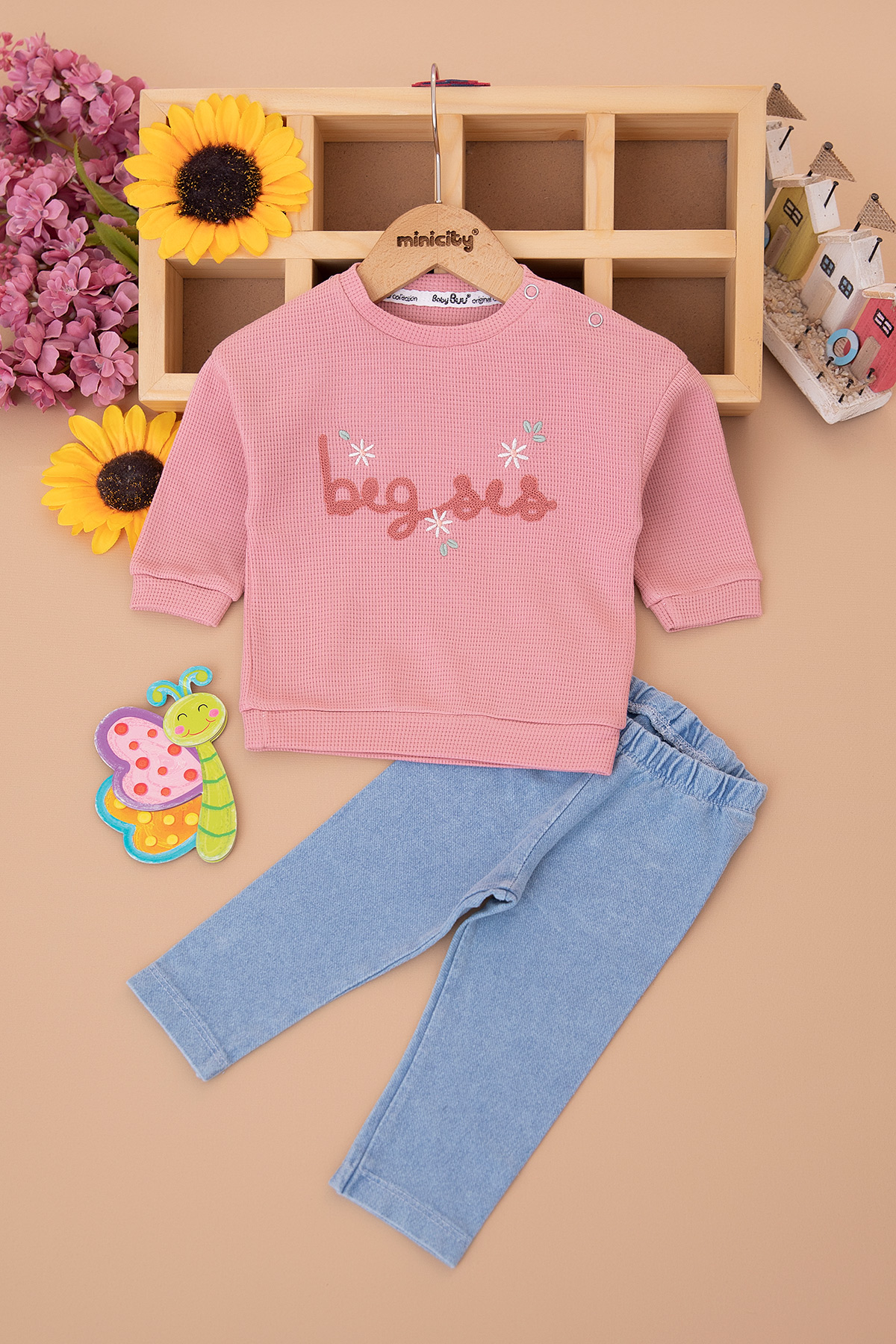 Kız Bebek Big Sis Waffle Takım - 0354 (9-24 Ay)