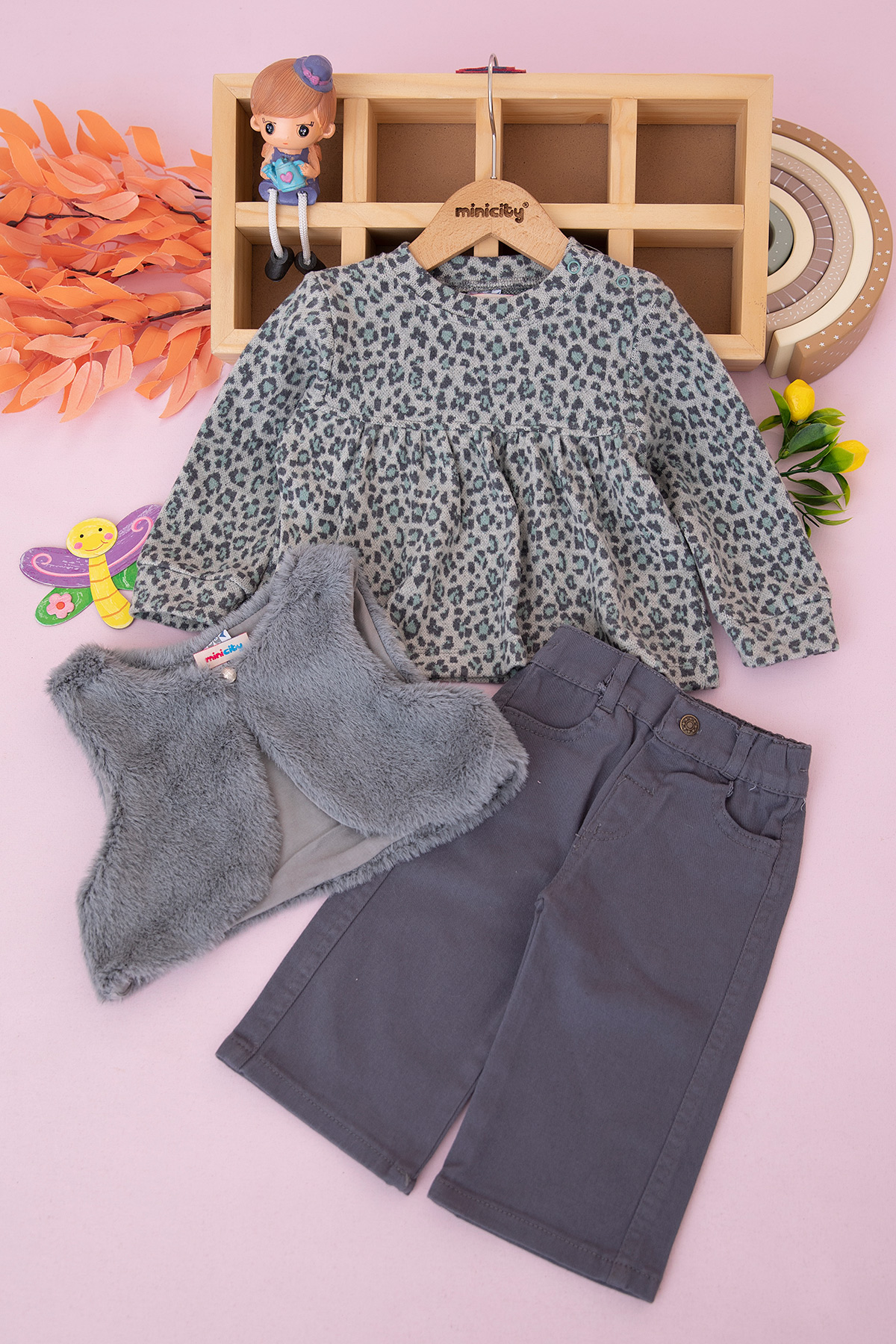 Kız Bebek Bolerolu Leoparlı Üçlü Takım - 26052 (9-24 Ay)