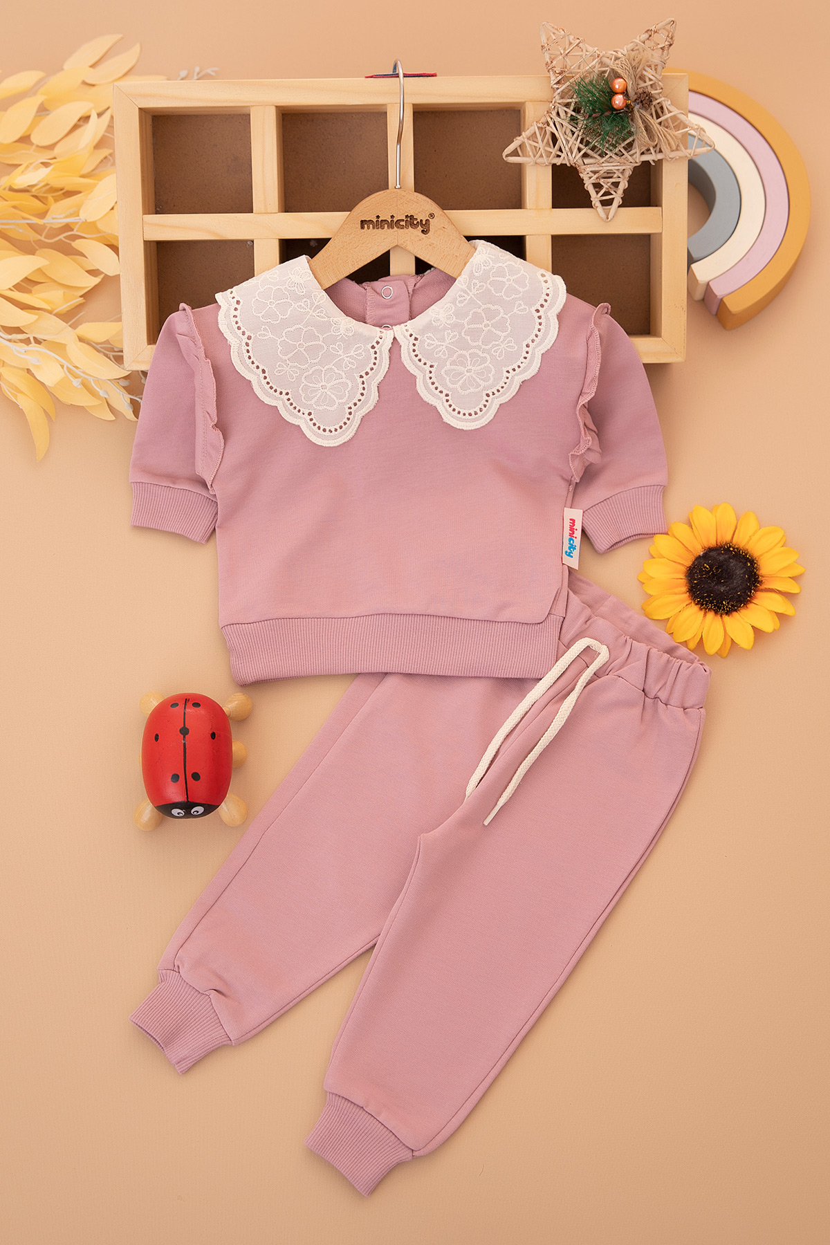 Kız Bebek Brode Yakalı Takım - 8822 (6-24 Ay)