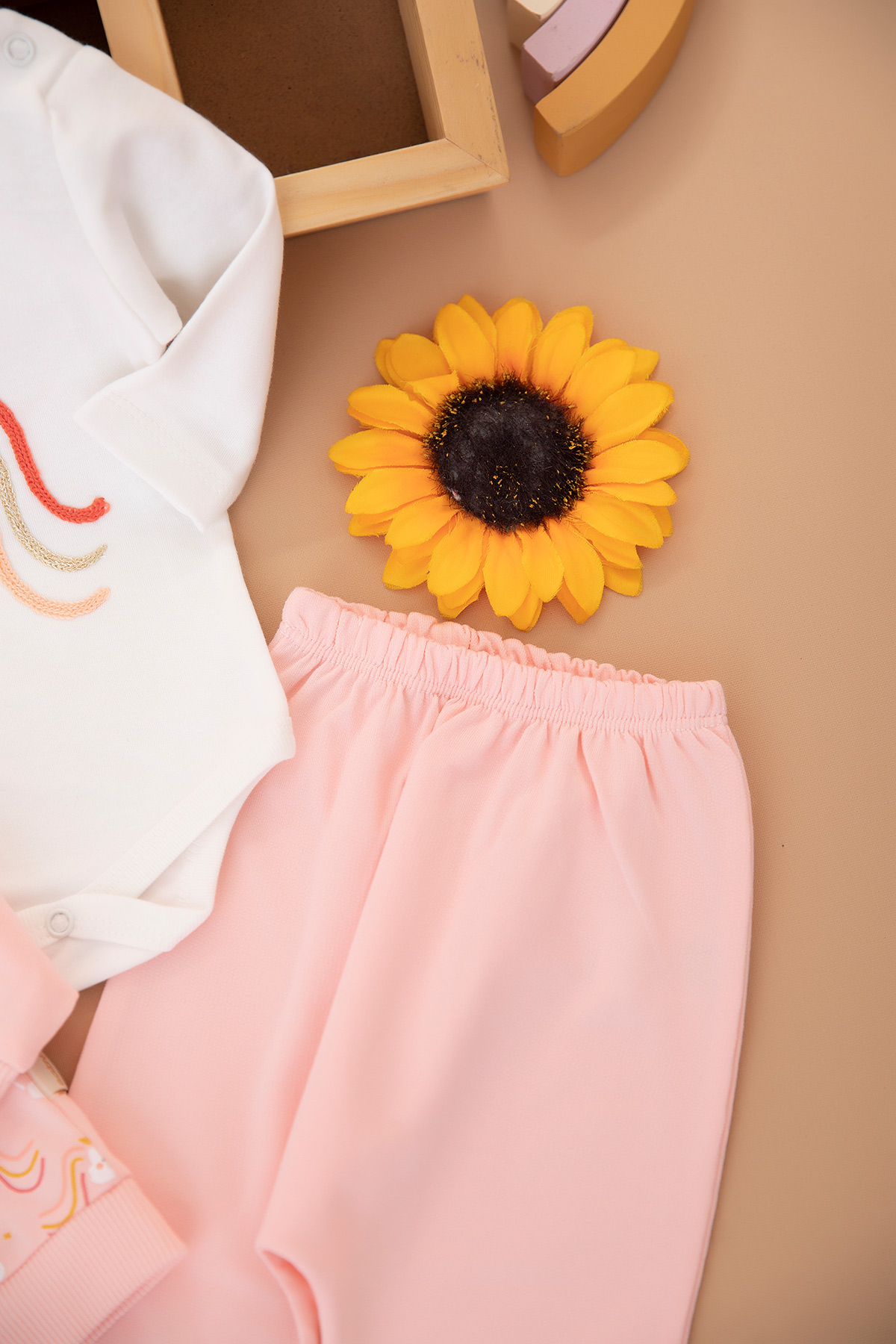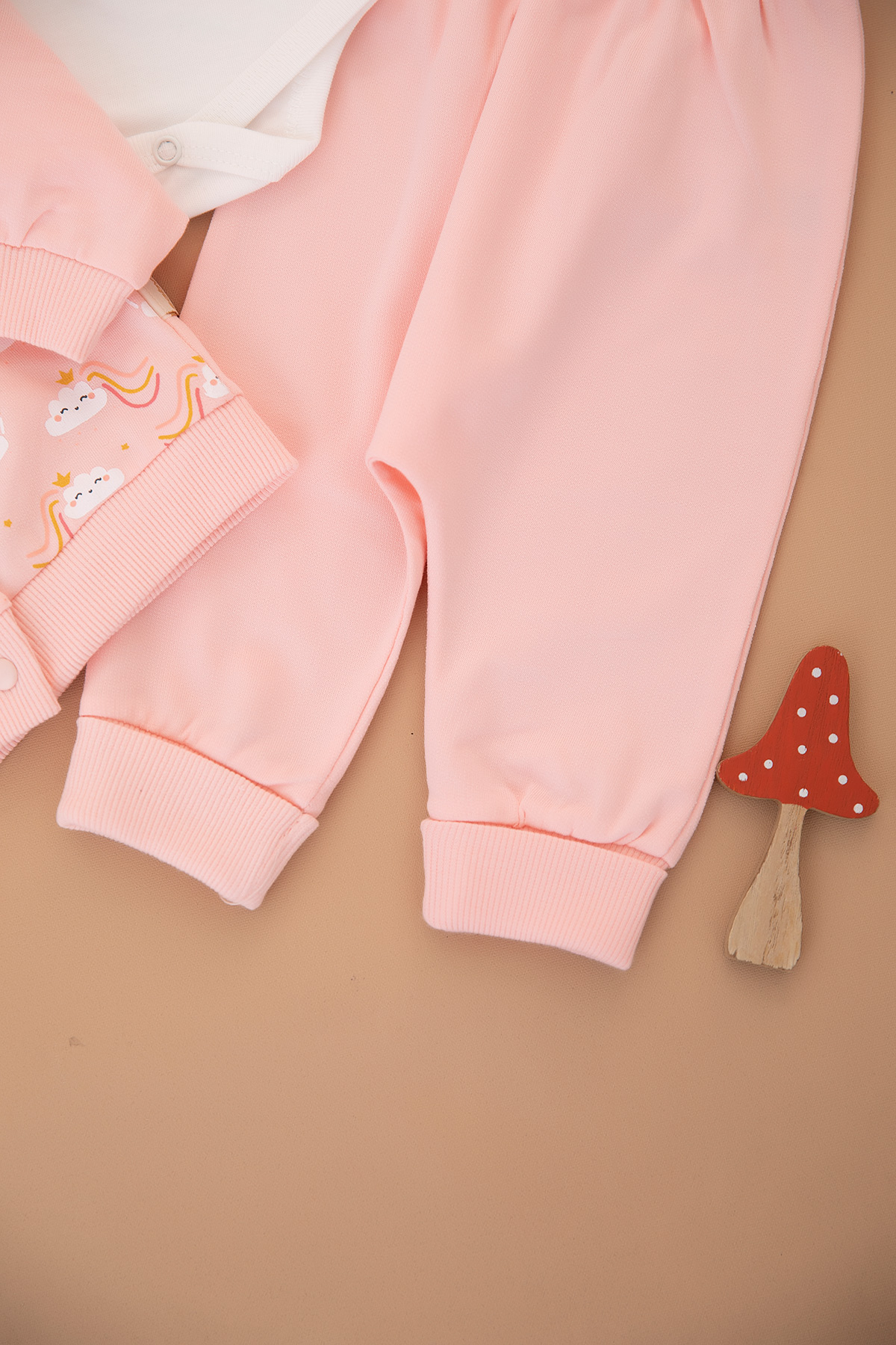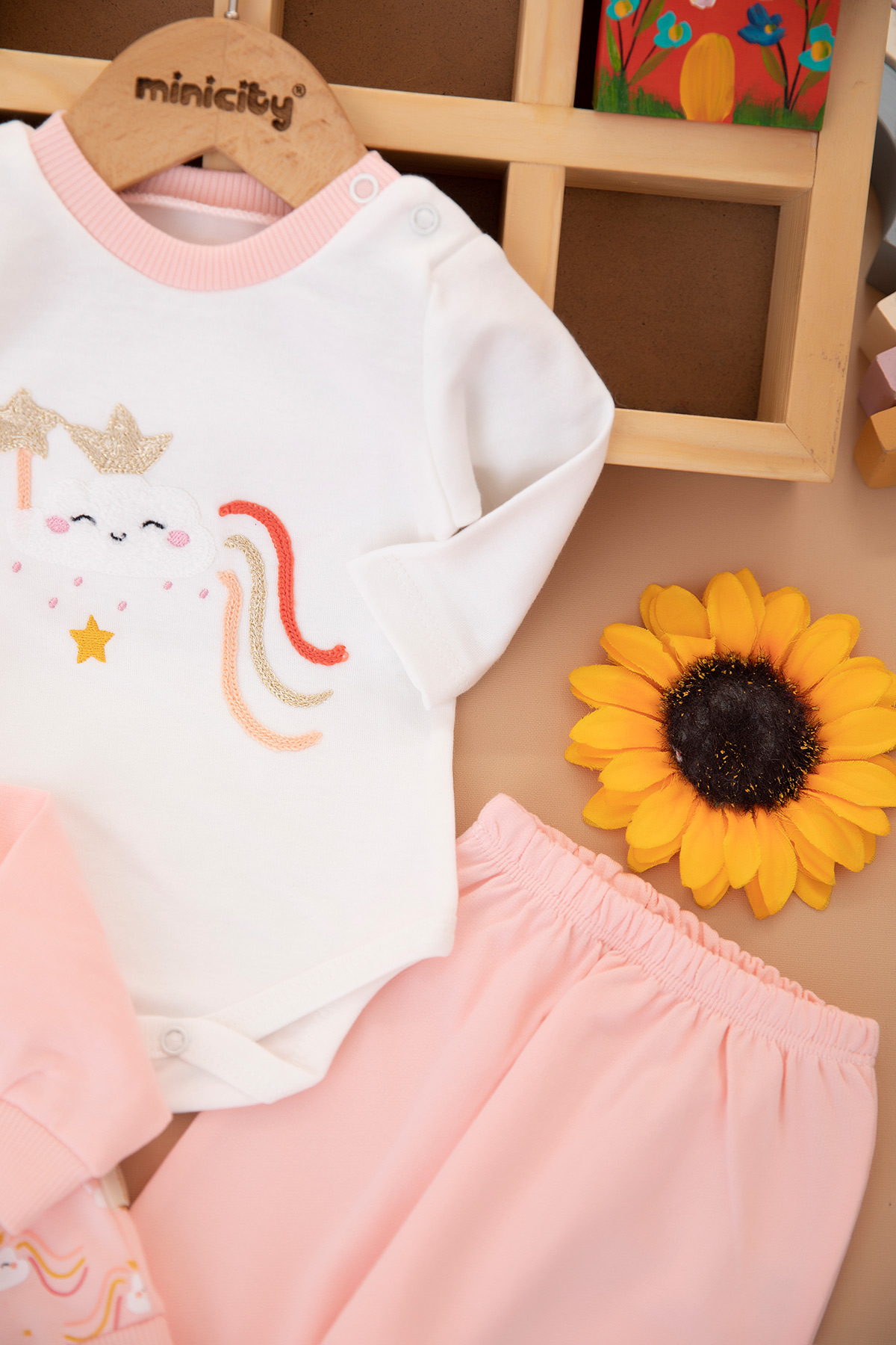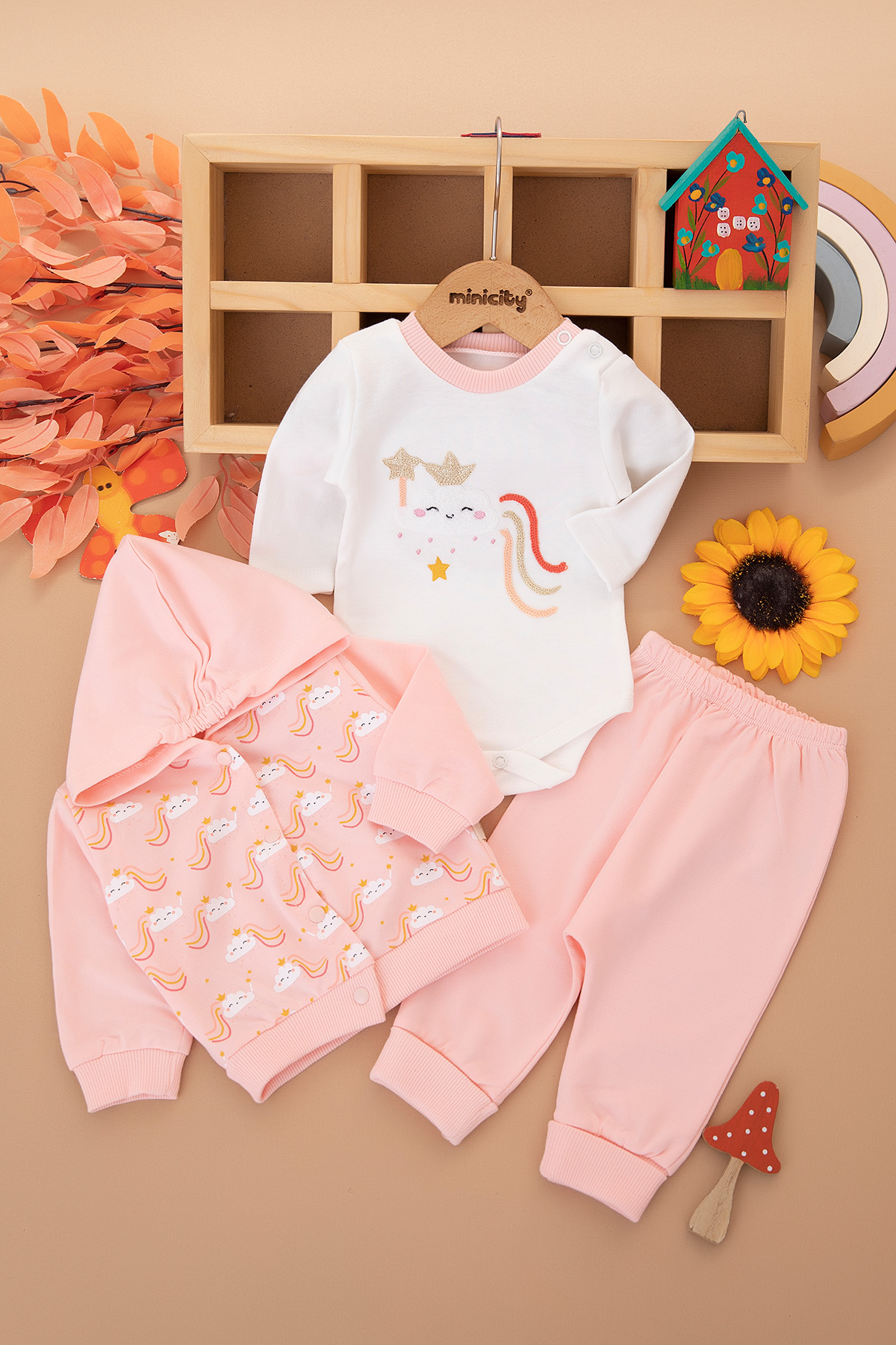 Kız Bebek Bulut Baskılı Üçlü Takım - 2136 (0-9 Ay)