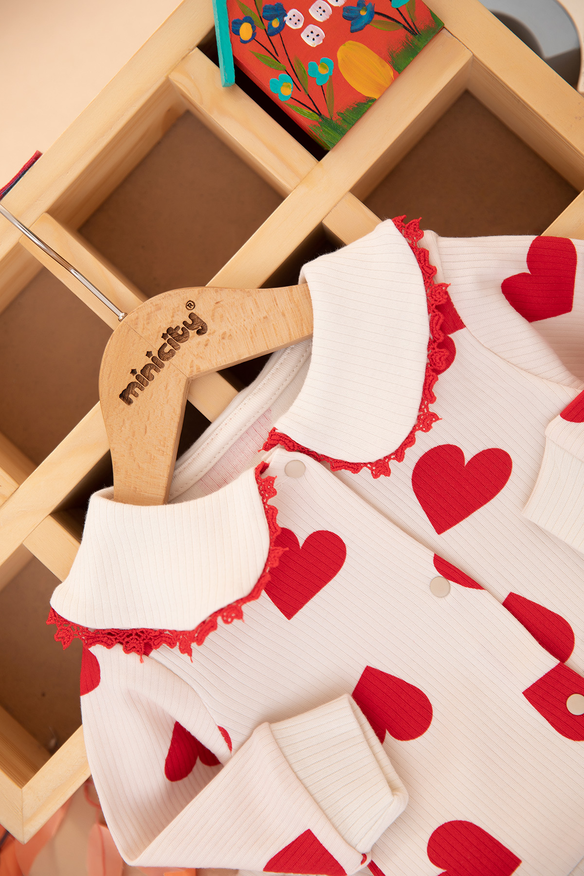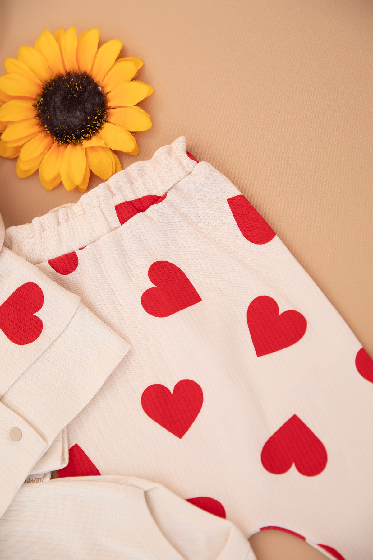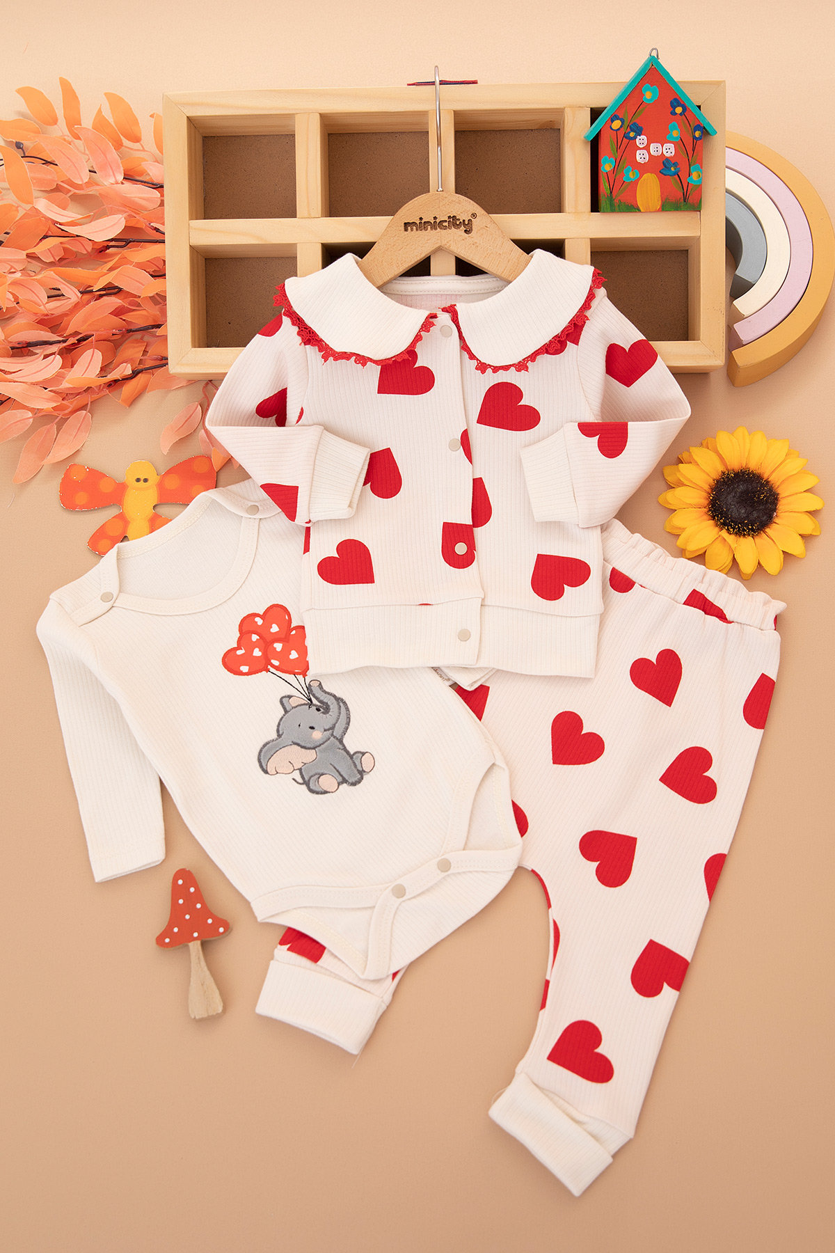 Kız Bebek Büyük Kalp Baskılı Üçlü Takım - 1222 (3-9 Ay)