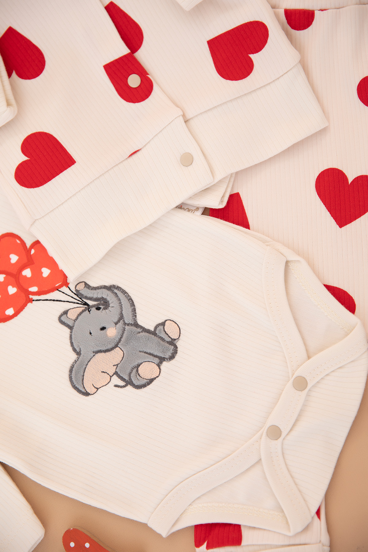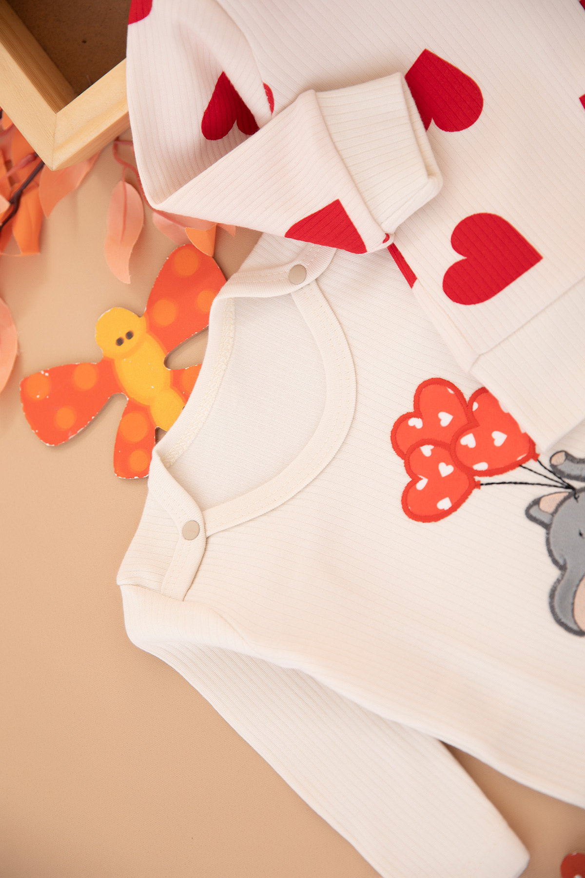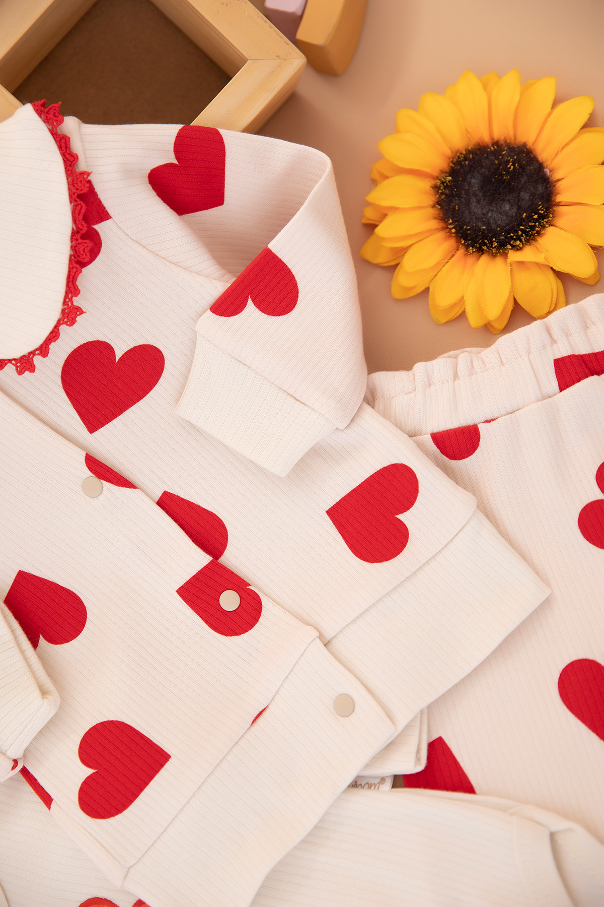 Kız Bebek Büyük Kalp Baskılı Üçlü Takım - 1222 (3-9 Ay)