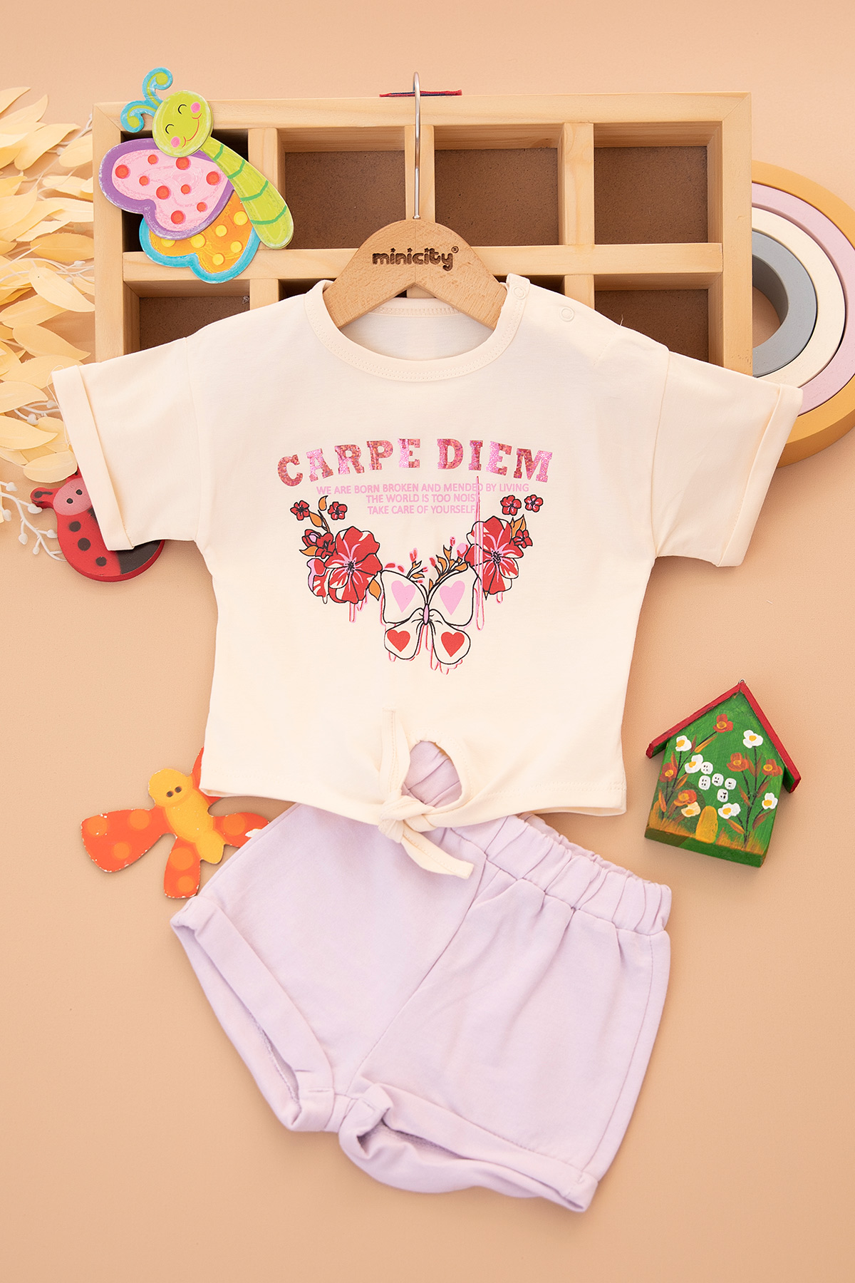 Kız Bebek Carpe Dıem Baskılı Şortlu Takım - 2535 (6-24 Ay)