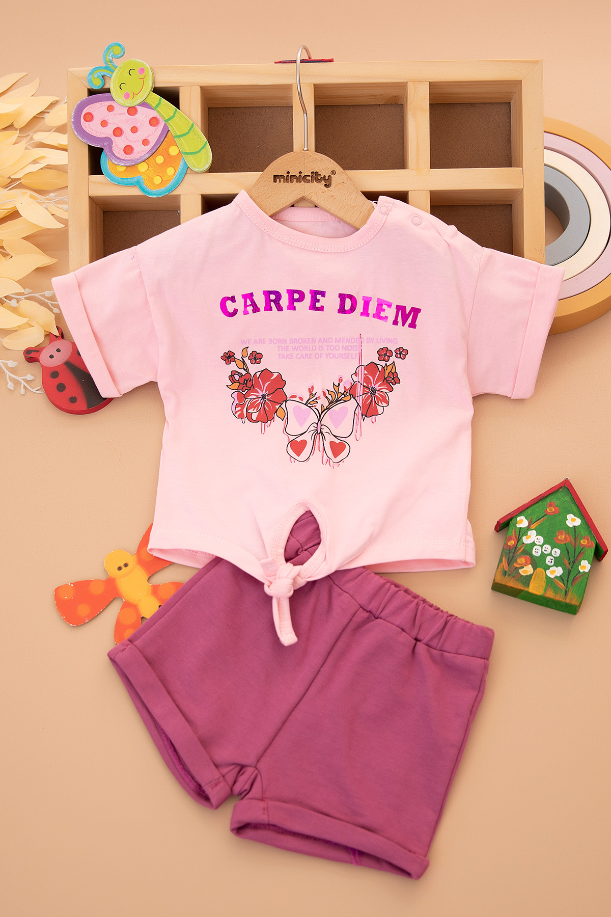 Kız Bebek Carpe Dıem Baskılı Şortlu Takım - 2535 (6-24 Ay)