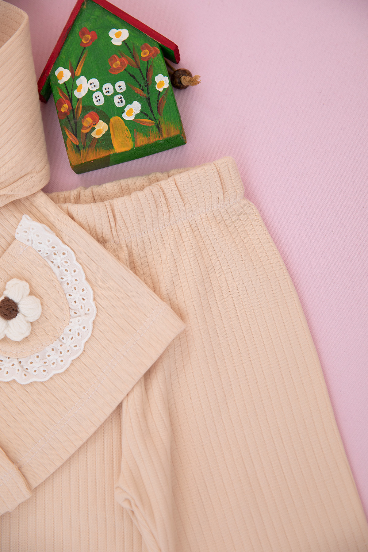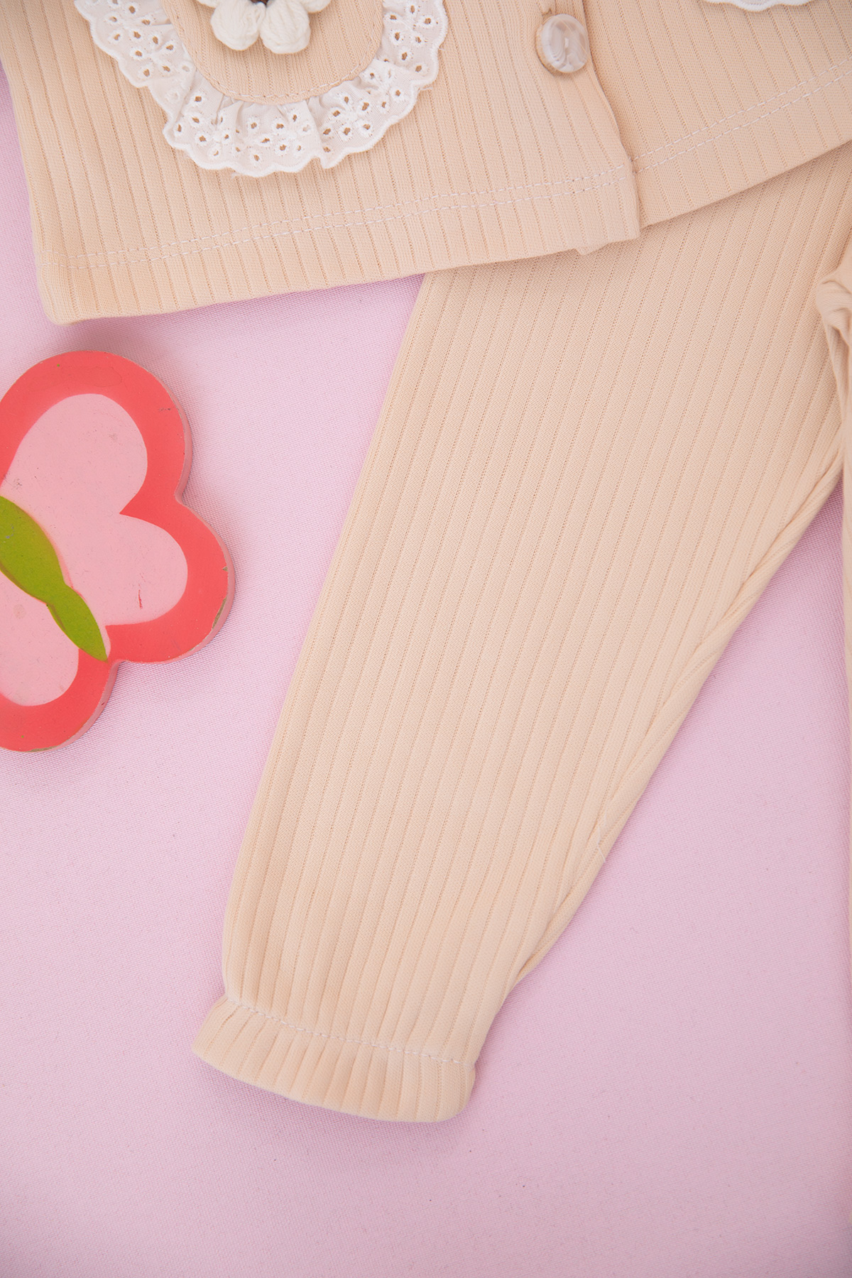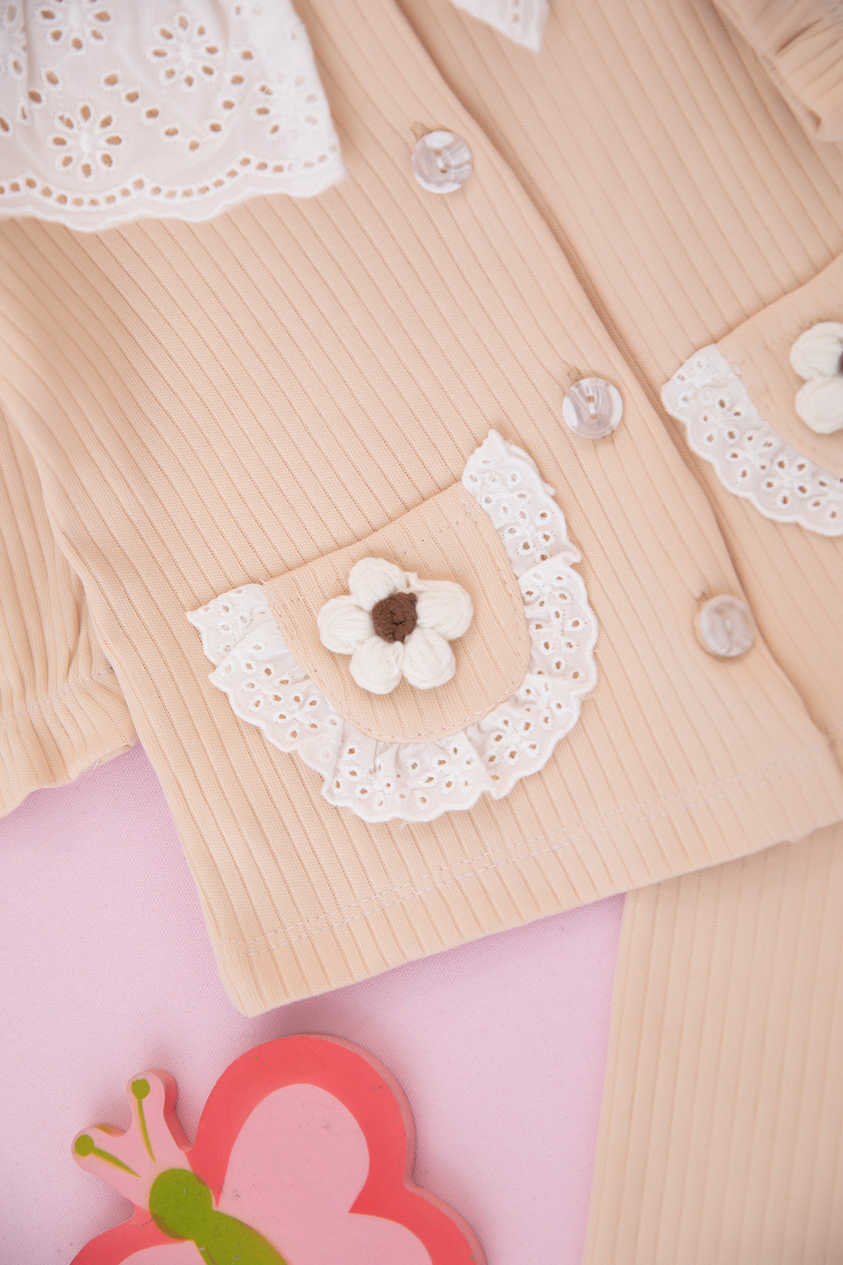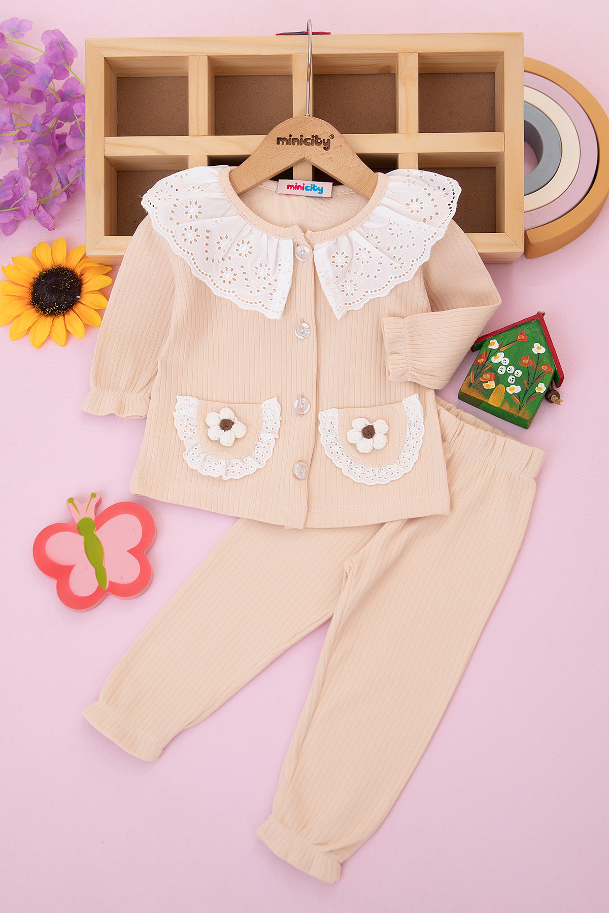 Kız Bebek Cep Detaylı Çiçek Figürlü Takım - 5007 (6-24 Ay)