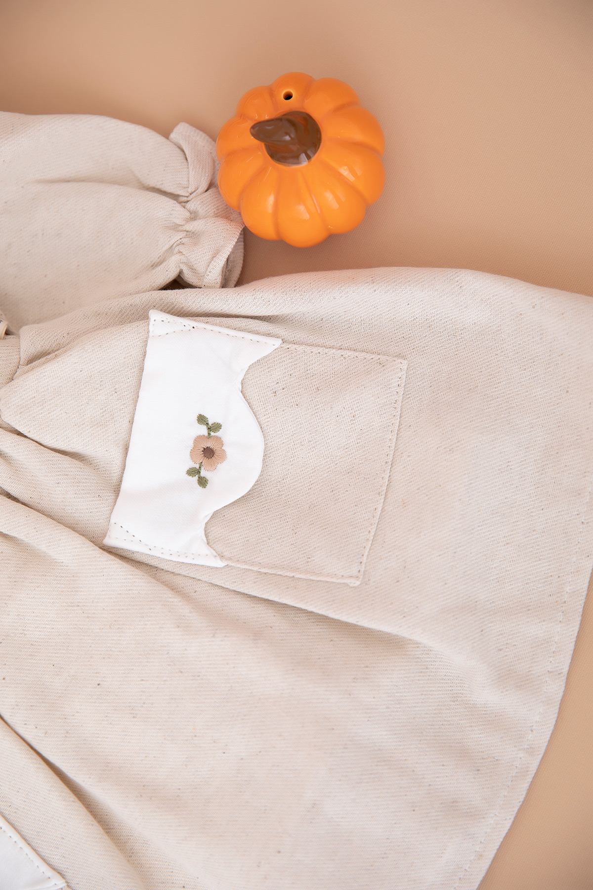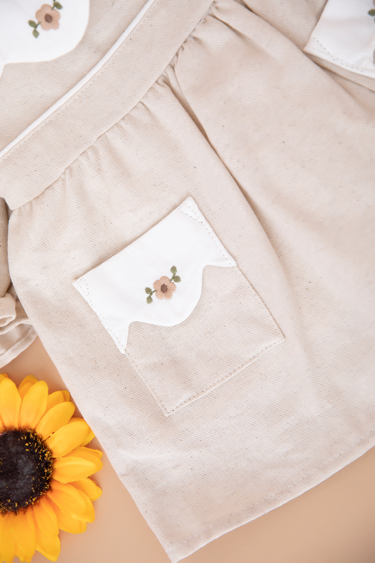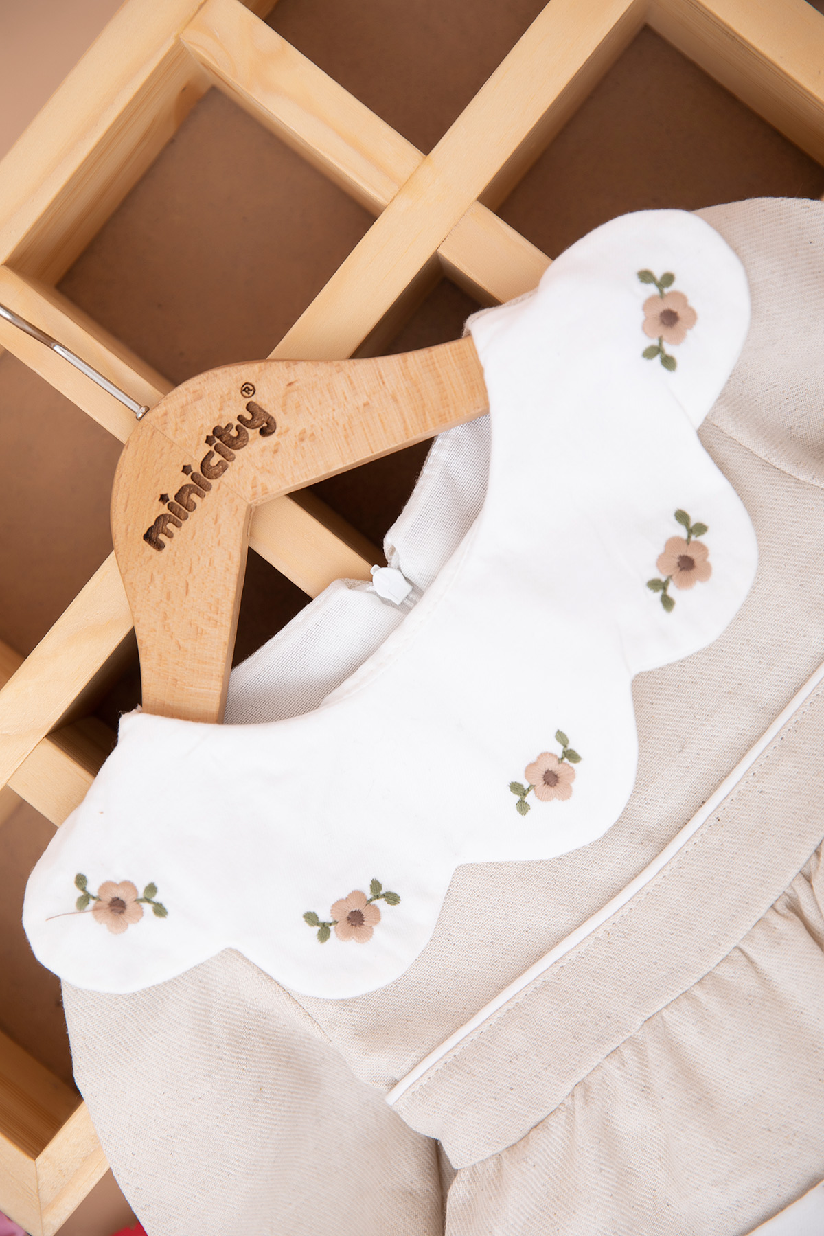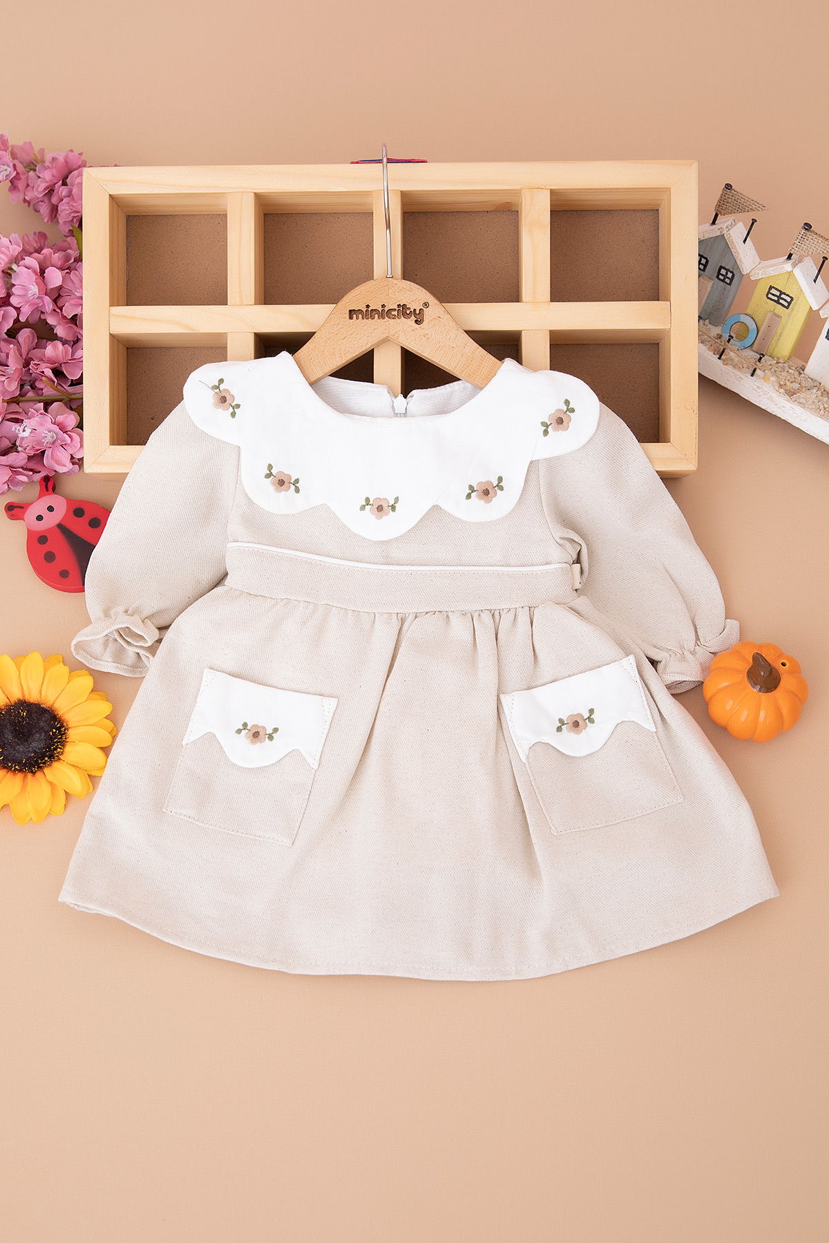 Kız Bebek Cep Nakışlı Keten Elbise - 4130 (9-24 Ay)