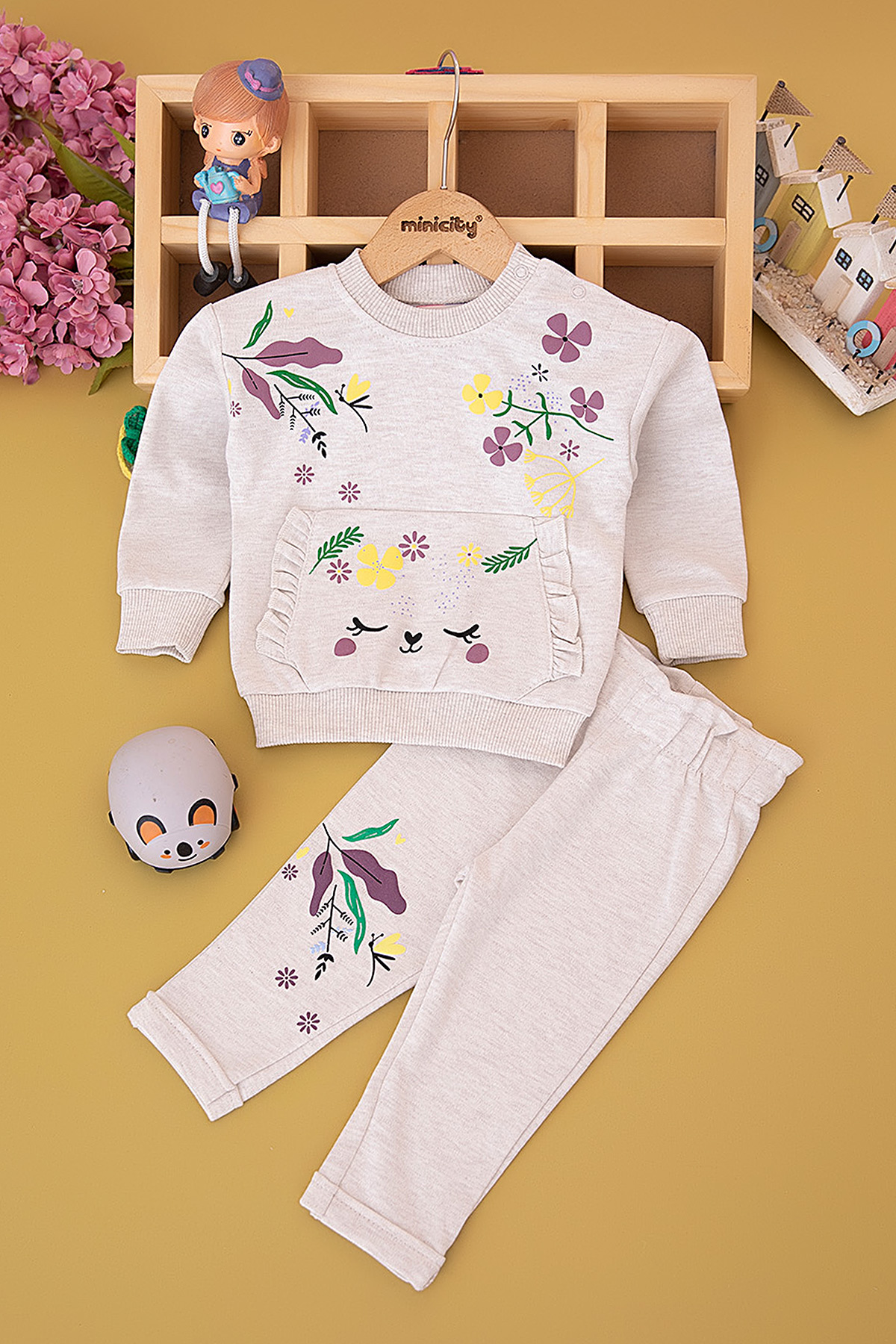 Kız Bebek Cepli Hayvan Baskılı Takım - 26011 (9-24 Ay)