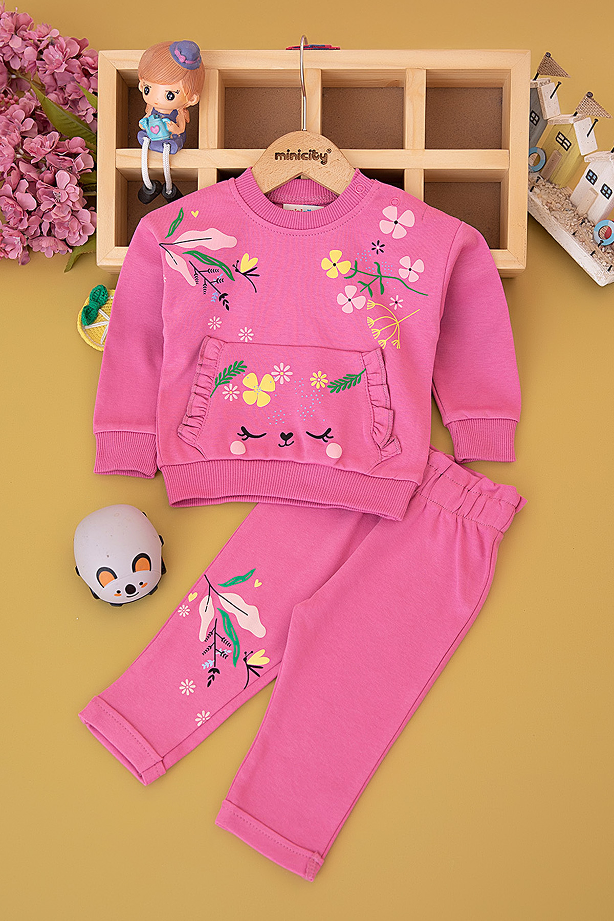 Kız Bebek Cepli Hayvan Baskılı Takım - 26011 (9-24 Ay)