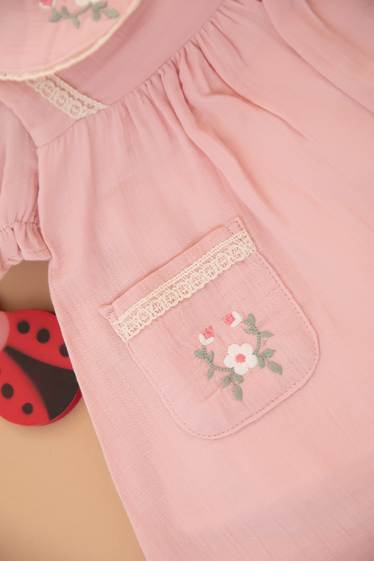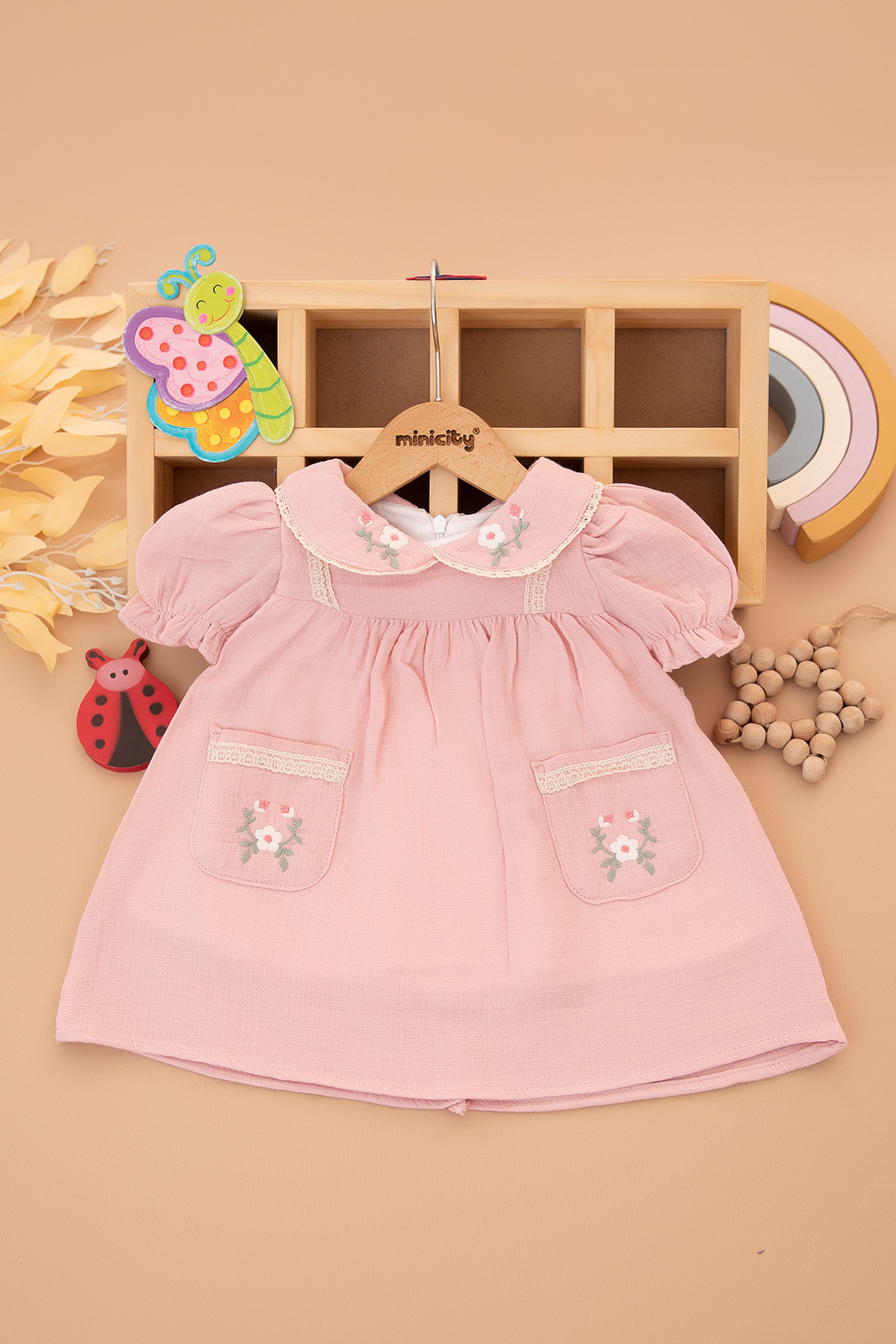 Kız Bebek Cepli Nakışlı Elbise - 3019 (9-24 Ay)