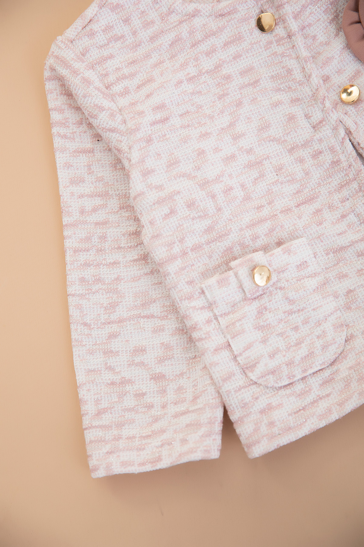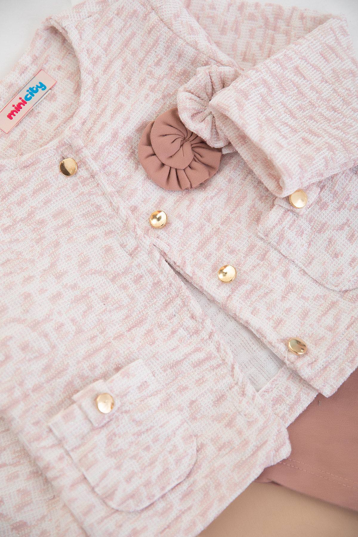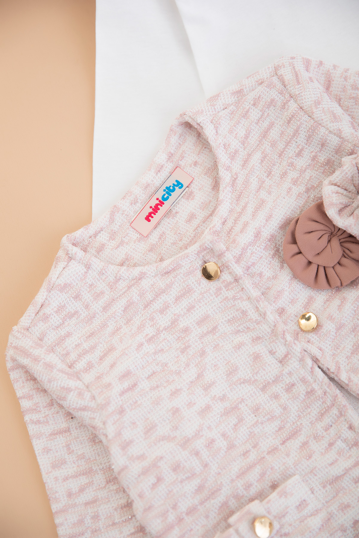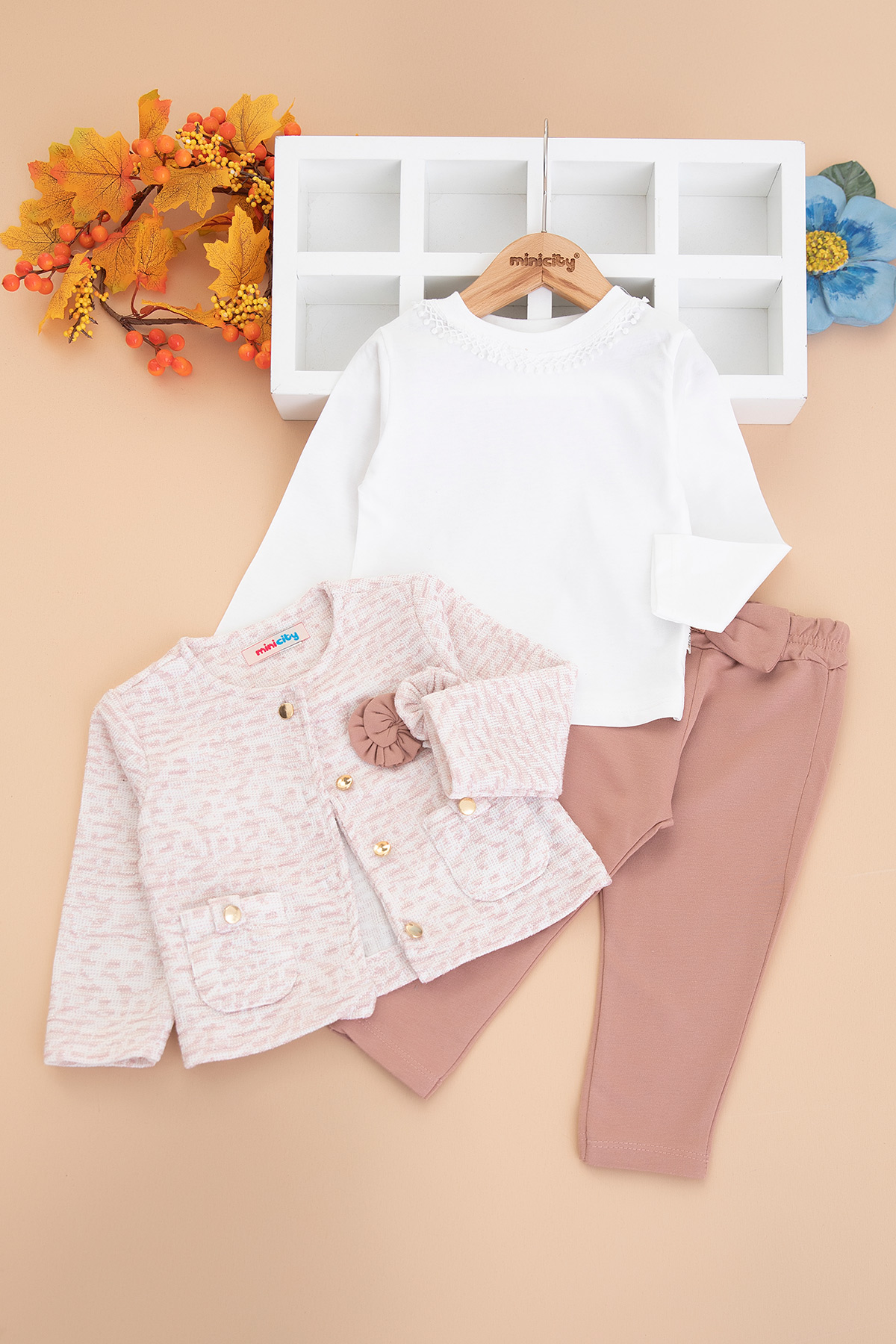 Kız Bebek Cepli Simli Hırkalı Üçlü Takım - 90010 (6-24 Ay)