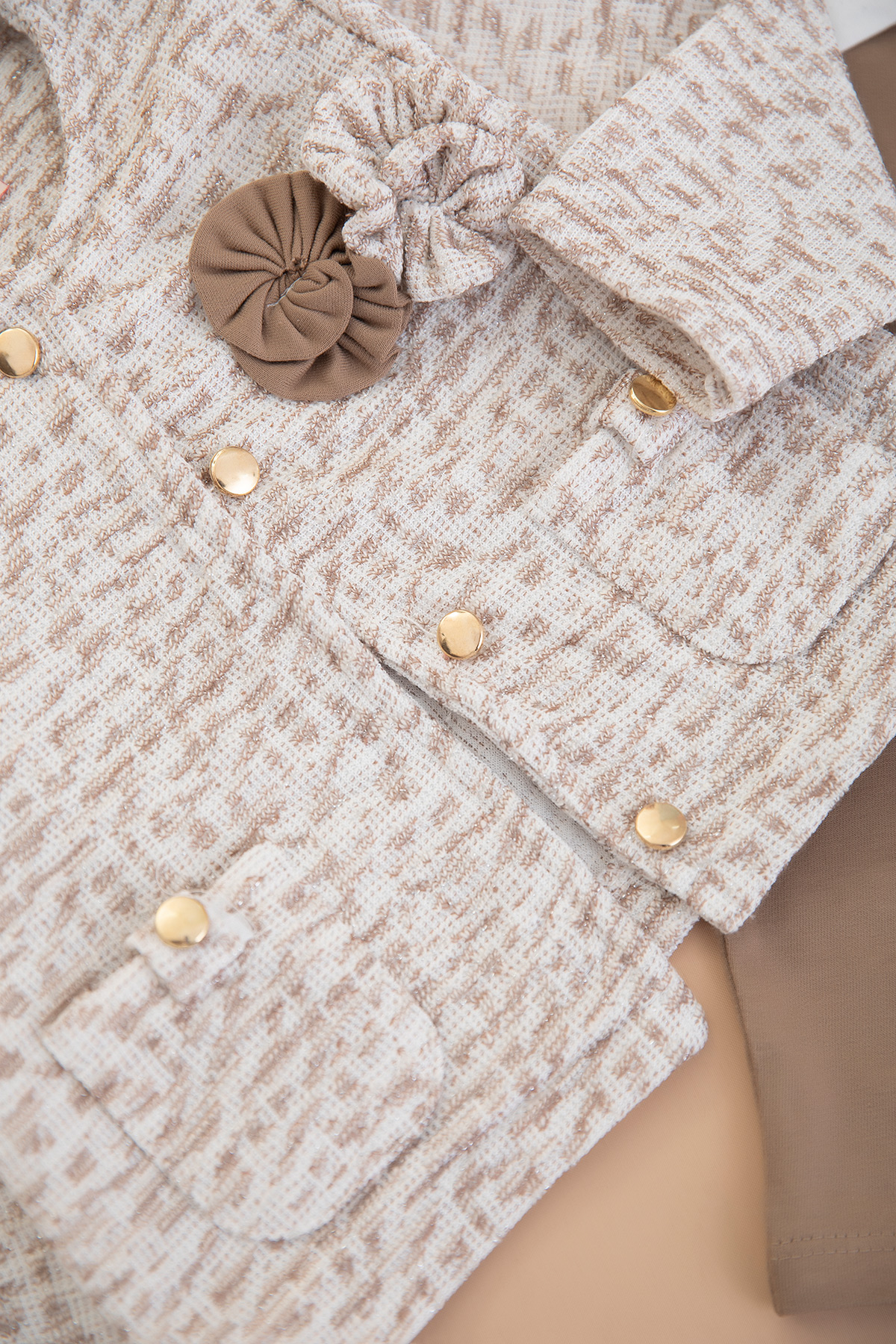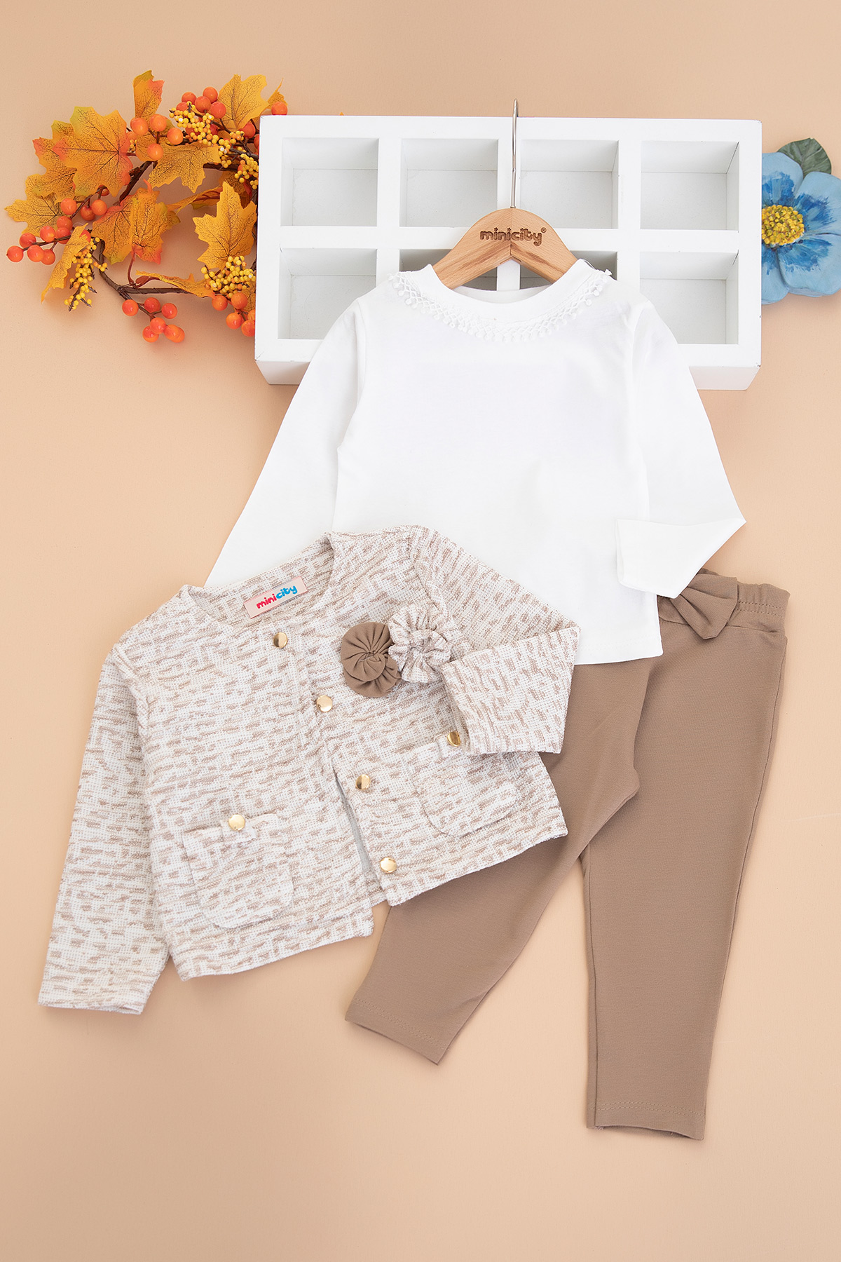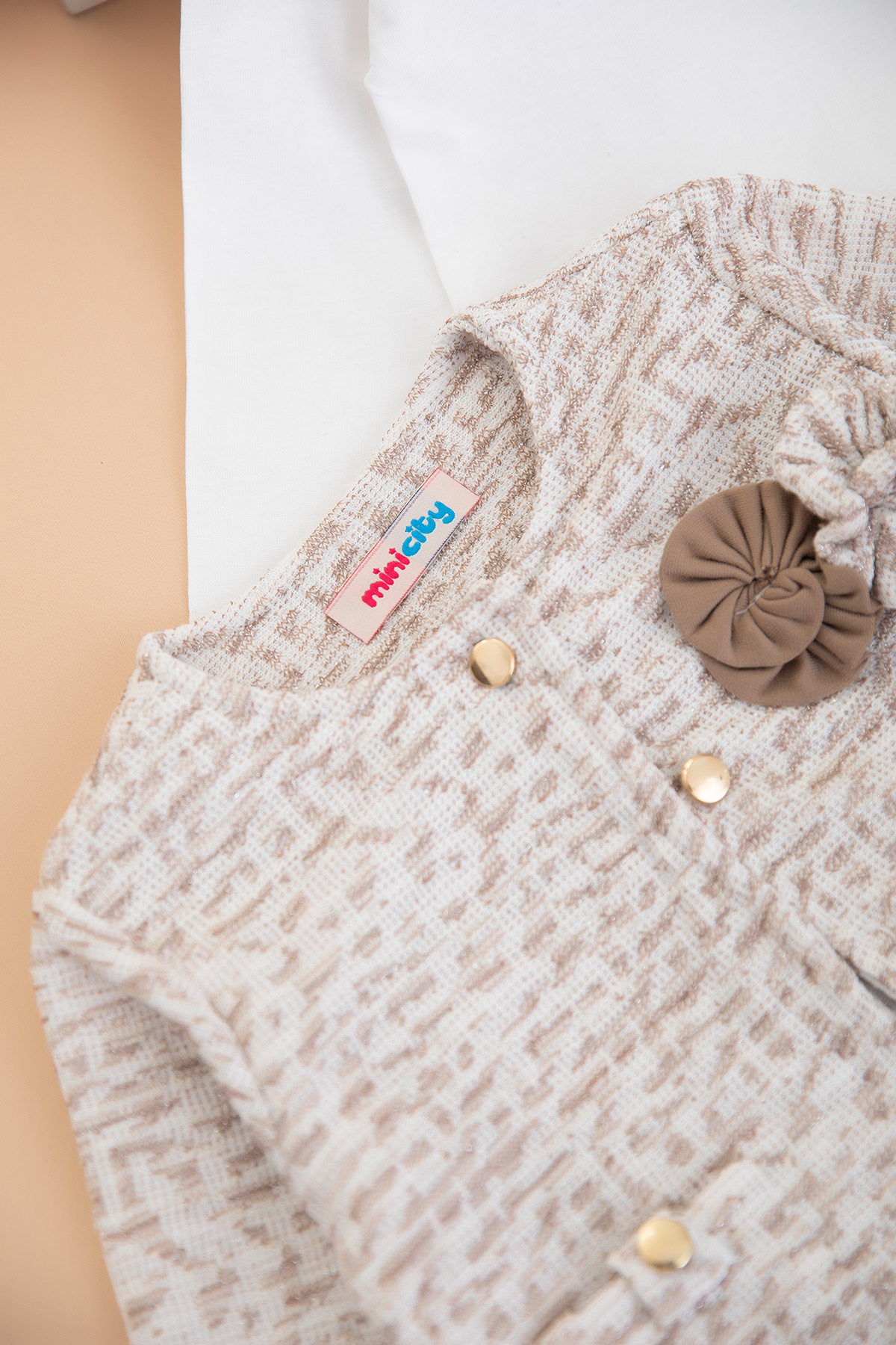 Kız Bebek Cepli Simli Hırkalı Üçlü Takım - 90010 (6-24 Ay)
