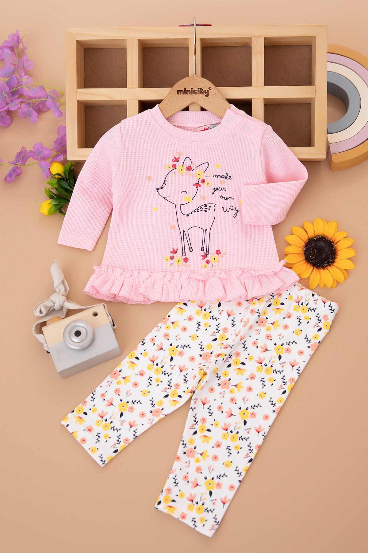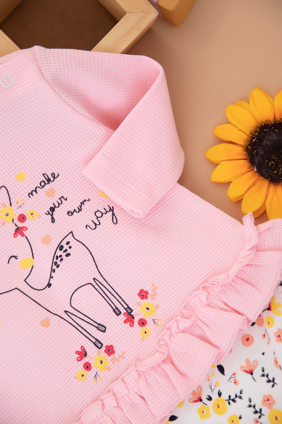 Kız Bebek Ceylan Baskılı Waffle Takım - 1994 (6-18 Ay)