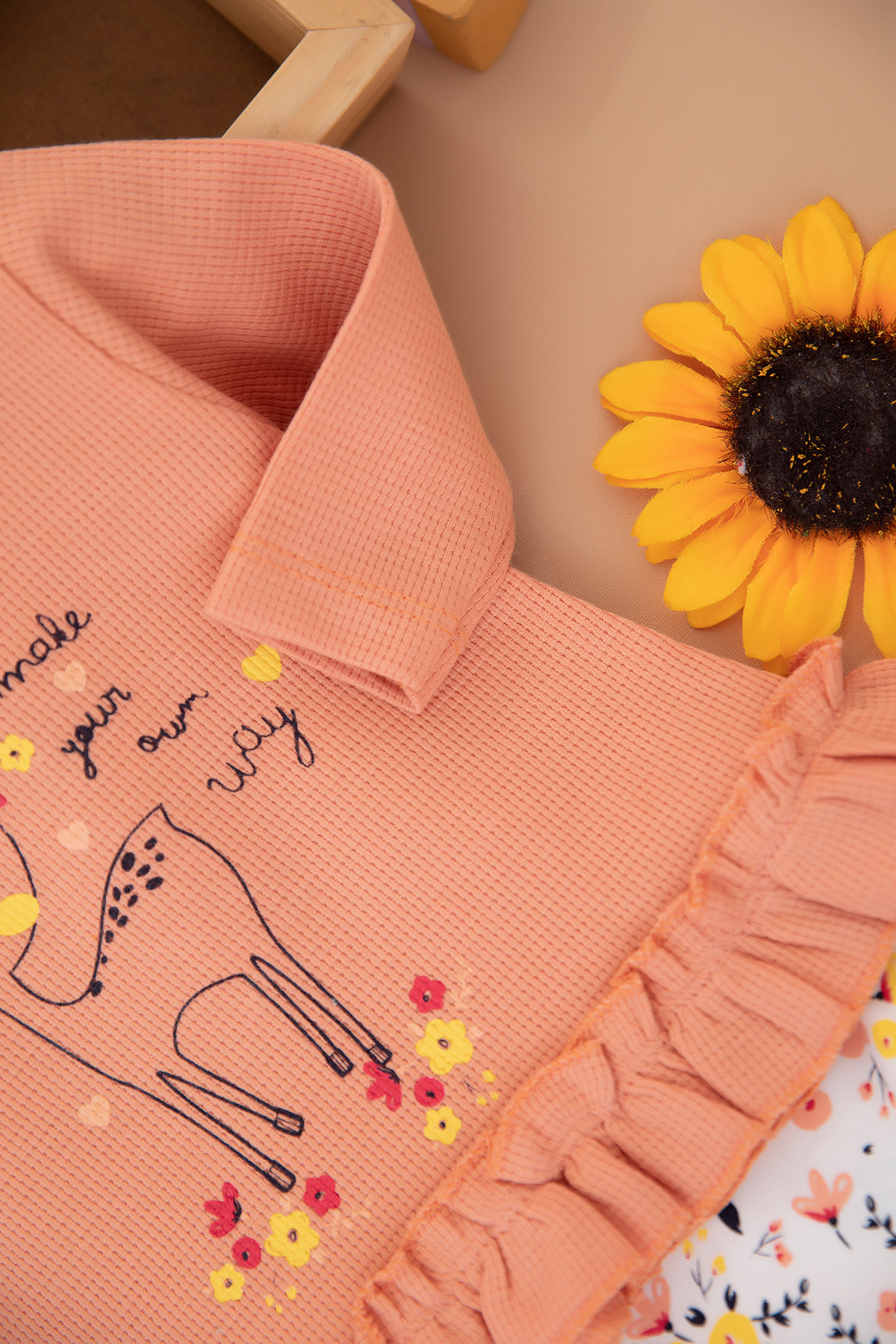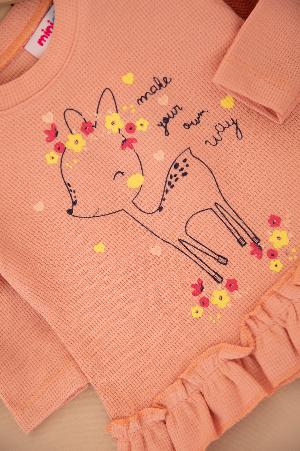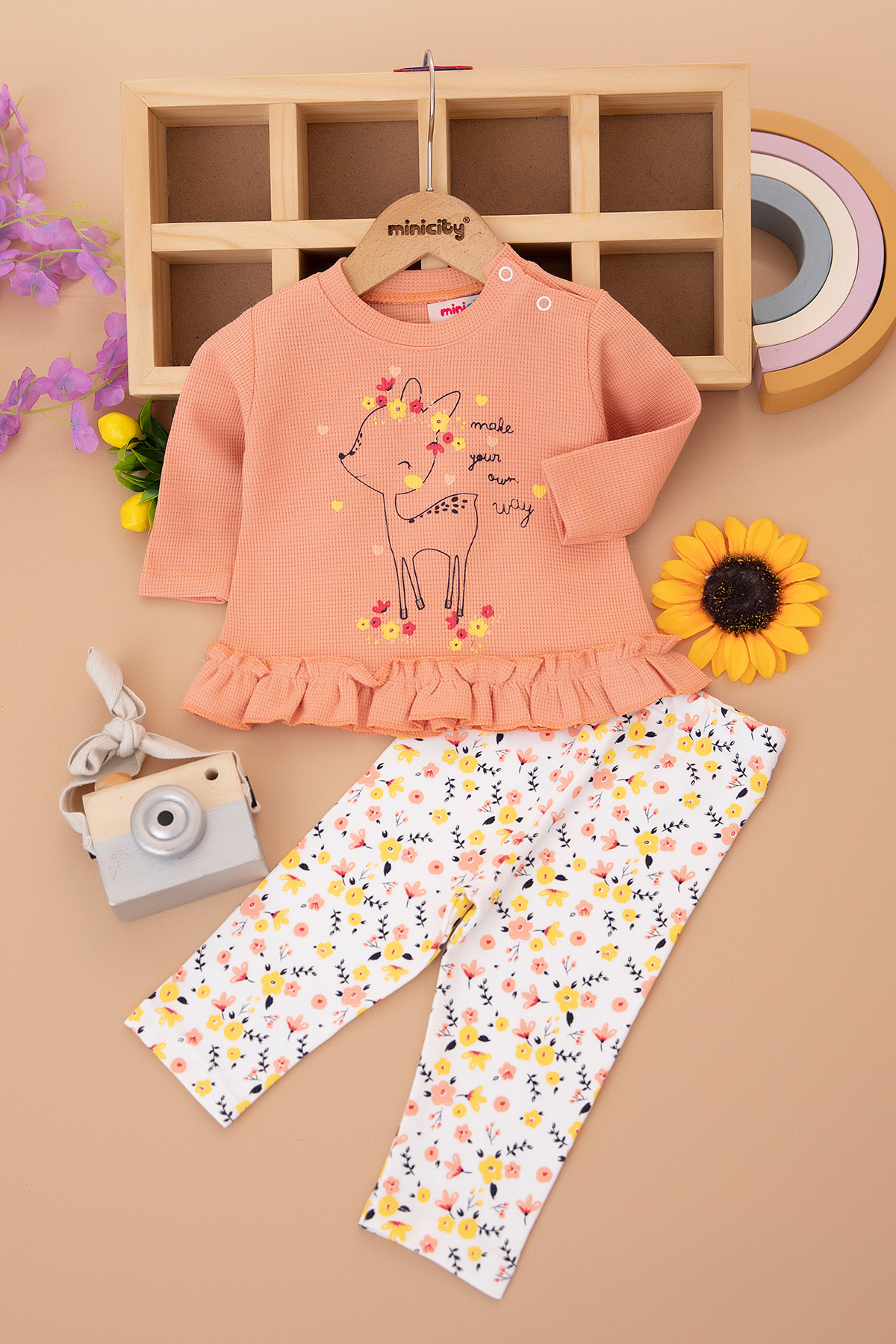 Kız Bebek Ceylan Baskılı Waffle Takım - 1994 (6-18 Ay)