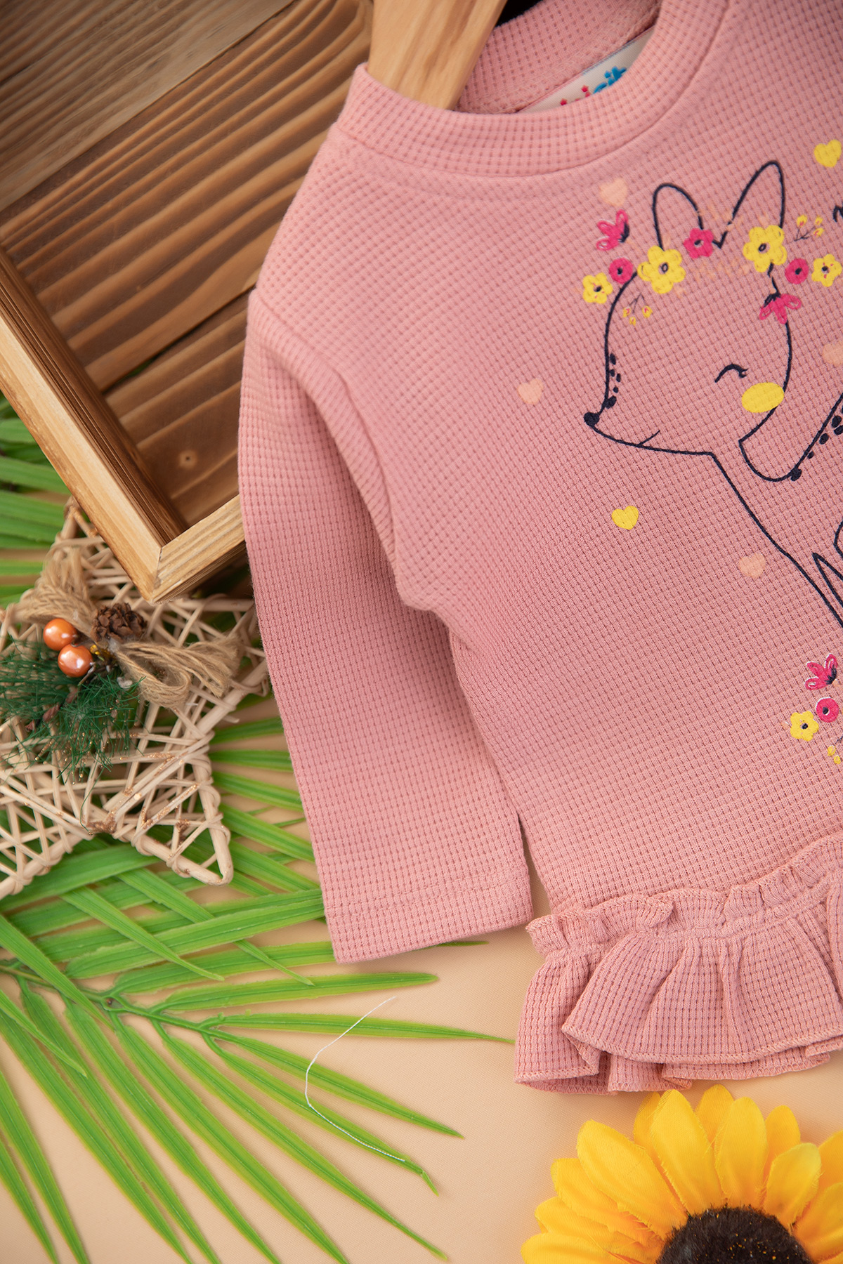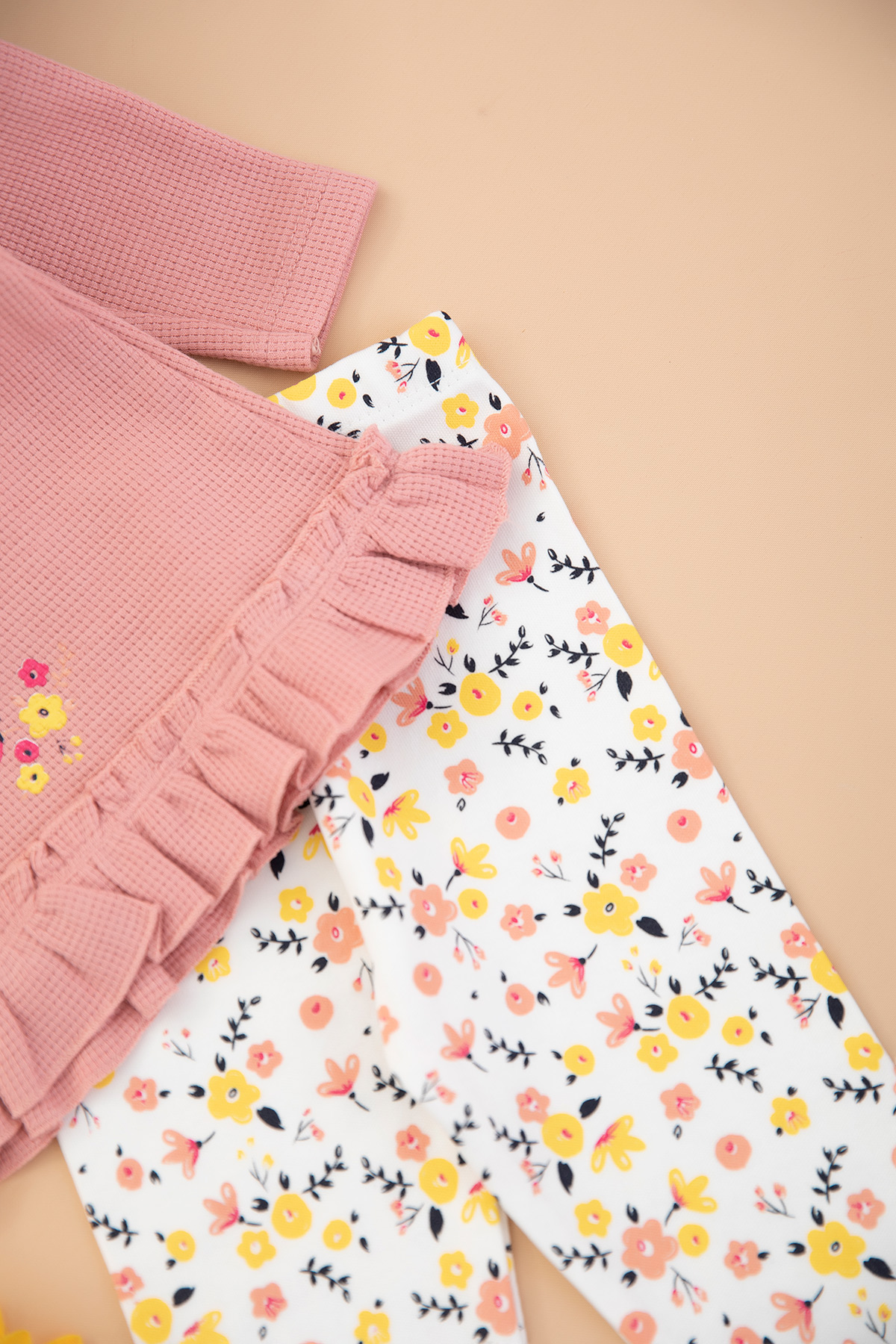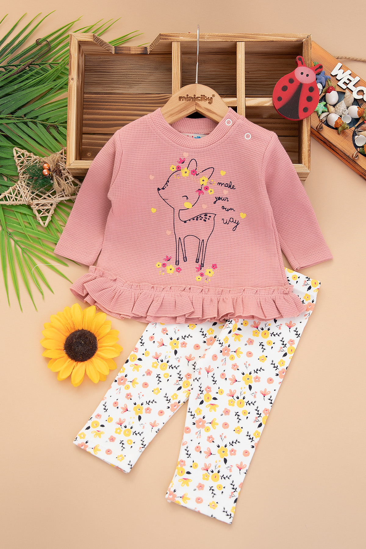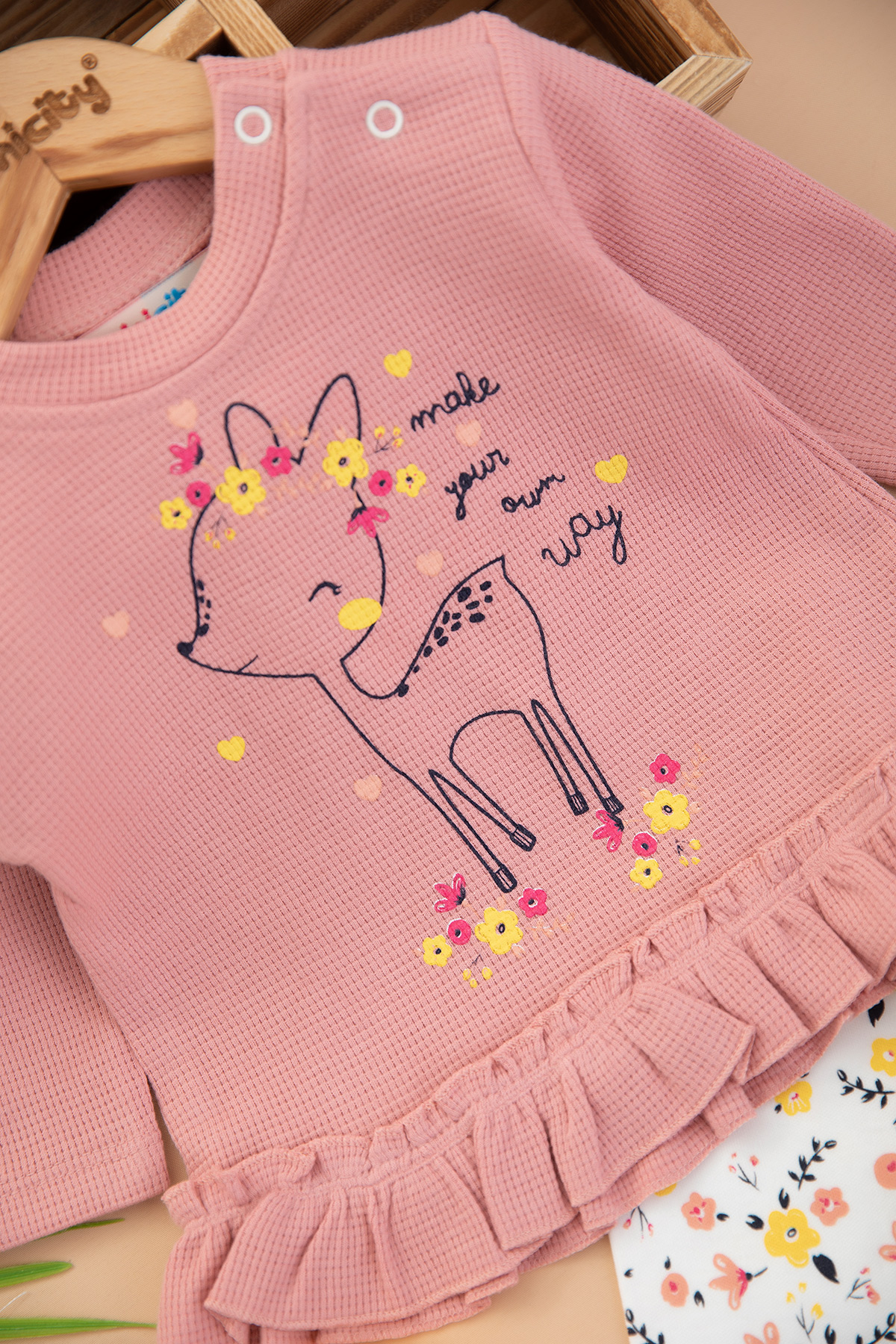 Kız Bebek Ceylan Baskılı Waffle Takım - 1994 (6-18 Ay)
