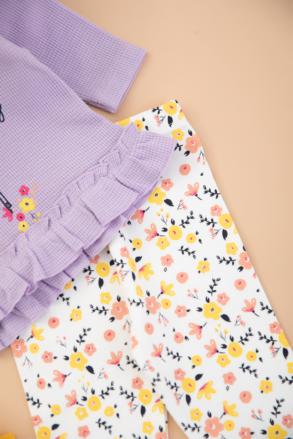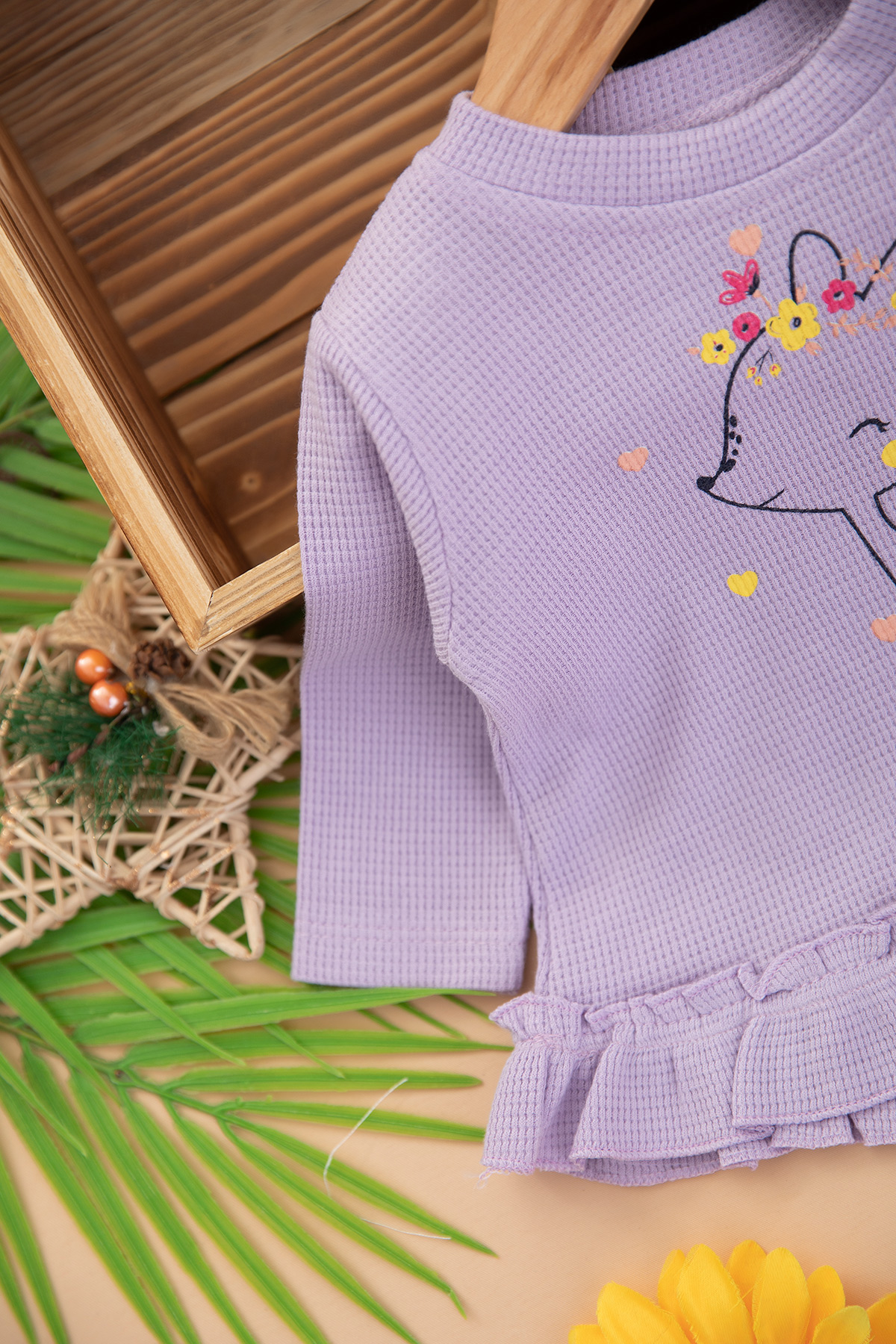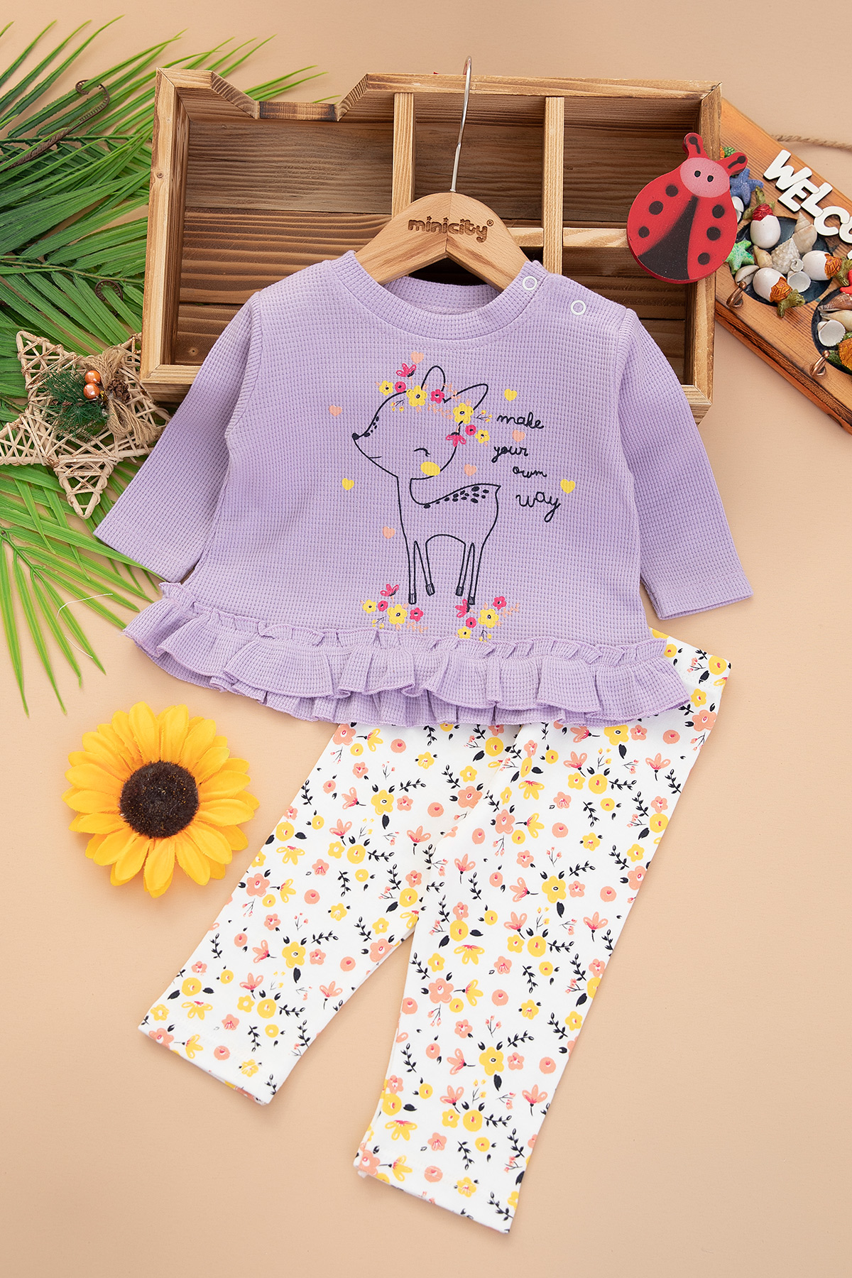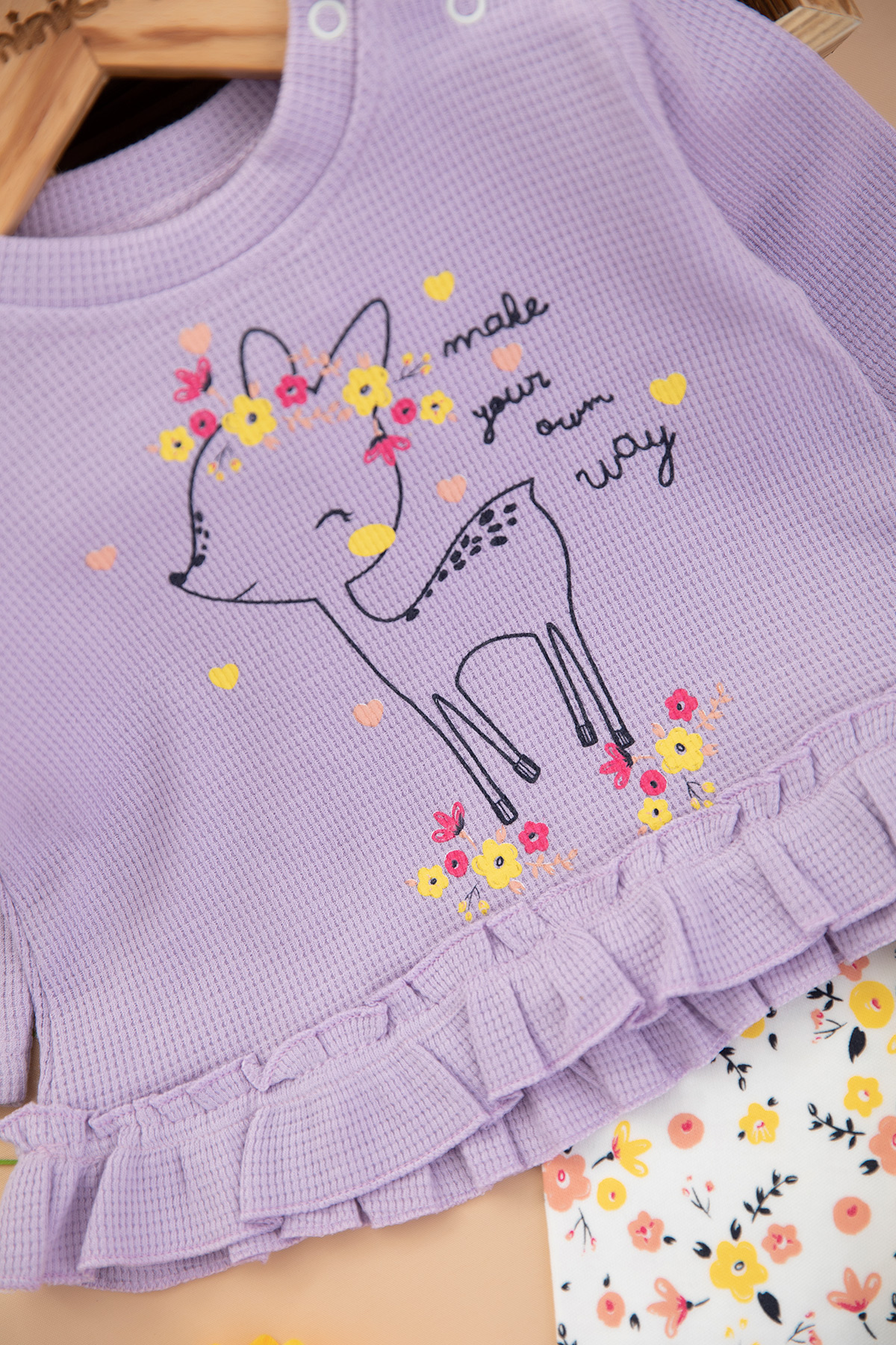 Kız Bebek Ceylan Baskılı Waffle Takım - 1994 (6-18 Ay)