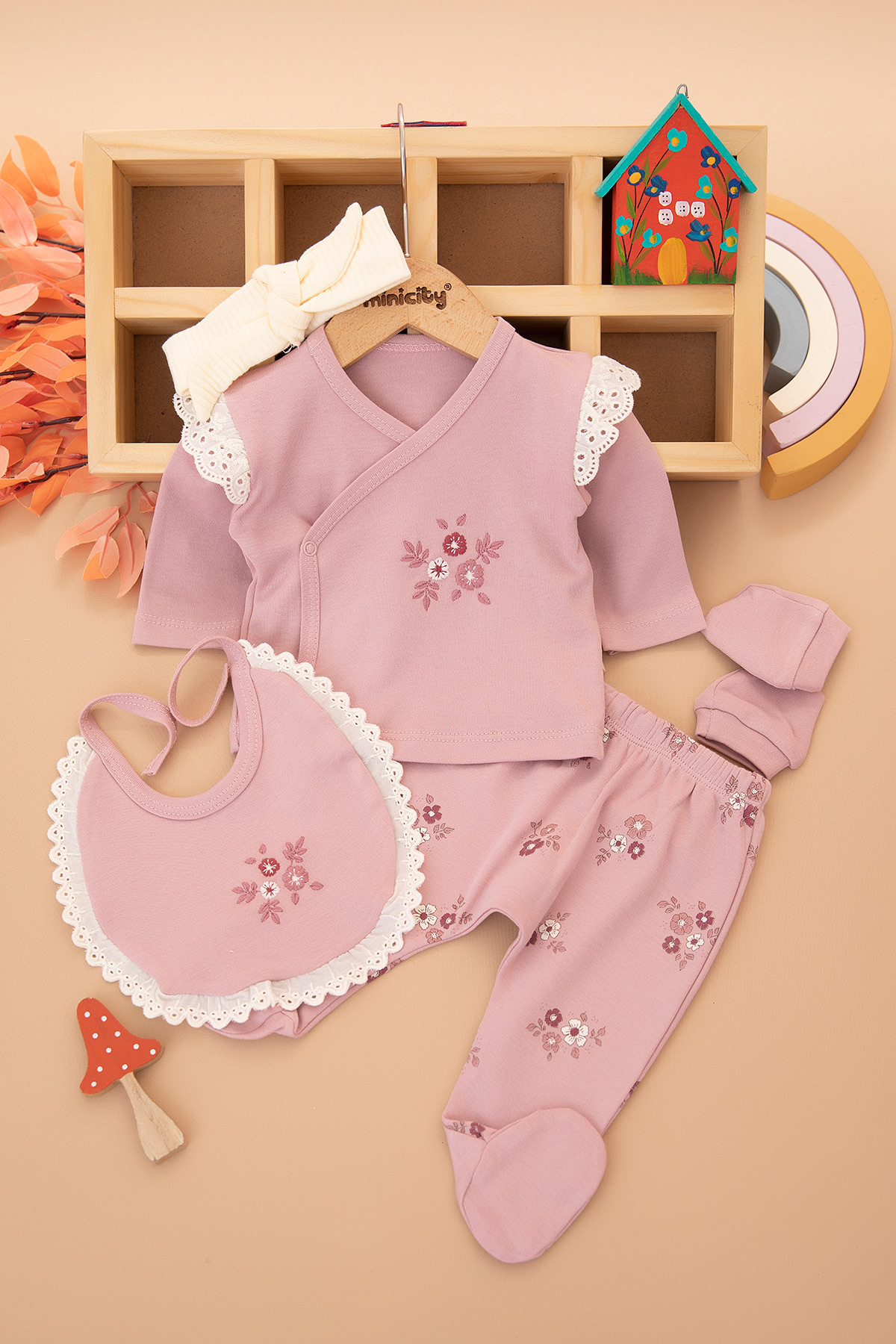 Kız Bebek Çiçek Baskılı 5`Li Zıbın Seti - 52863 (0-3 Ay)