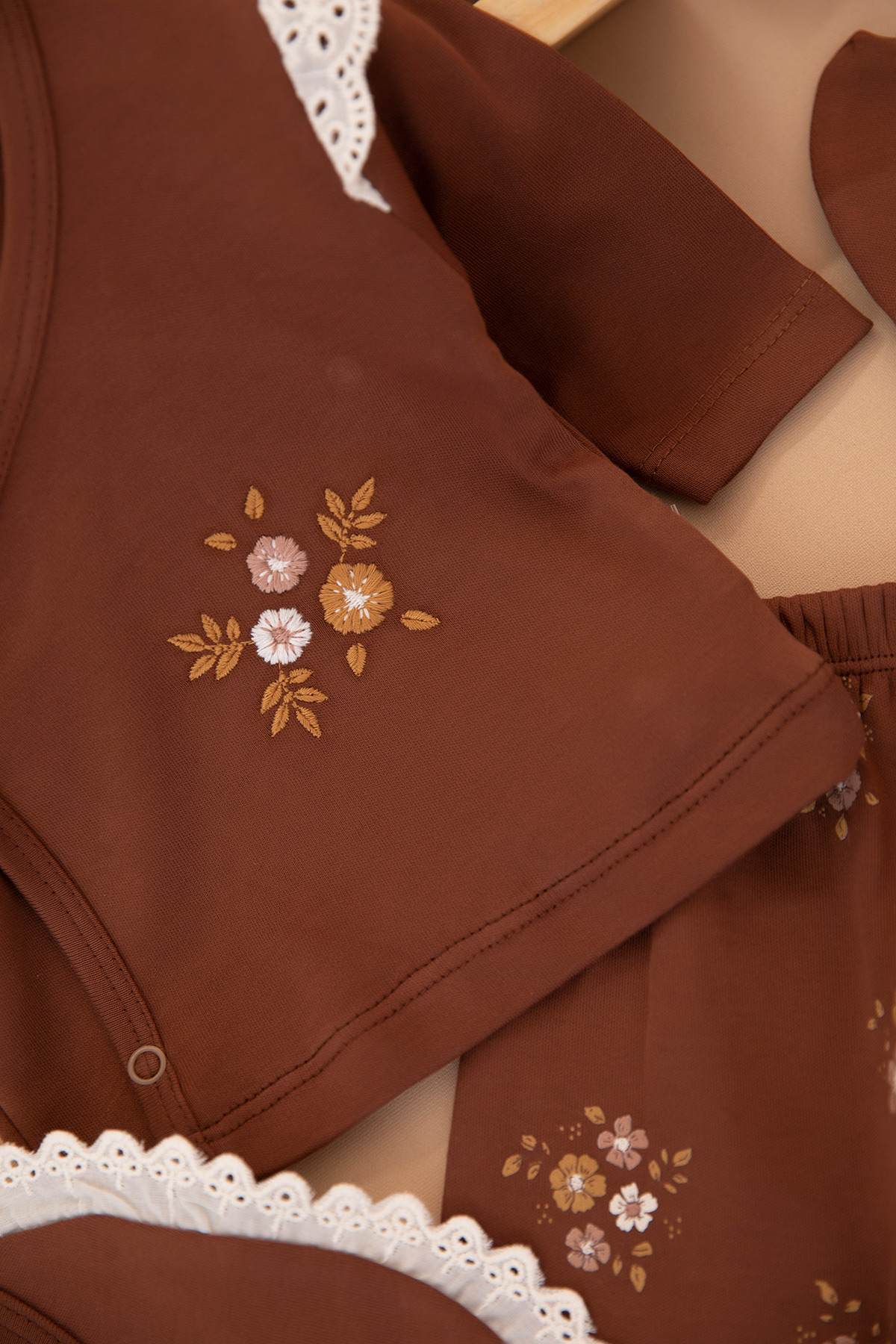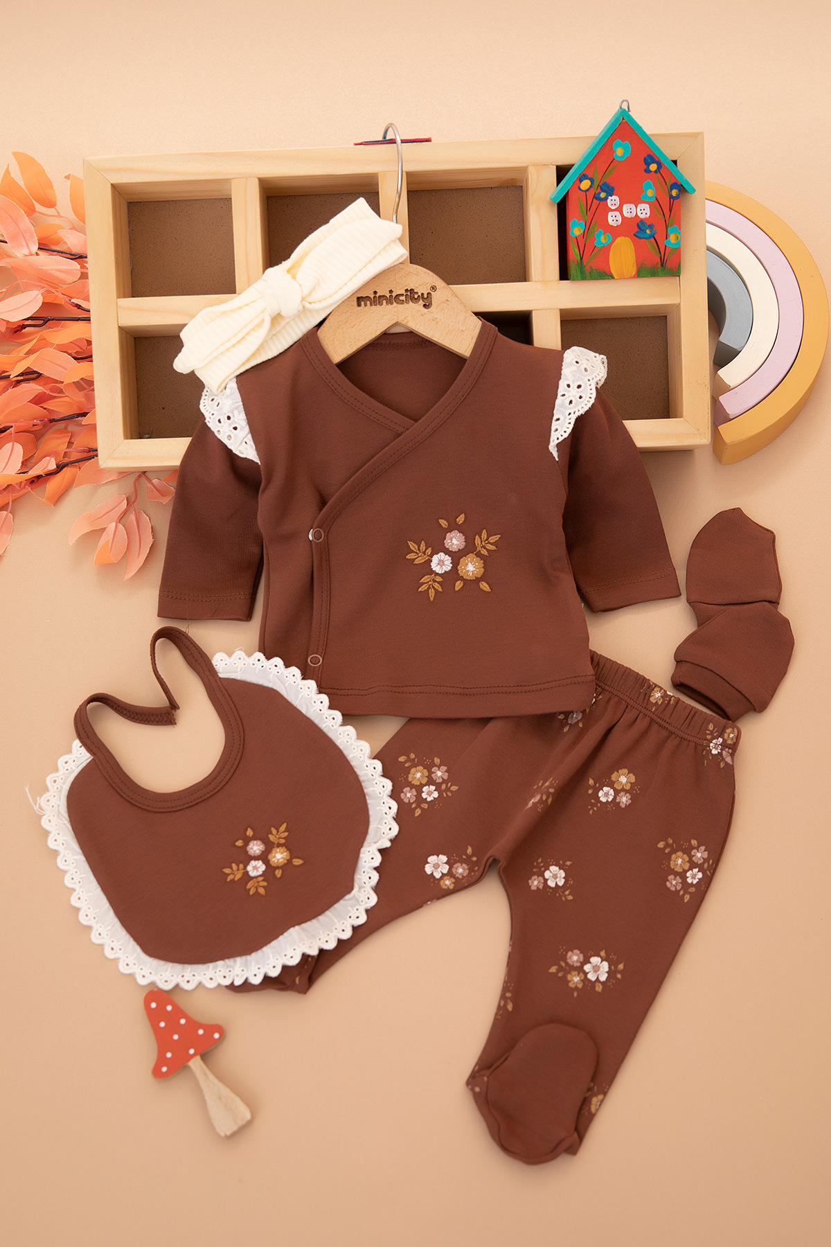 Kız Bebek Çiçek Baskılı 5`Li Zıbın Seti - 52863 (0-3 Ay)