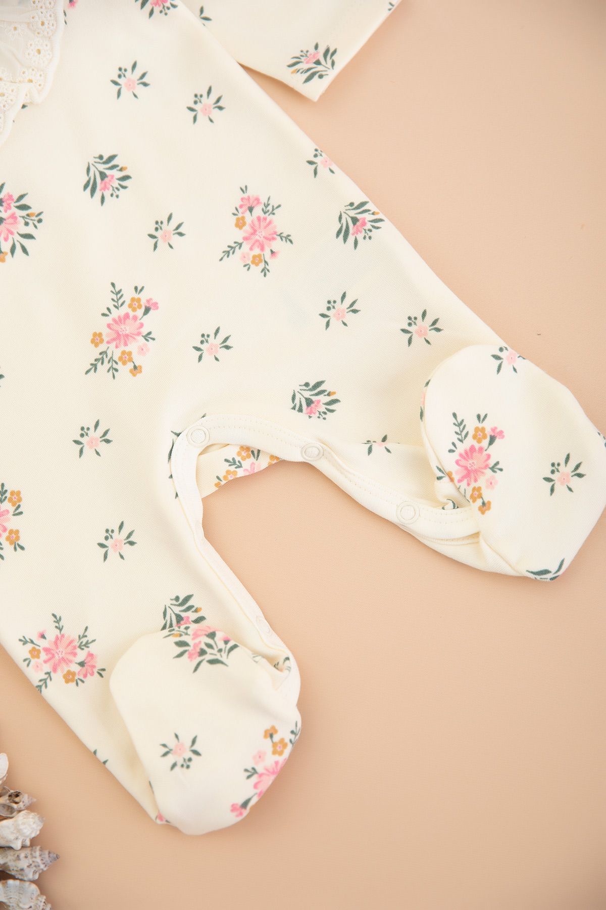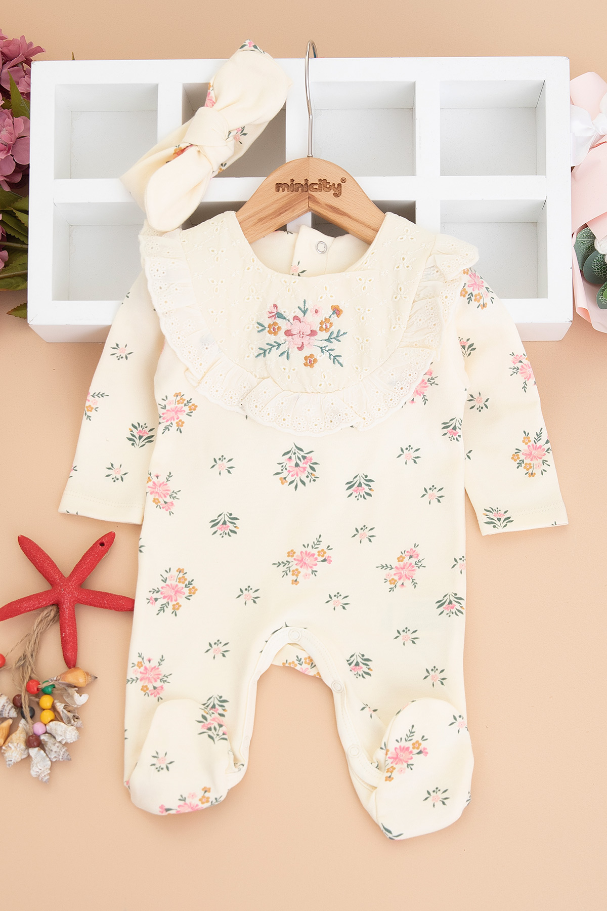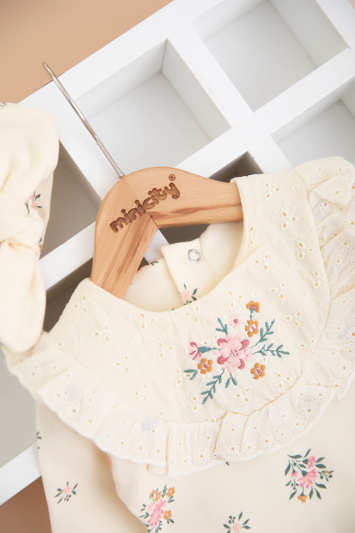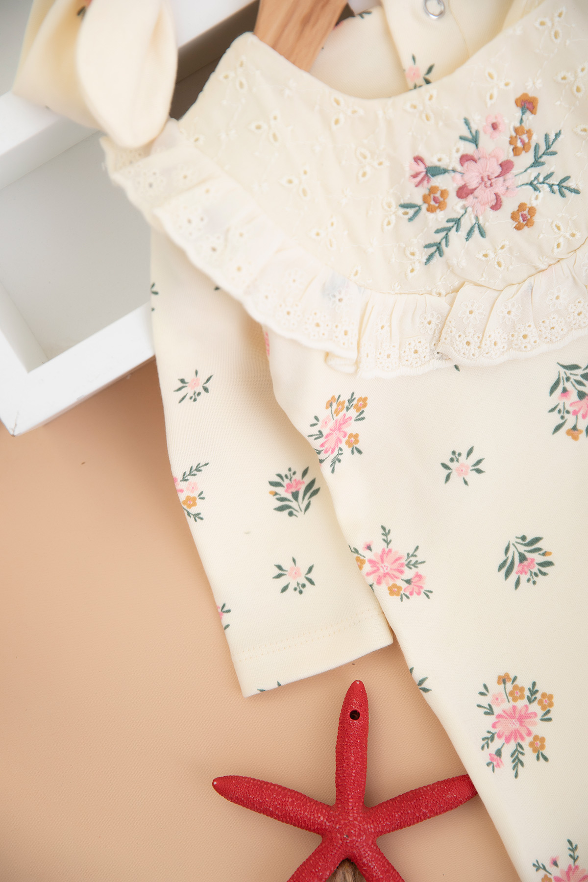 Kız Bebek Çiçek Baskılı Brodeli Tulum - 3001 (3-9 Ay)