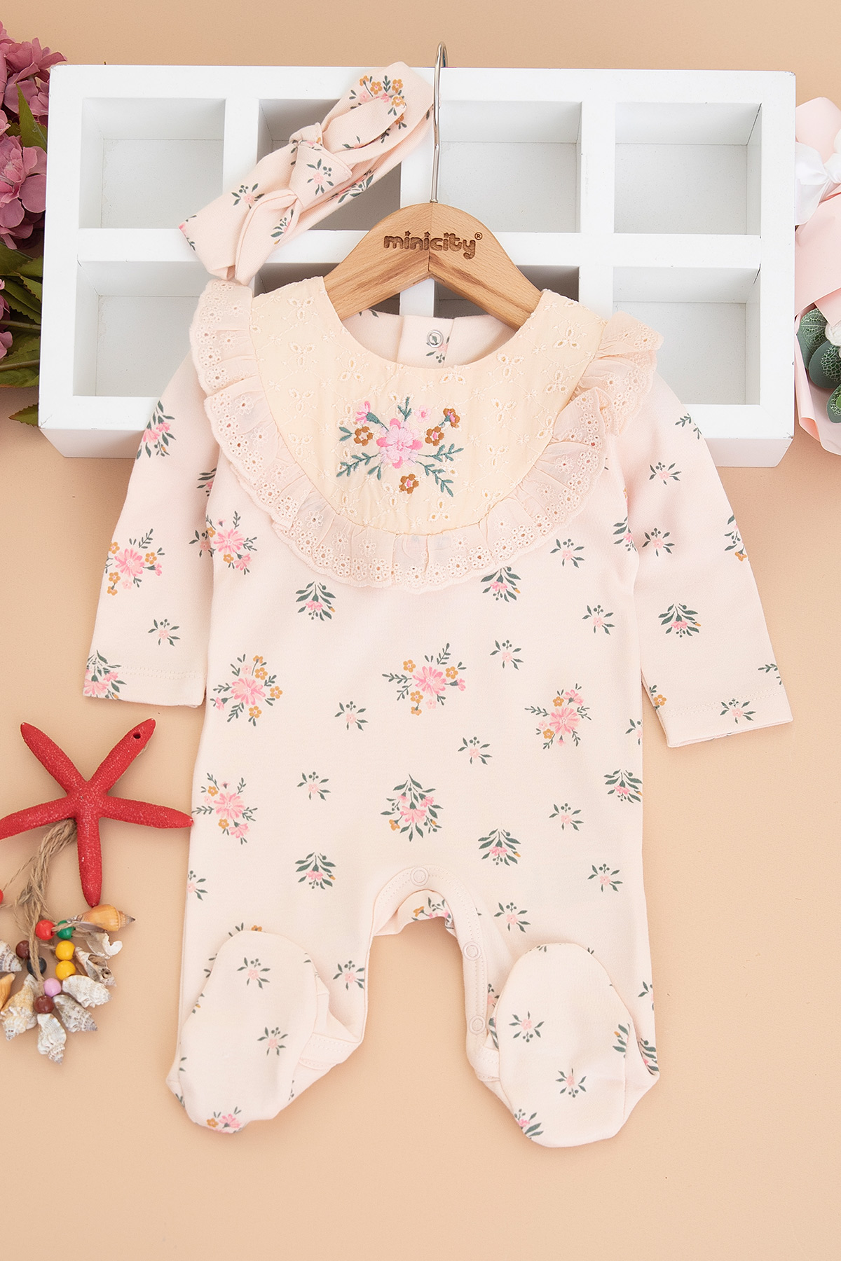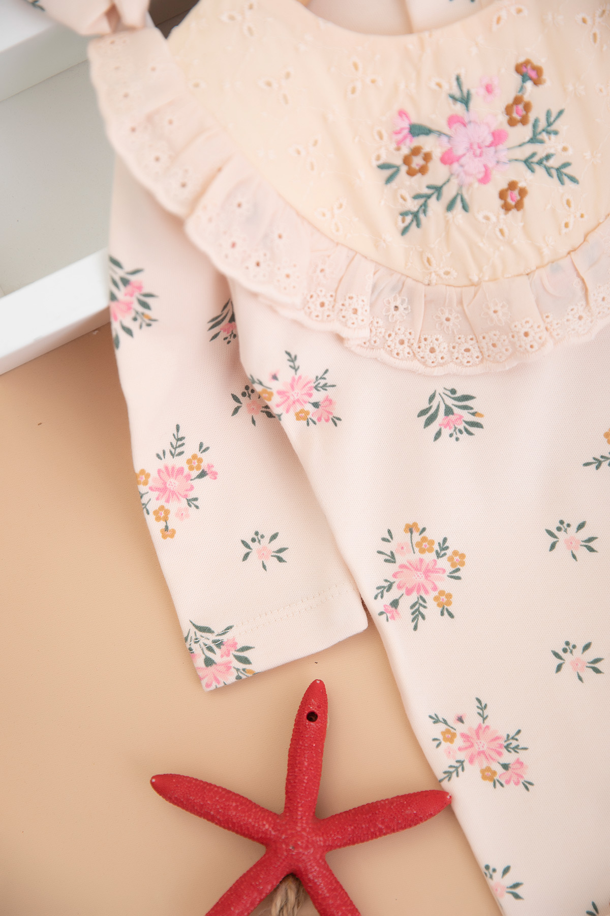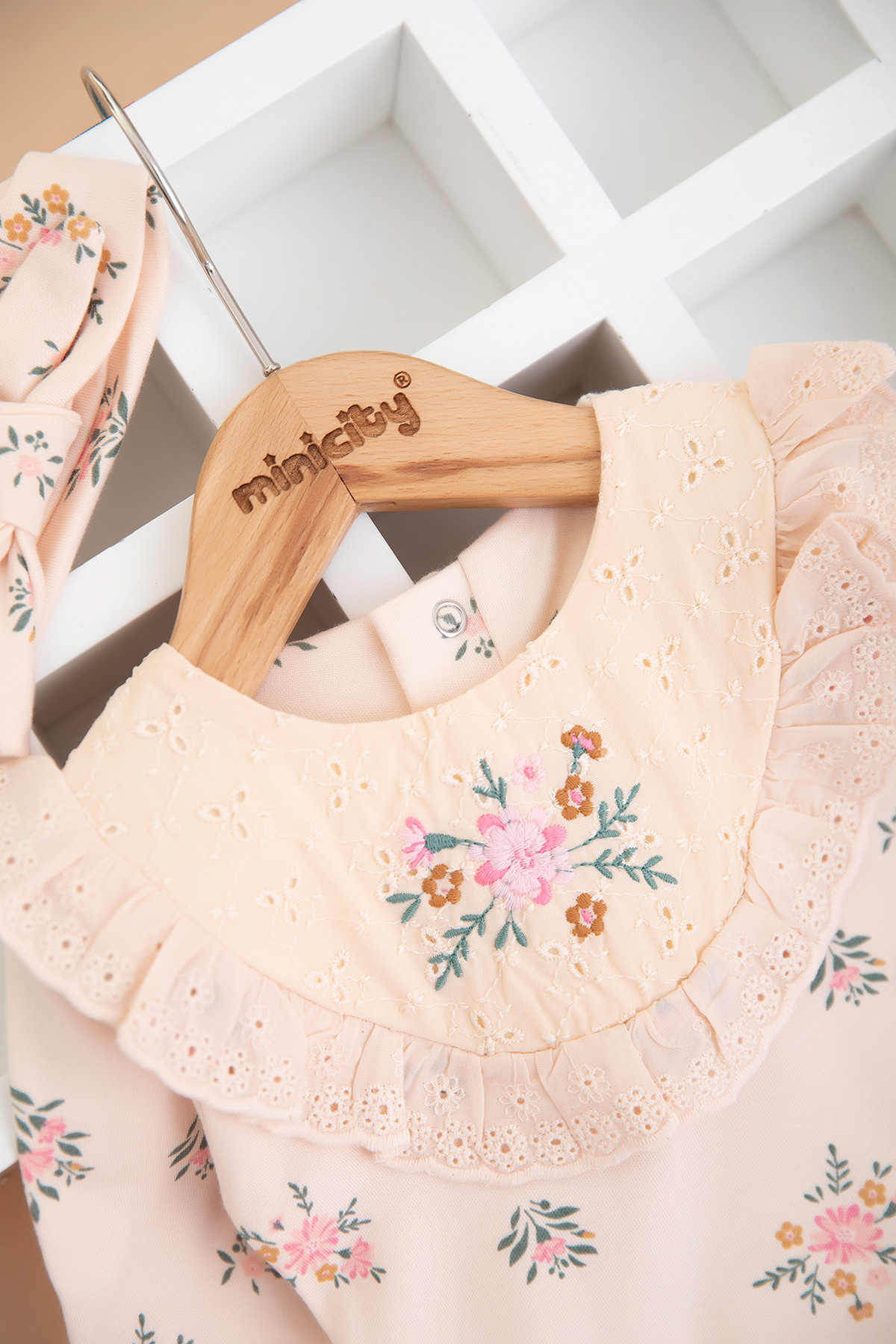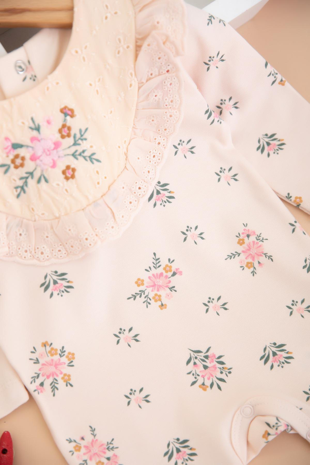 Kız Bebek Çiçek Baskılı Brodeli Tulum - 3001 (3-9 Ay)