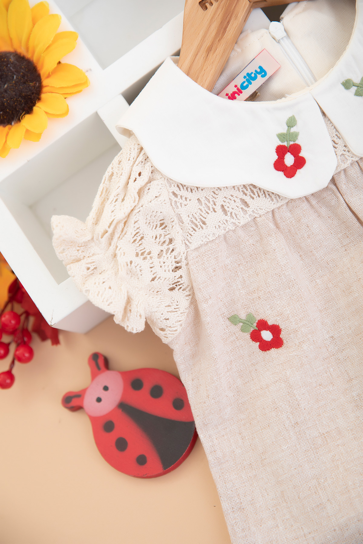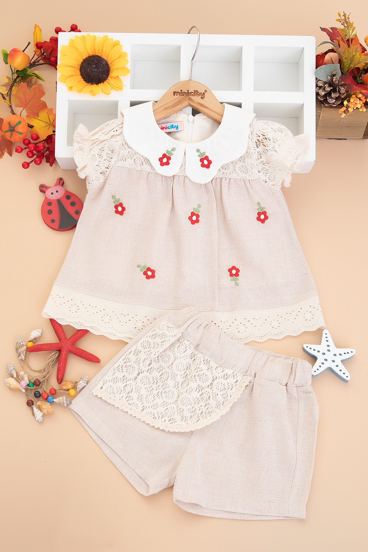 Kız Bebek Çiçek Baskılı Dantelli Takım - 2273 (6-24 Ay)