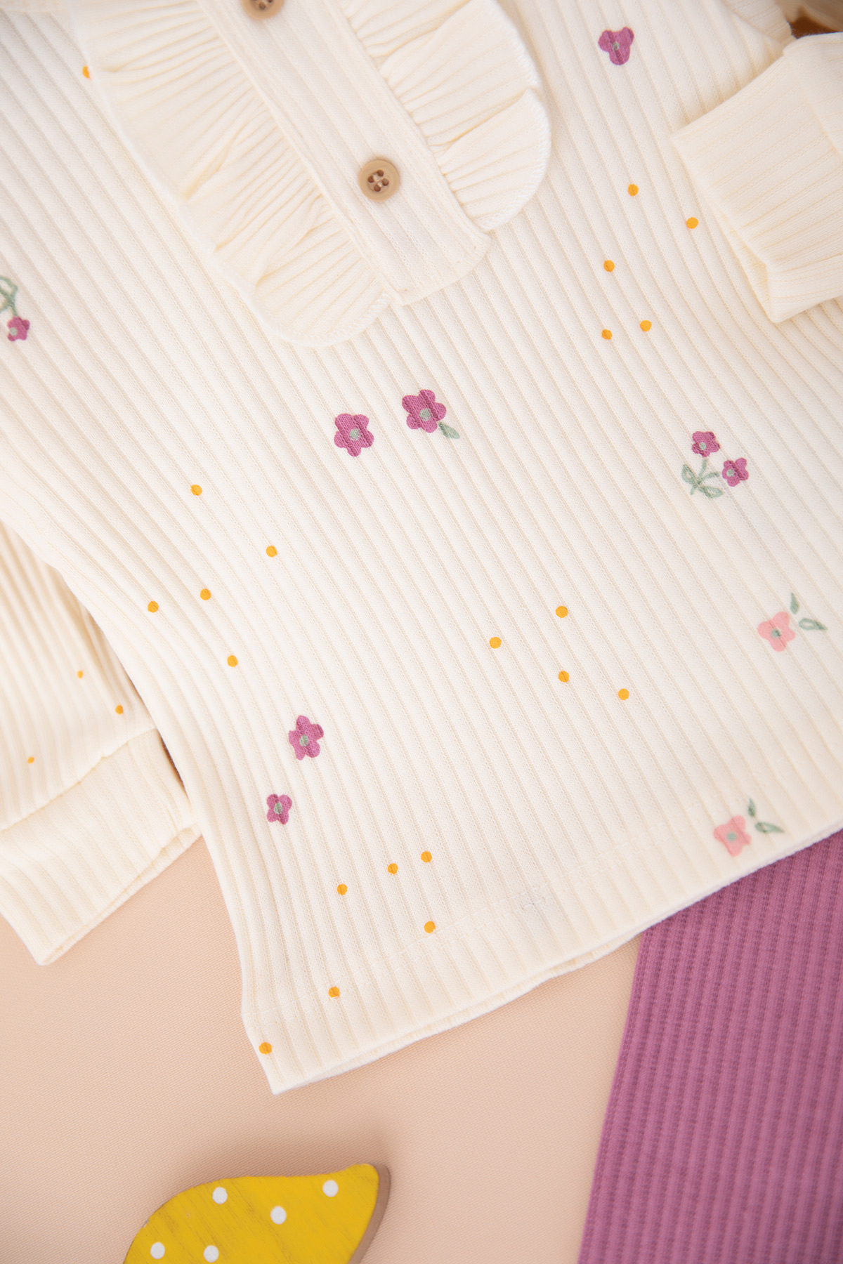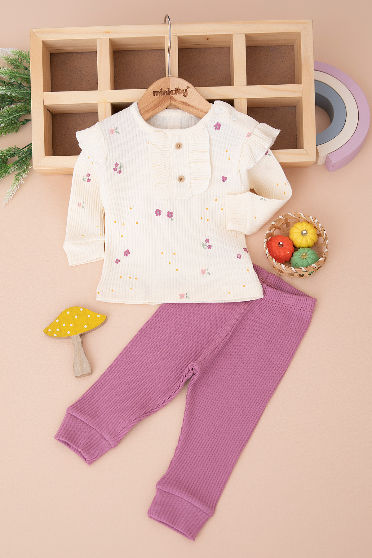 Kız Bebek Çiçek Baskılı Fırfırlı Takım - 1186 (3-12 Ay)