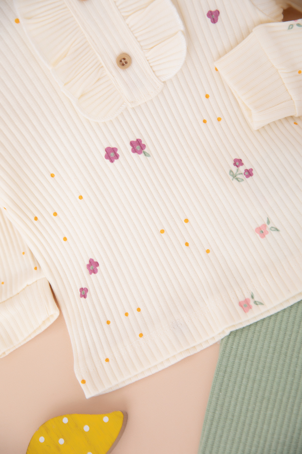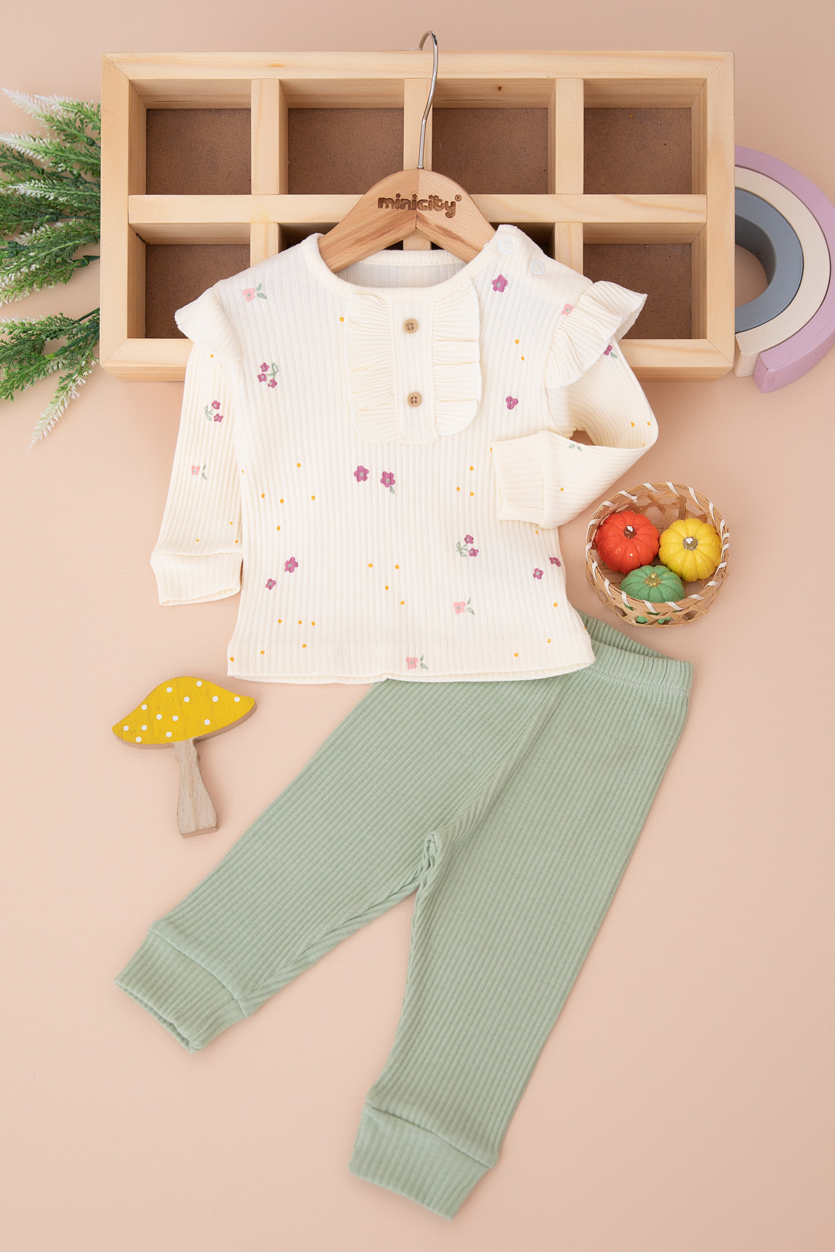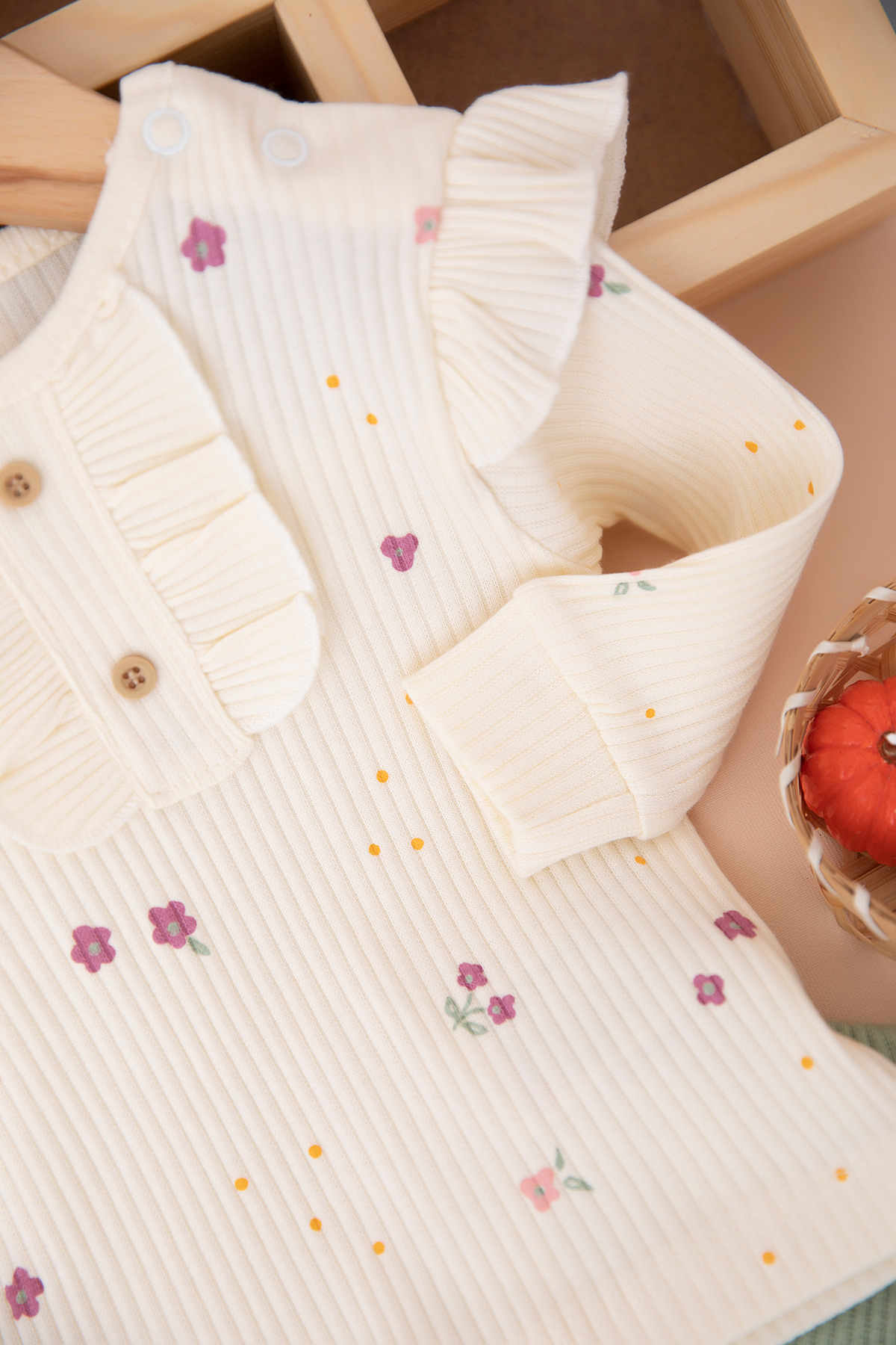 Kız Bebek Çiçek Baskılı Fırfırlı Takım - 1186 (3-12 Ay)