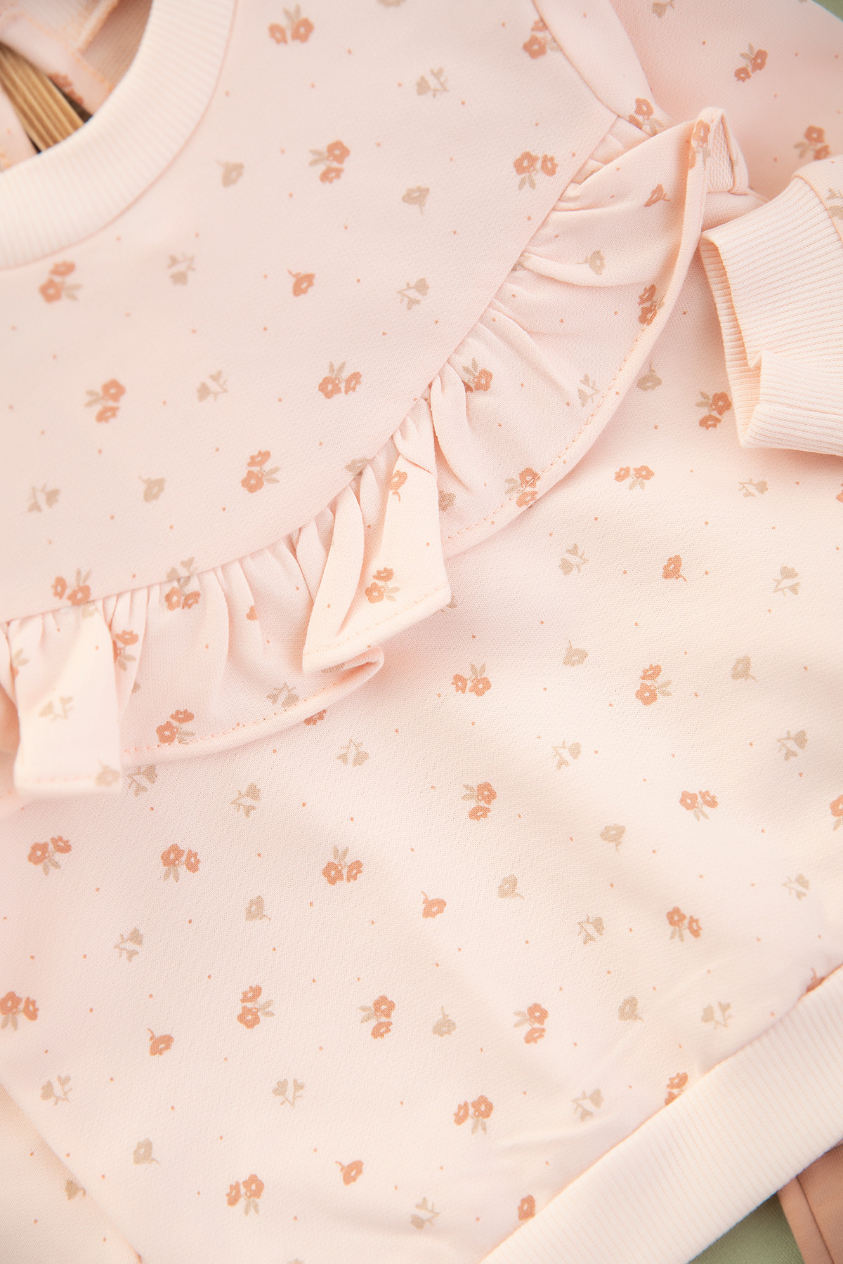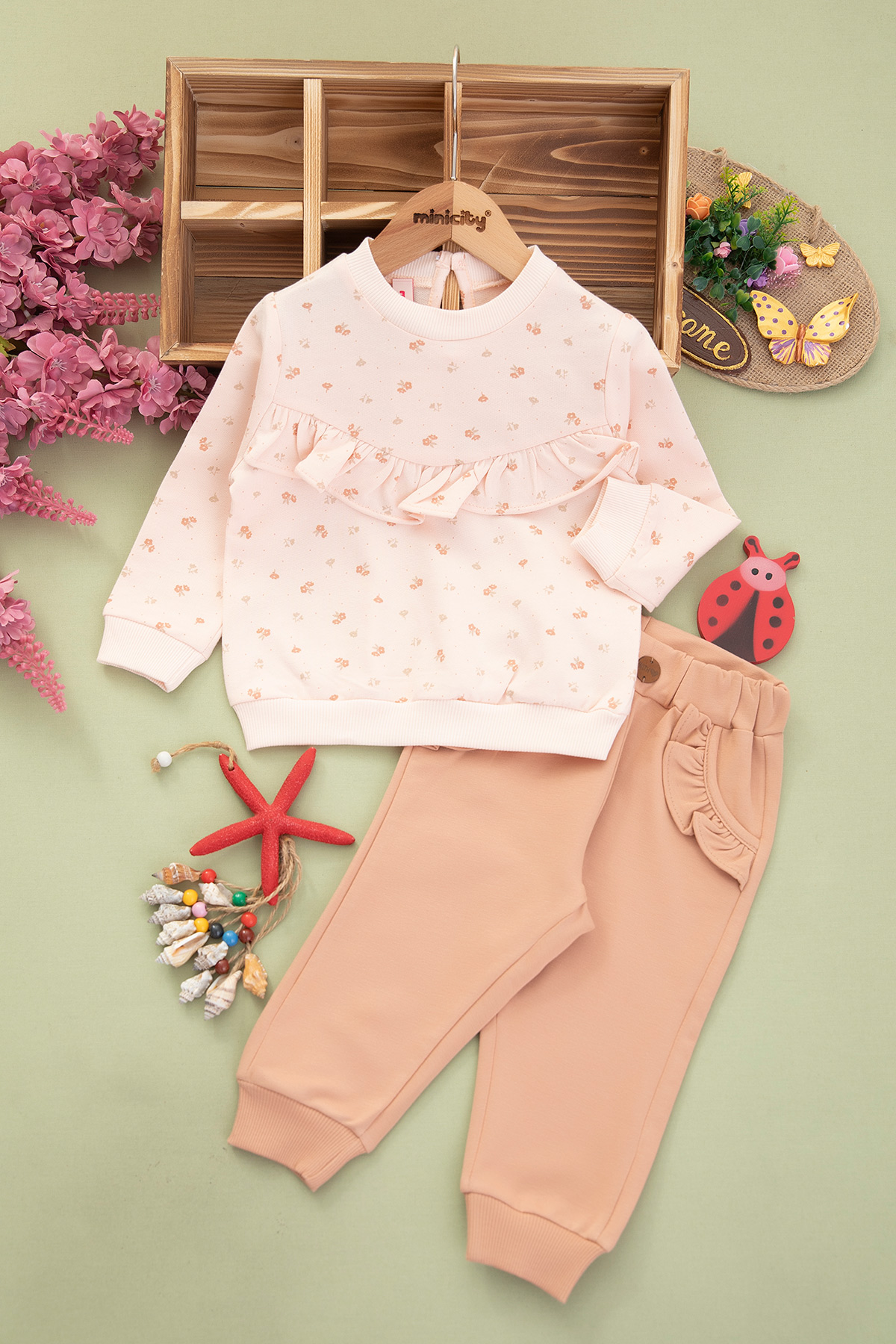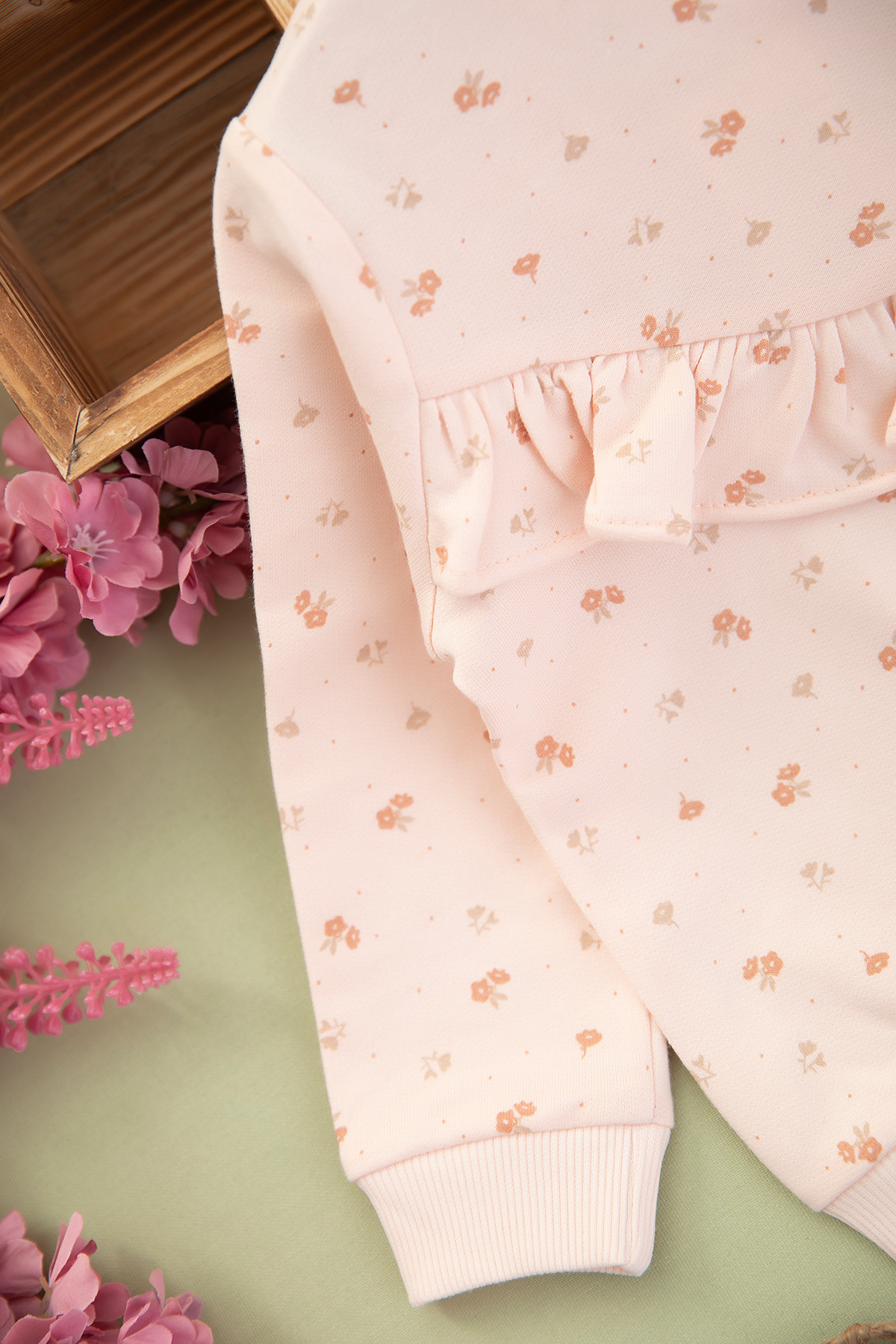 Kız Bebek Çiçek Baskılı Fırfırlı Takım - 9083 (9-24 Ay)
