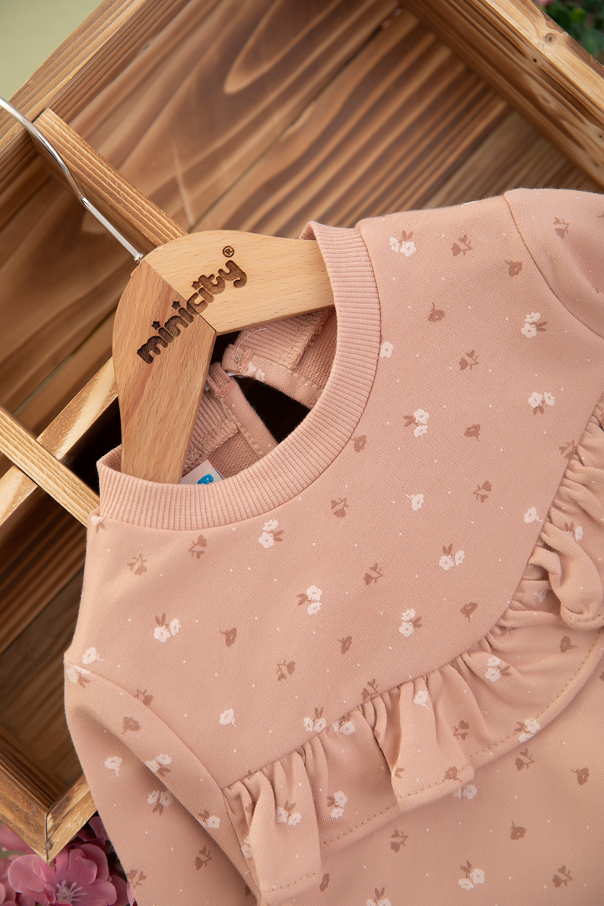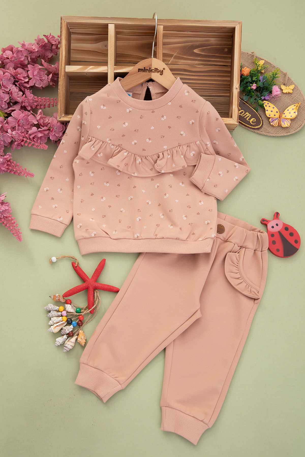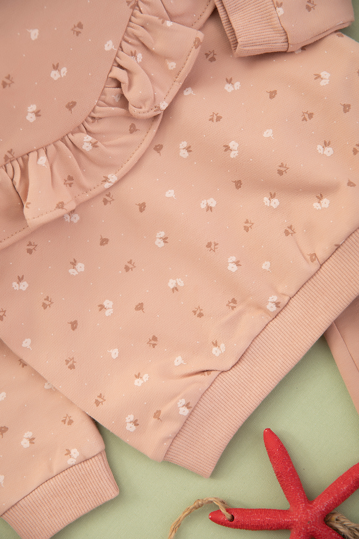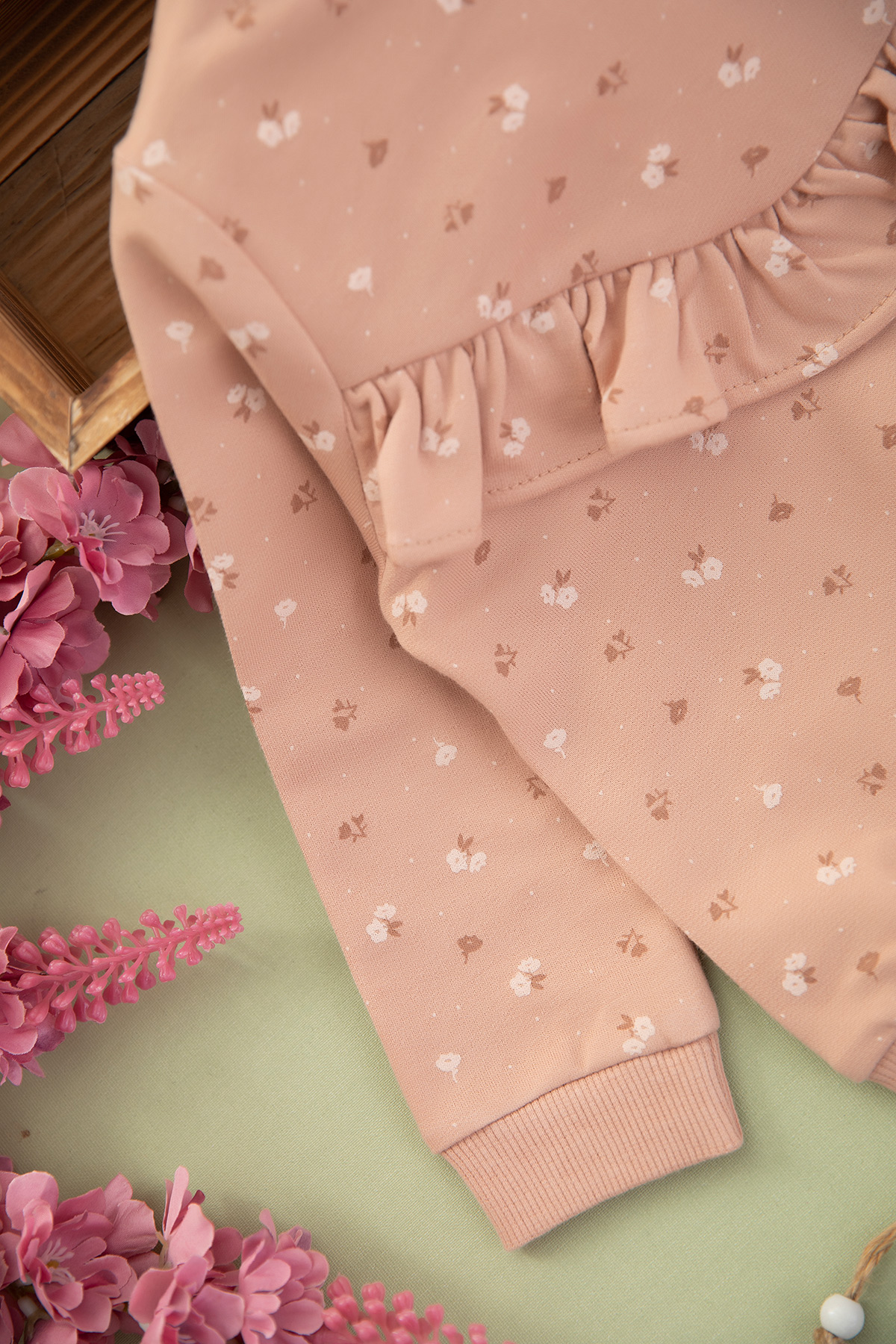 Kız Bebek Çiçek Baskılı Fırfırlı Takım - 9083 (9-24 Ay)