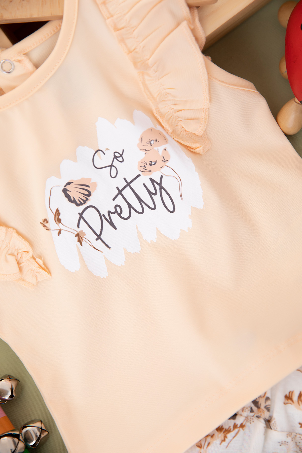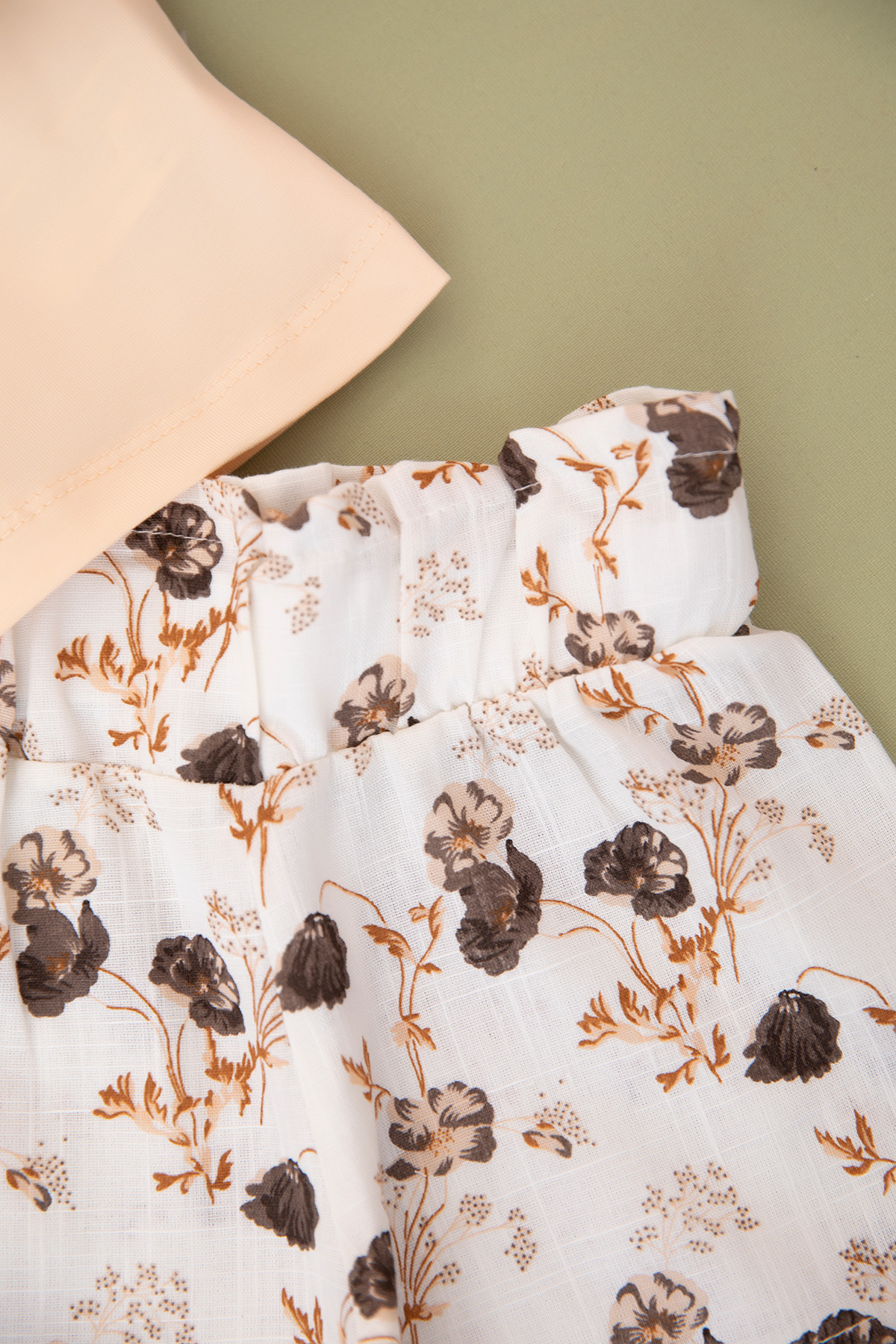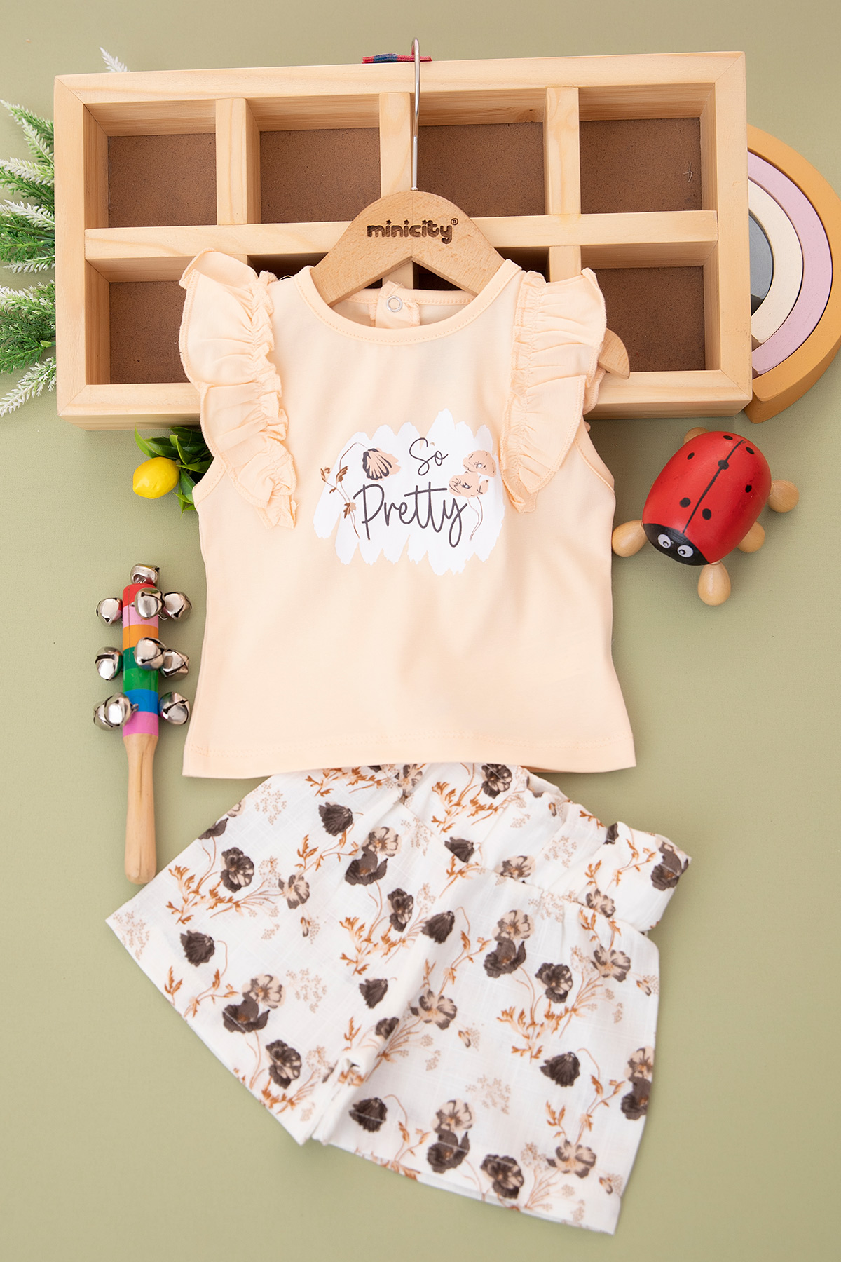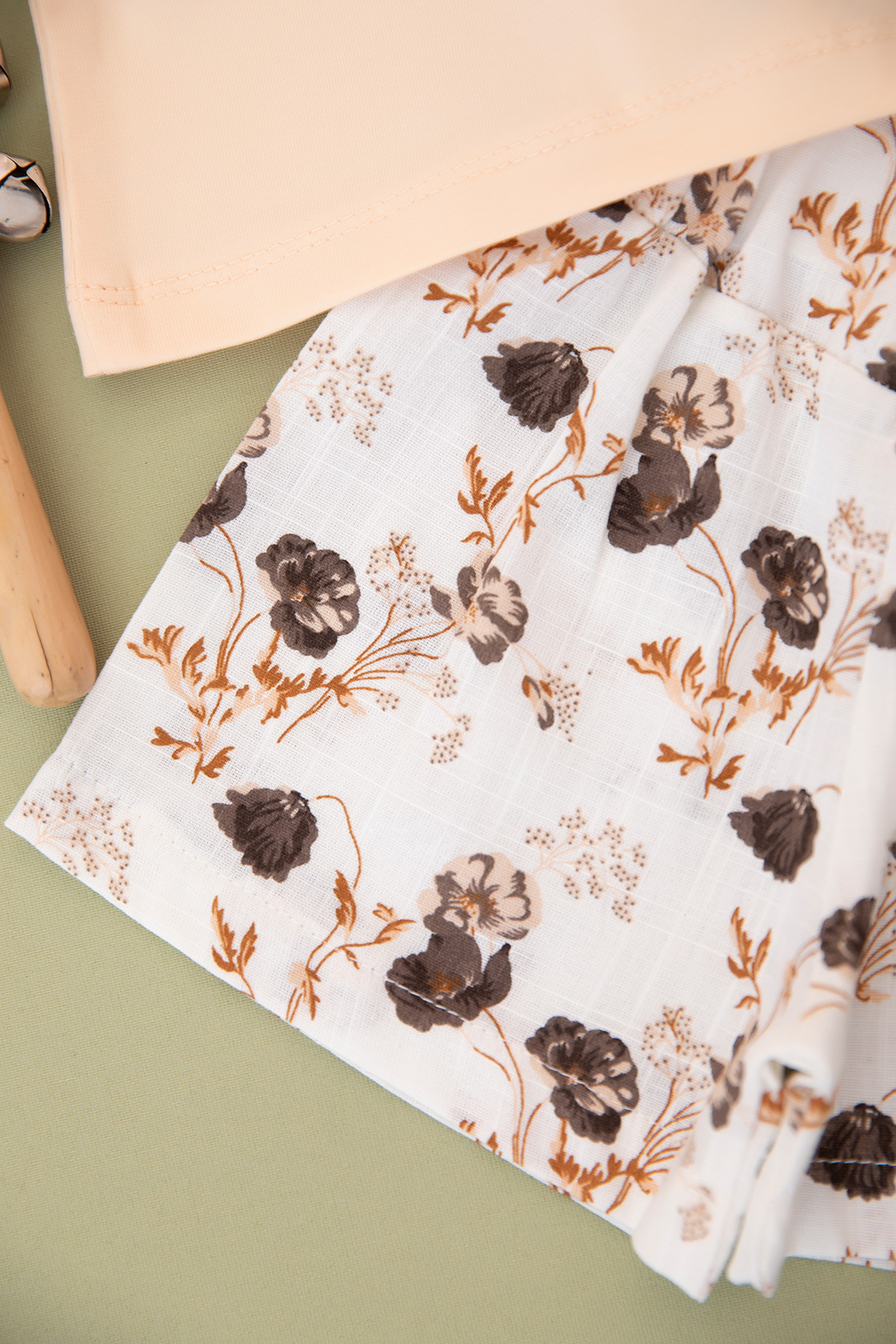 Kız Bebek Çiçek Baskılı Keten Şortlu Takım - 24275 (9-24 Ay)