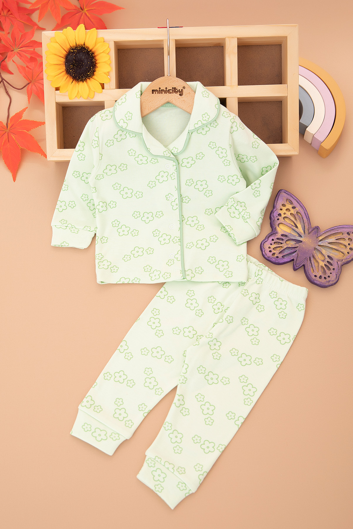 Kız Bebek Çiçek Baskılı Pijama Takımı - 2412 (3-12 Ay)