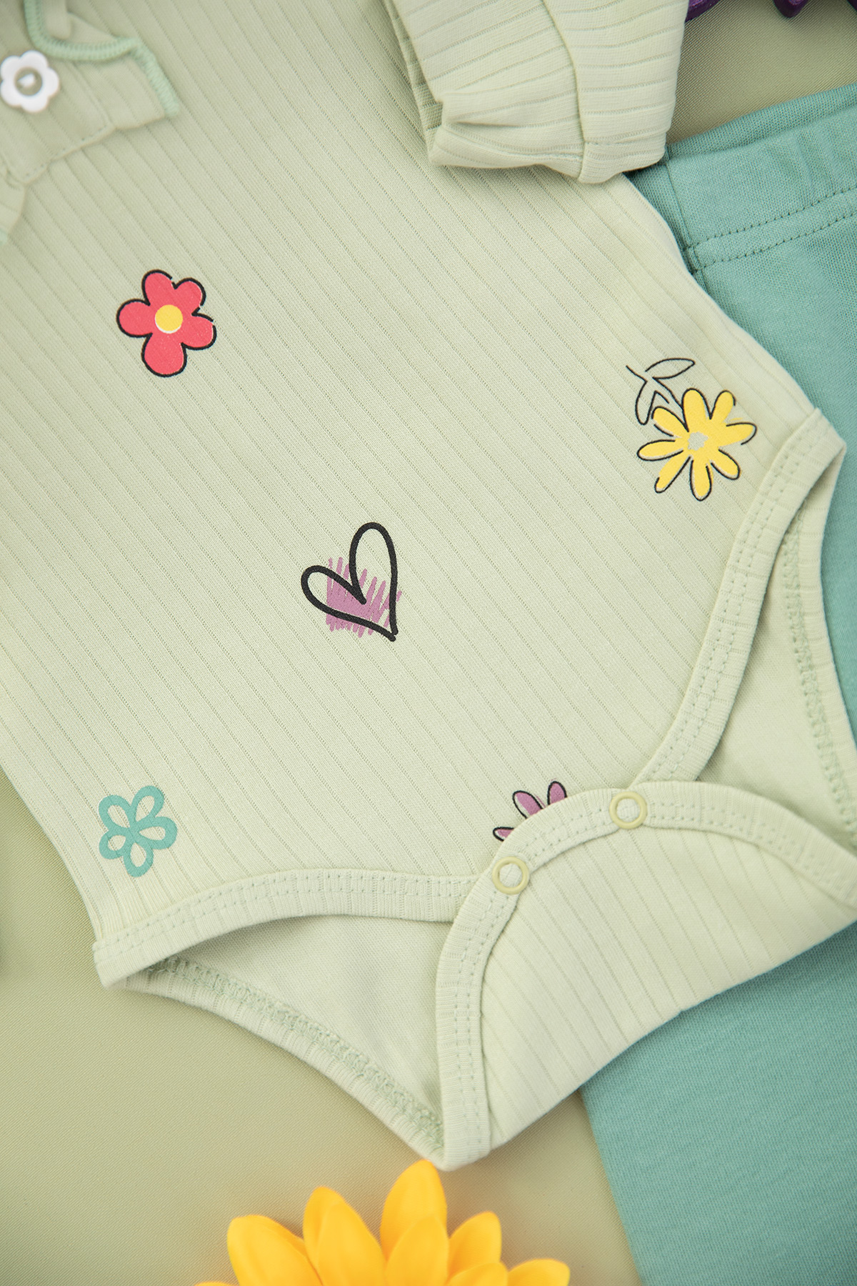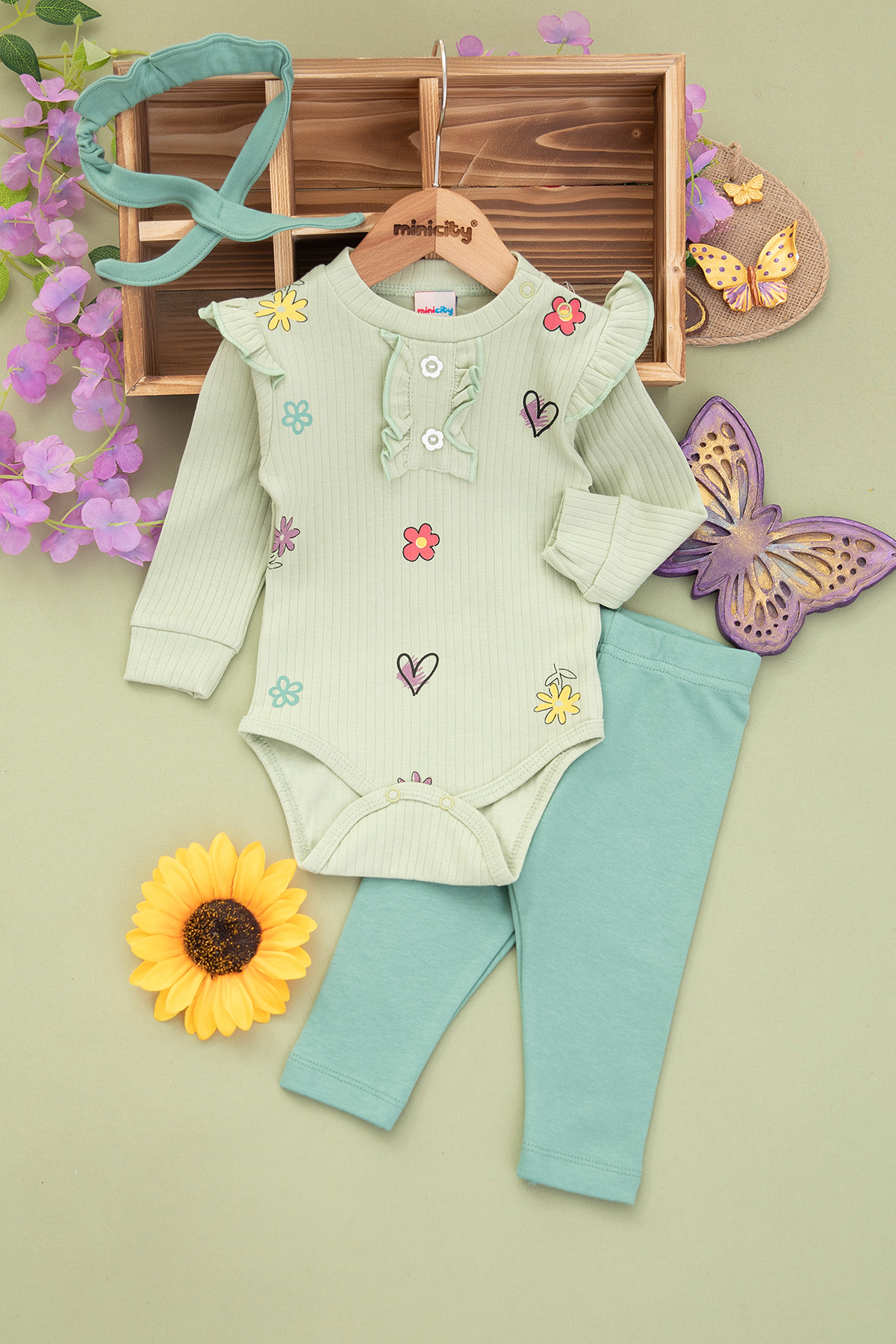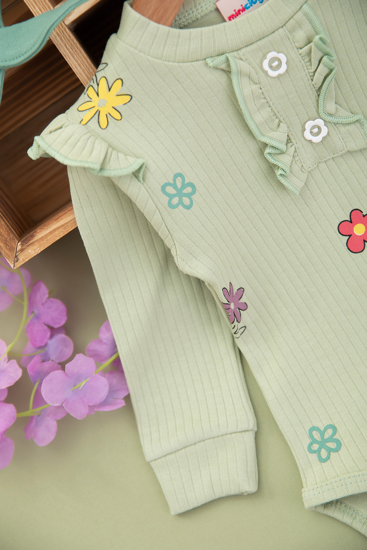 Kız Bebek Çiçek Baskılı Raporlu Badili Takım - 24546 (6-18 Ay)