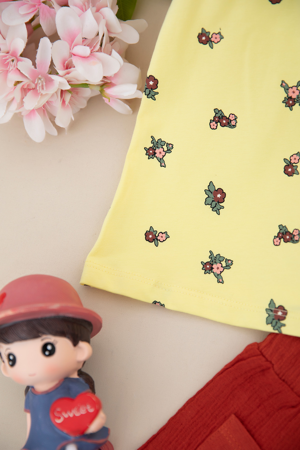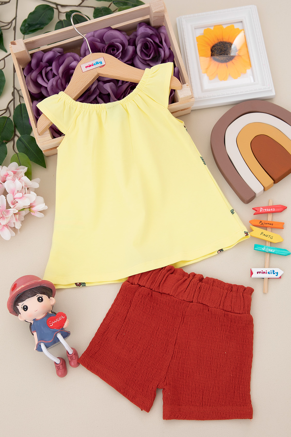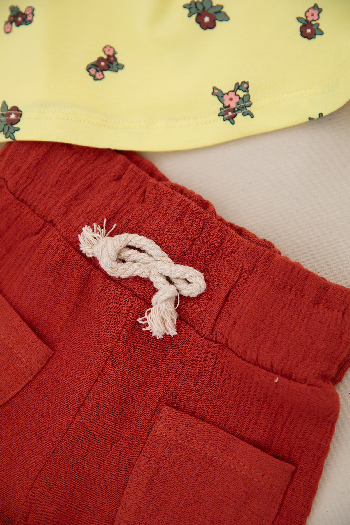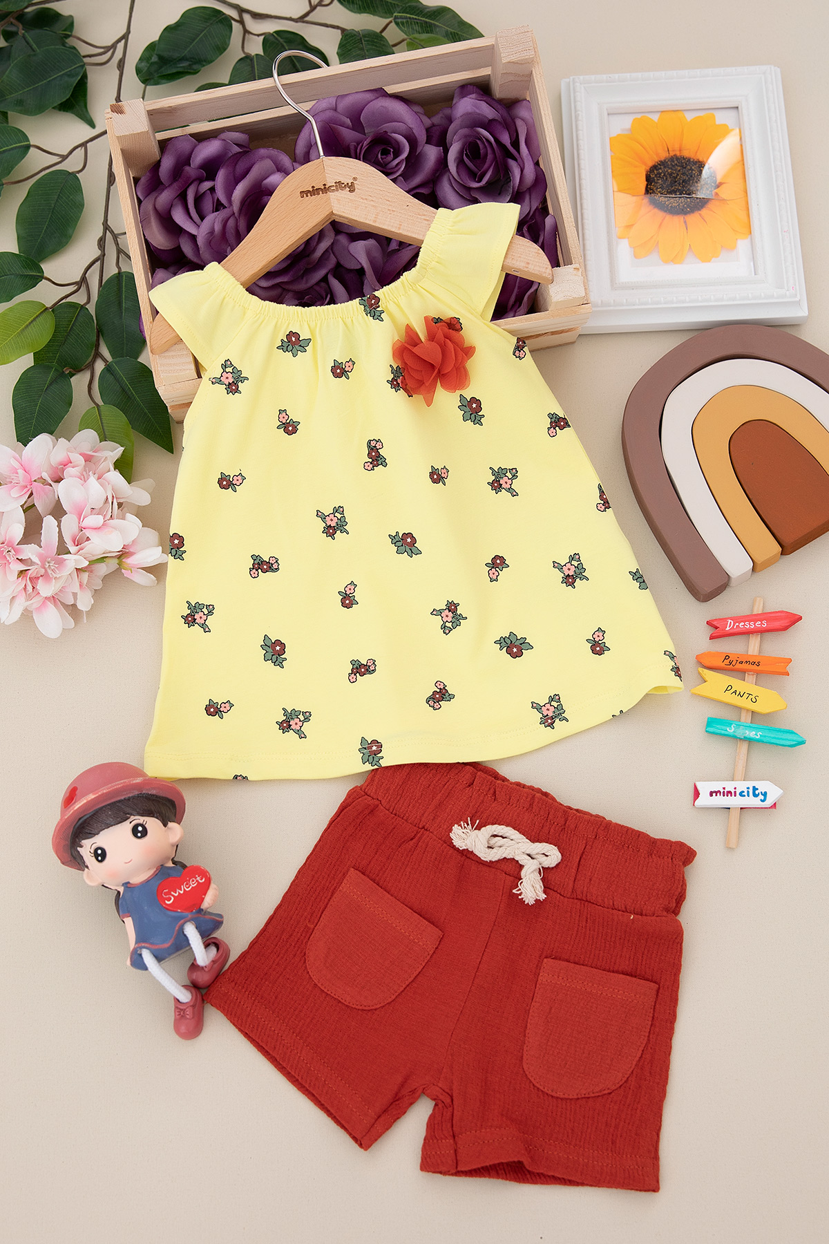 Kız Bebek Çiçek Baskılı Şortlu Takım - 22412 (9-24 Ay)