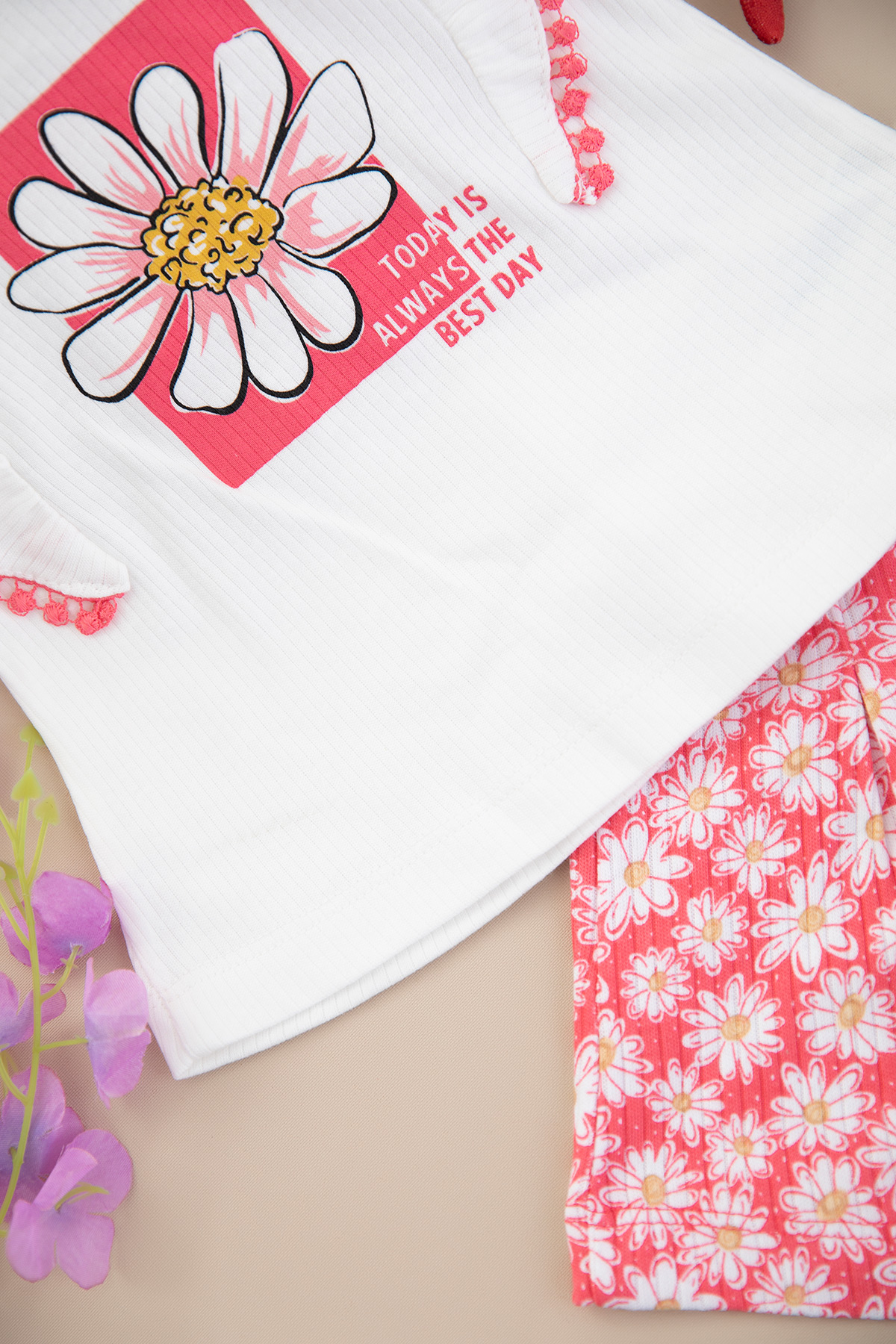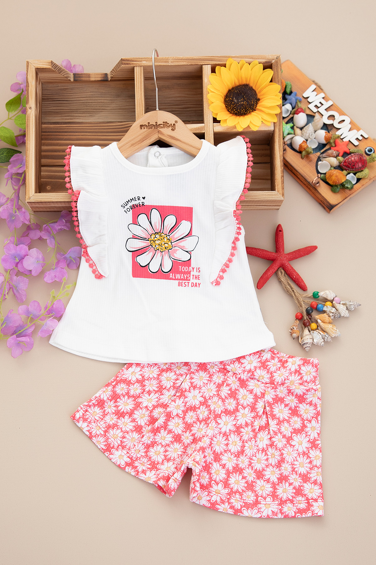 Kız Bebek Çiçek Baskılı Şortlu Takım - 25142 (9-24 Ay)