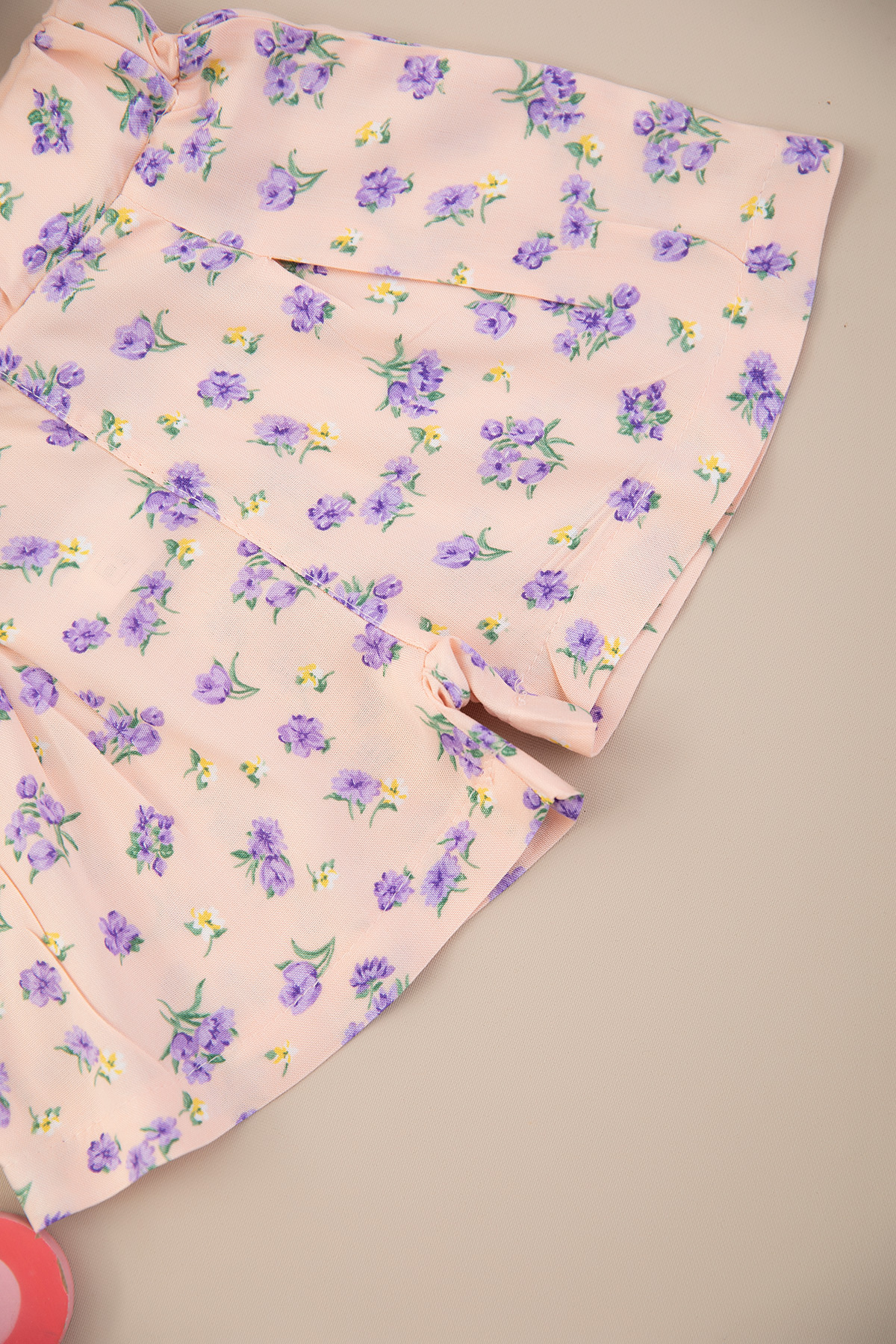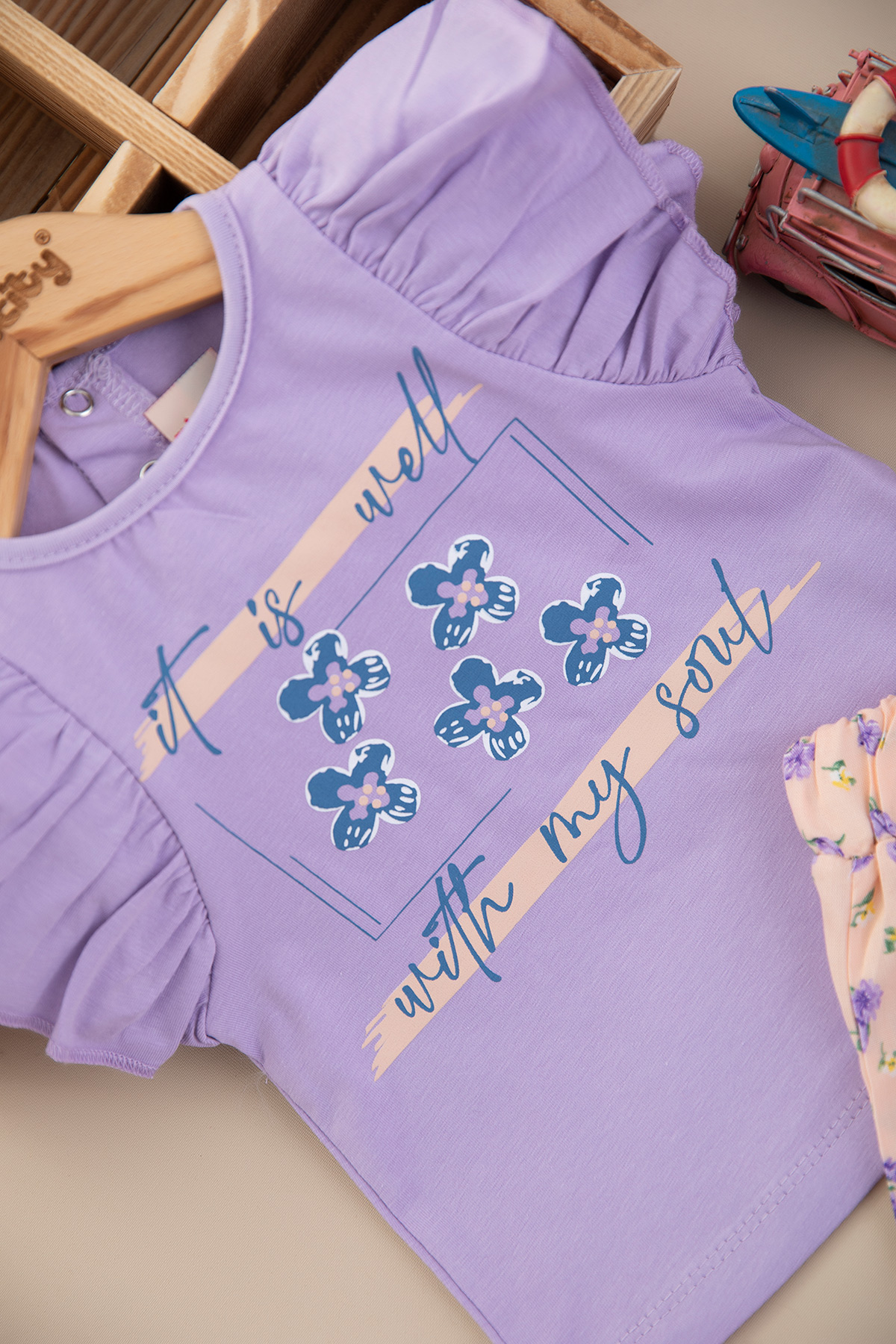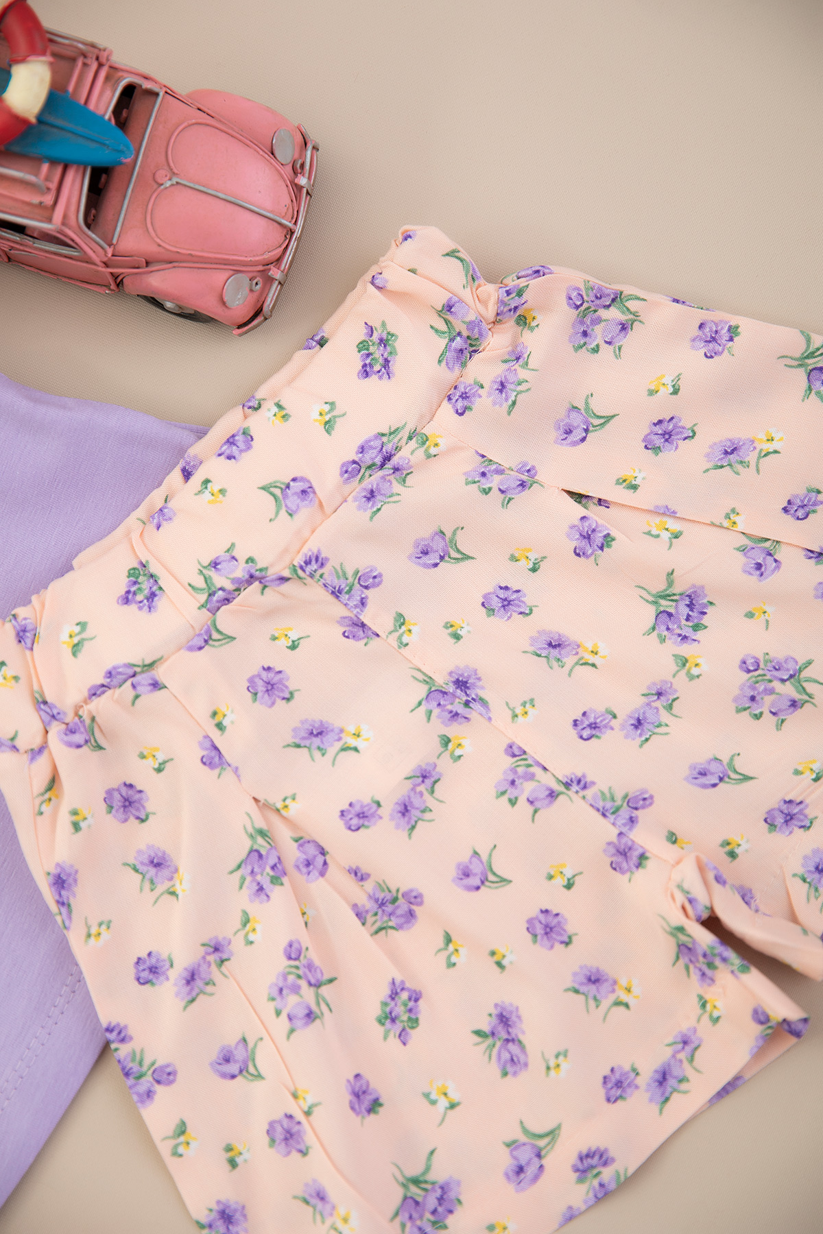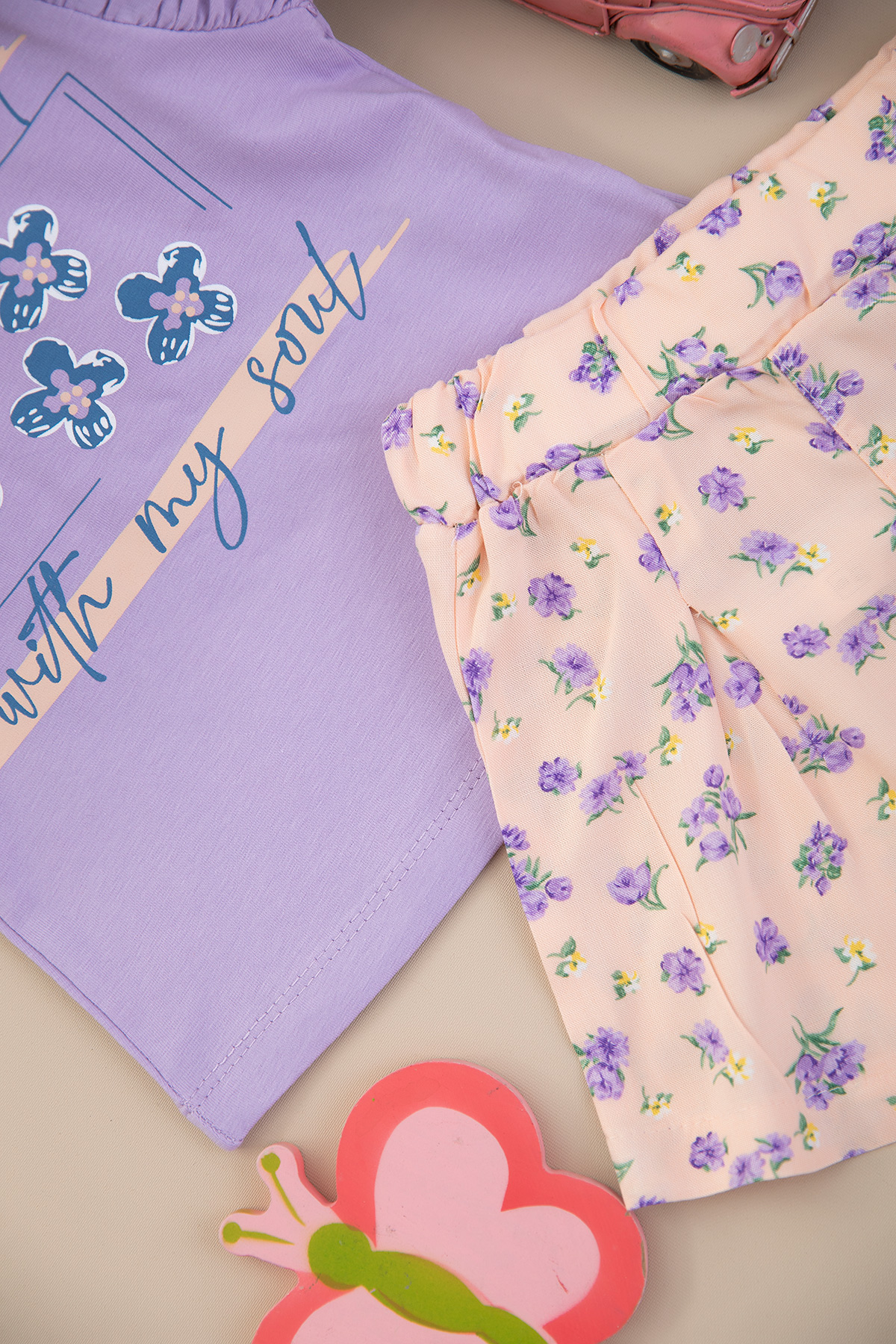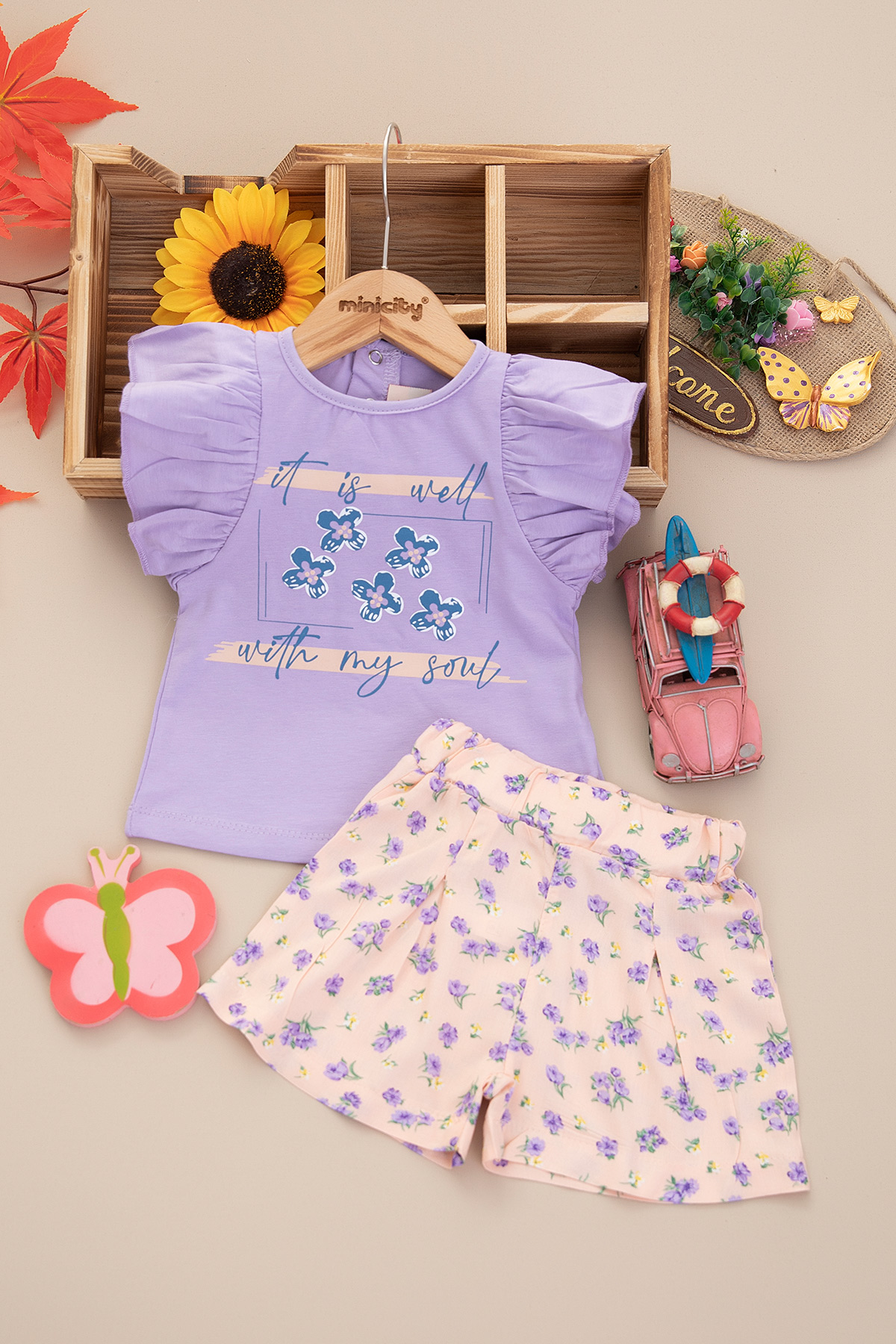 Kız Bebek Çiçek Baskılı Şortlu Takım - 25298 (9-24 Ay)