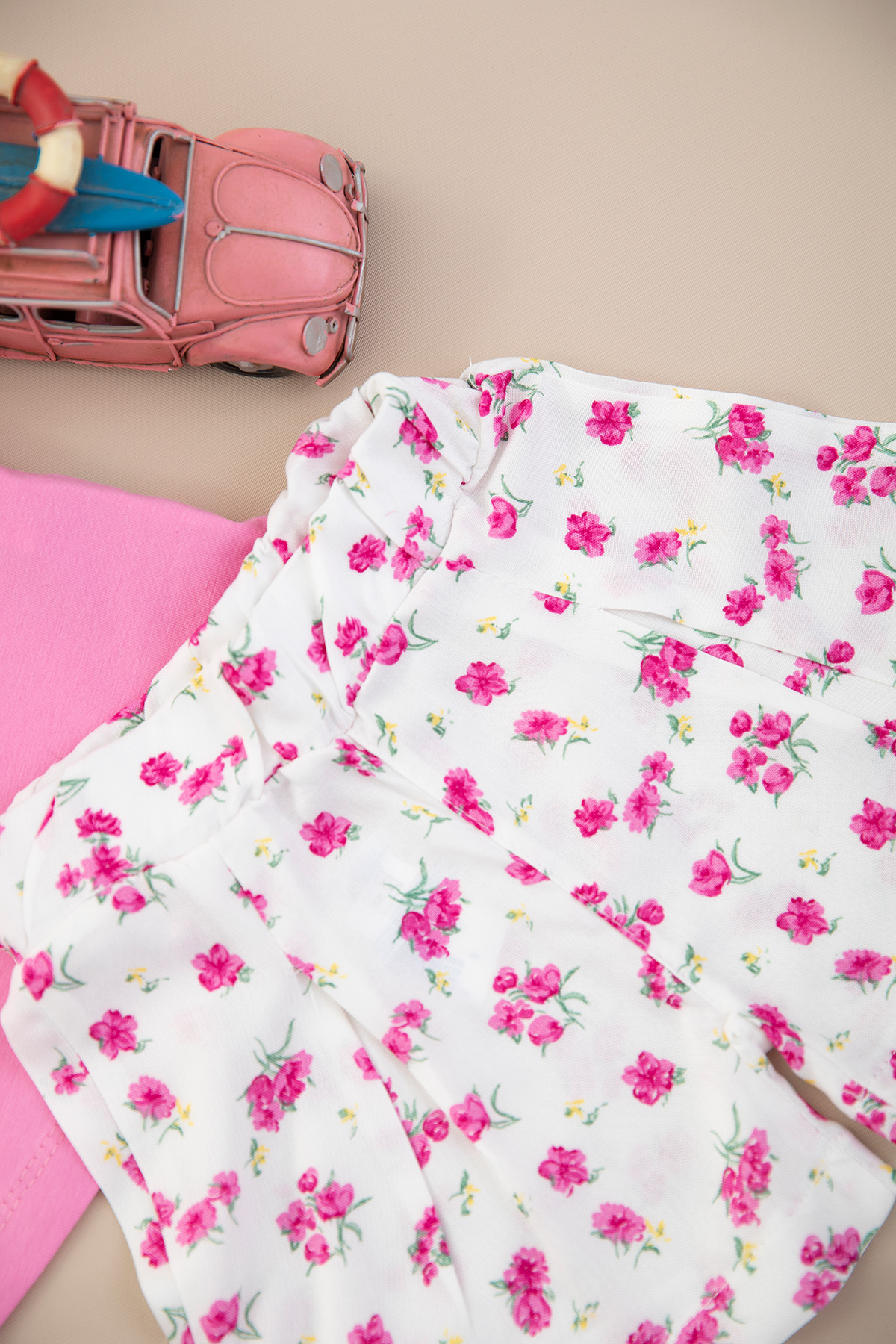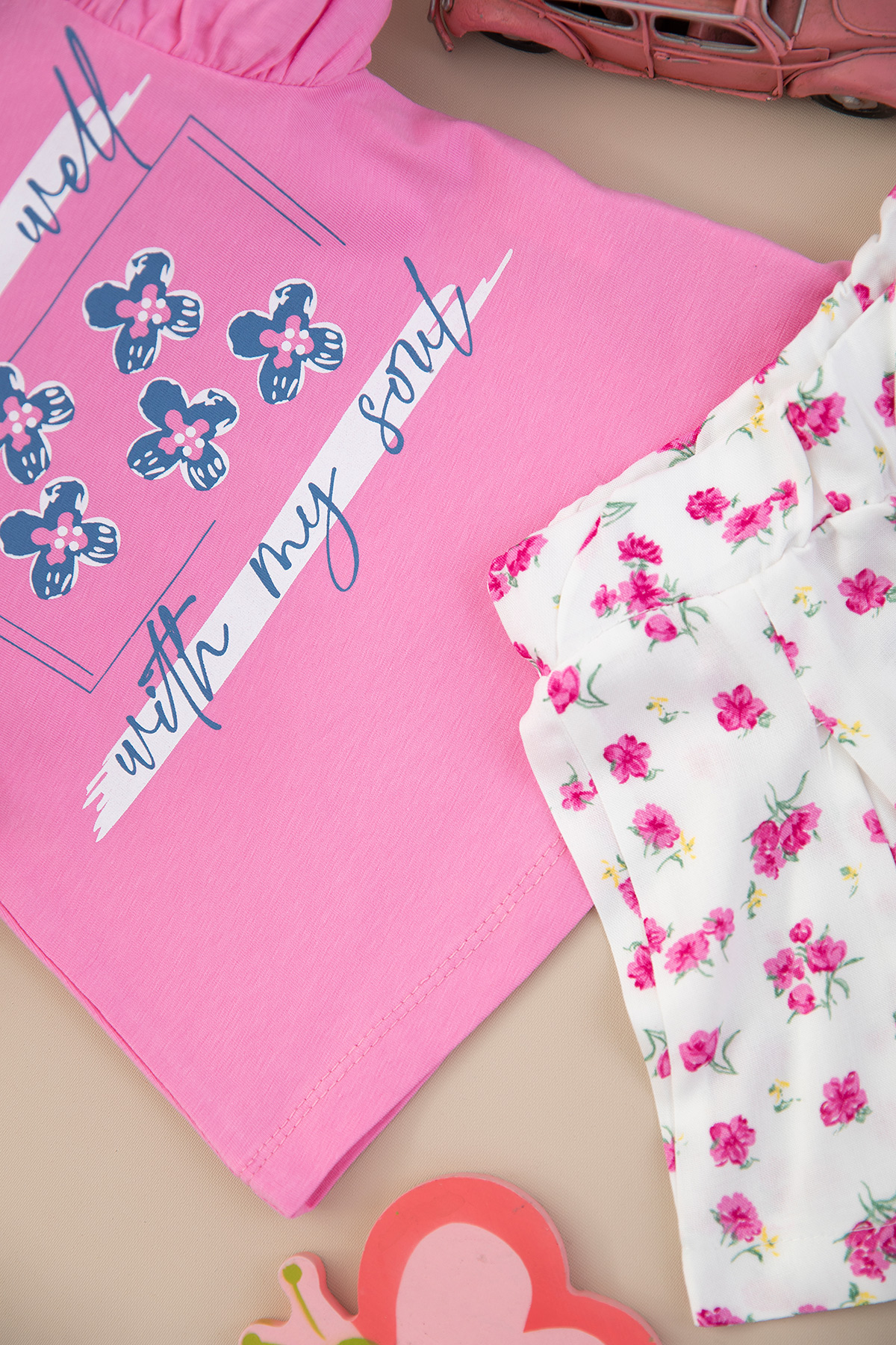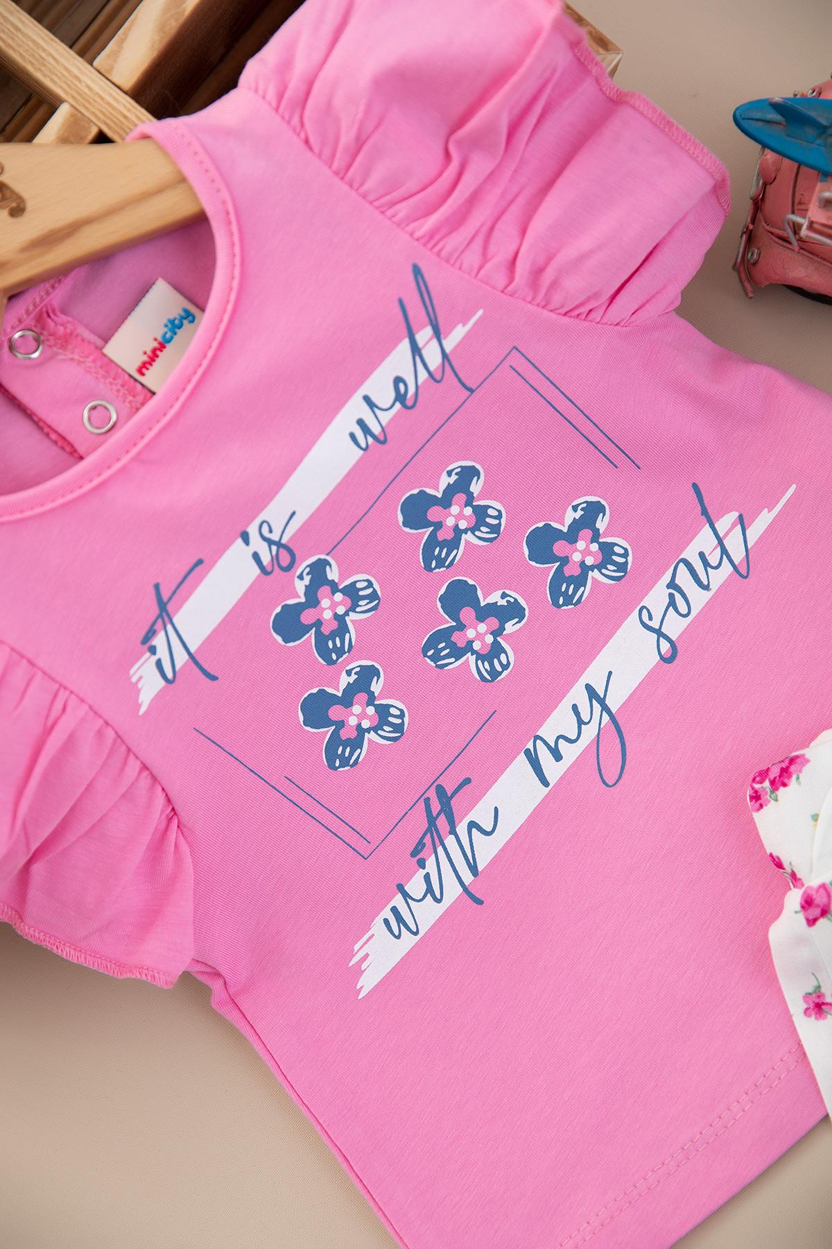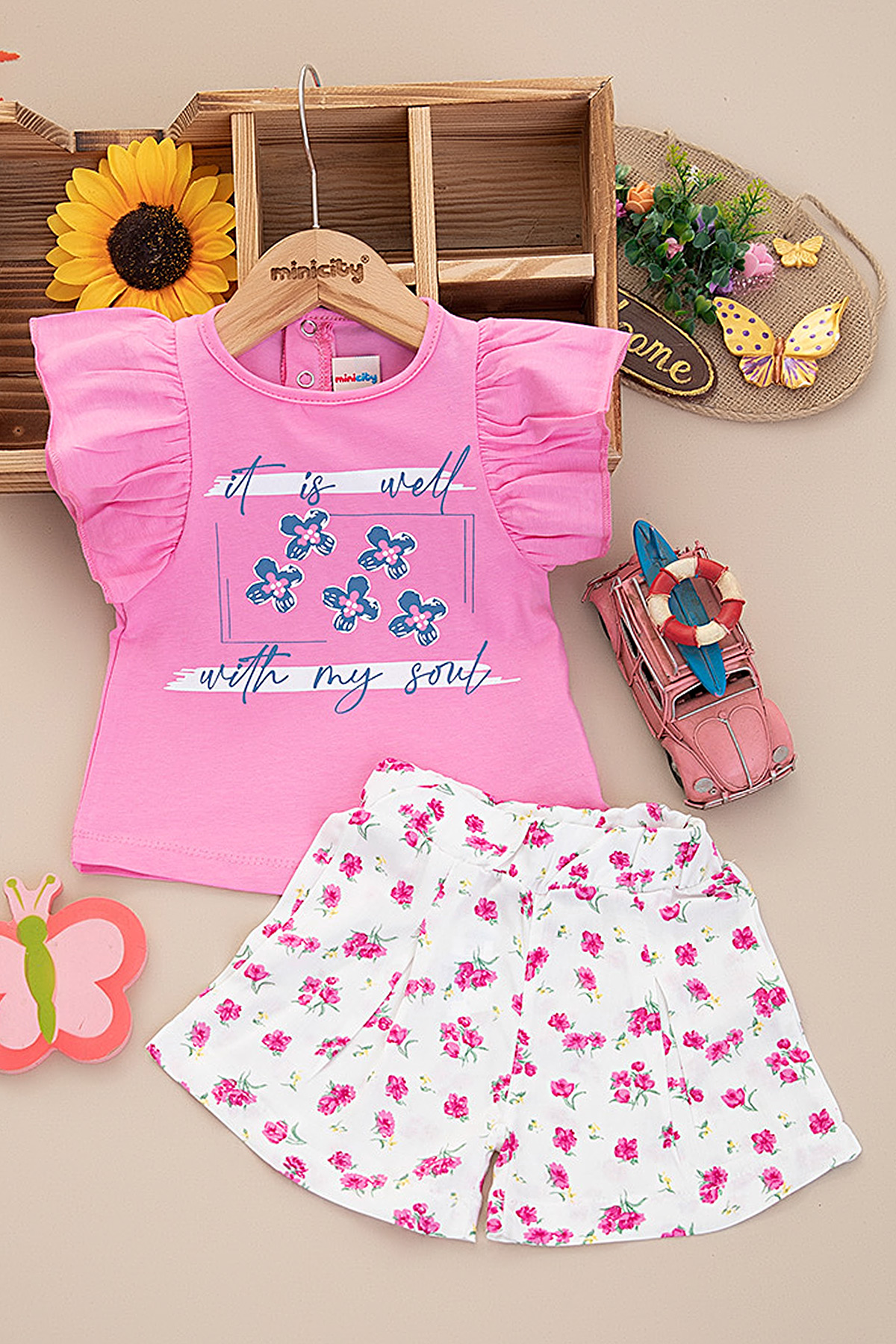 Kız Bebek Çiçek Baskılı Şortlu Takım - 25298 (9-24 Ay)