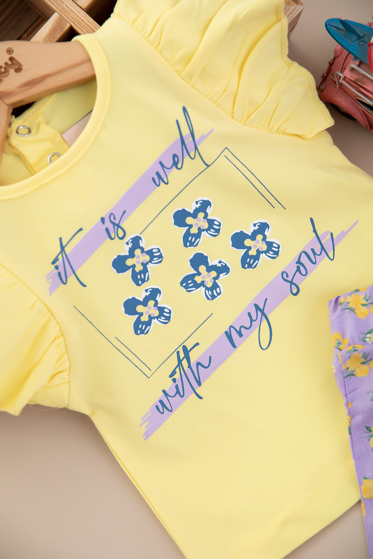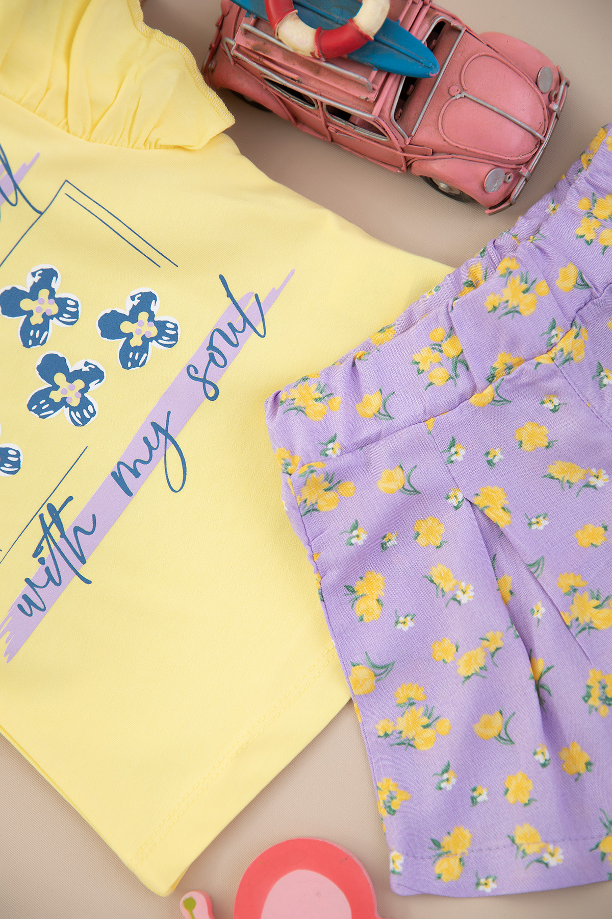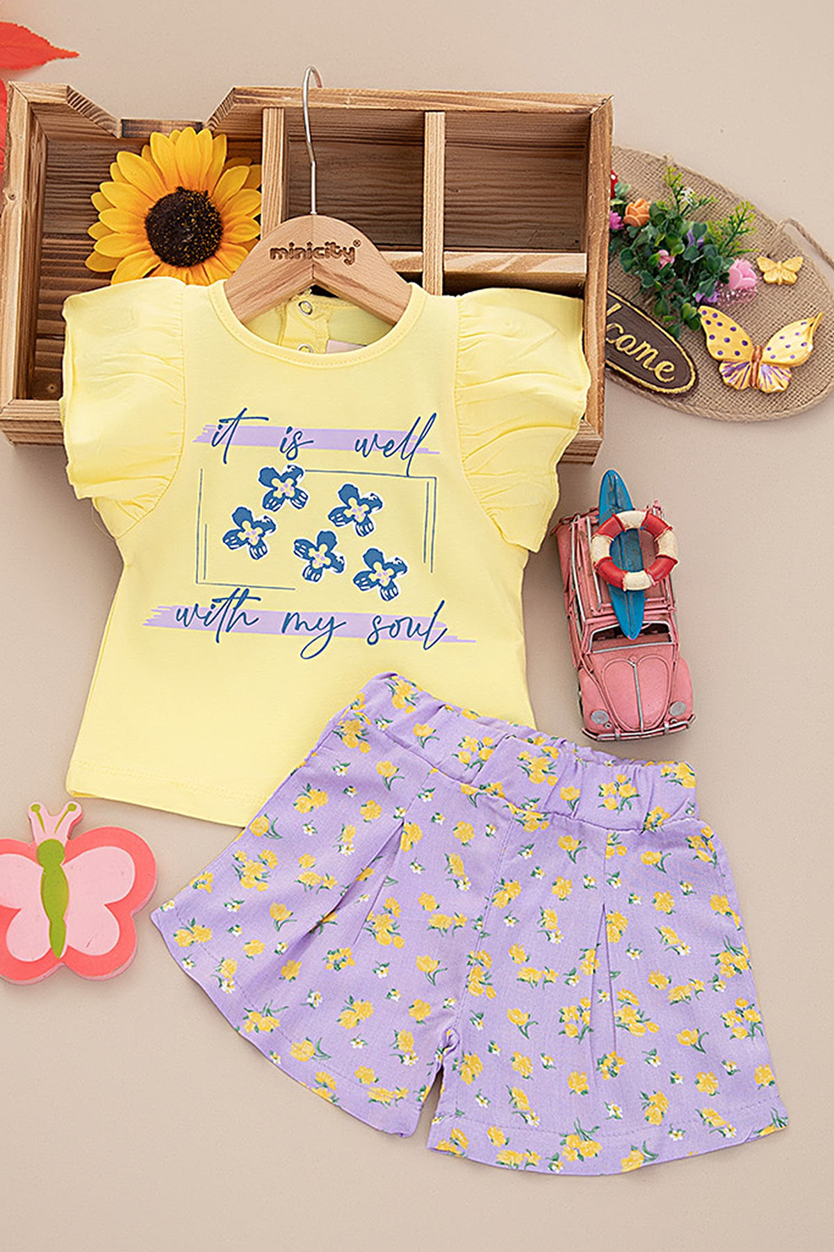 Kız Bebek Çiçek Baskılı Şortlu Takım - 25298 (9-24 Ay)