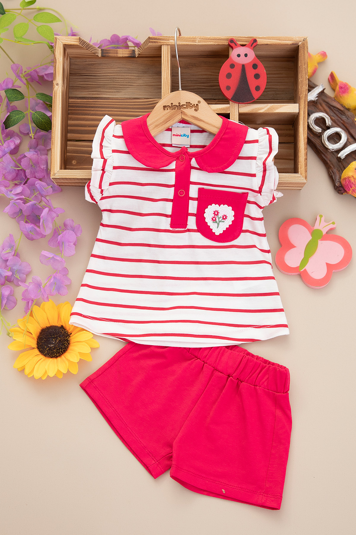 Kız Bebek Çiçek Baskılı Şortlu Takım - 25353 (9-24 Ay)