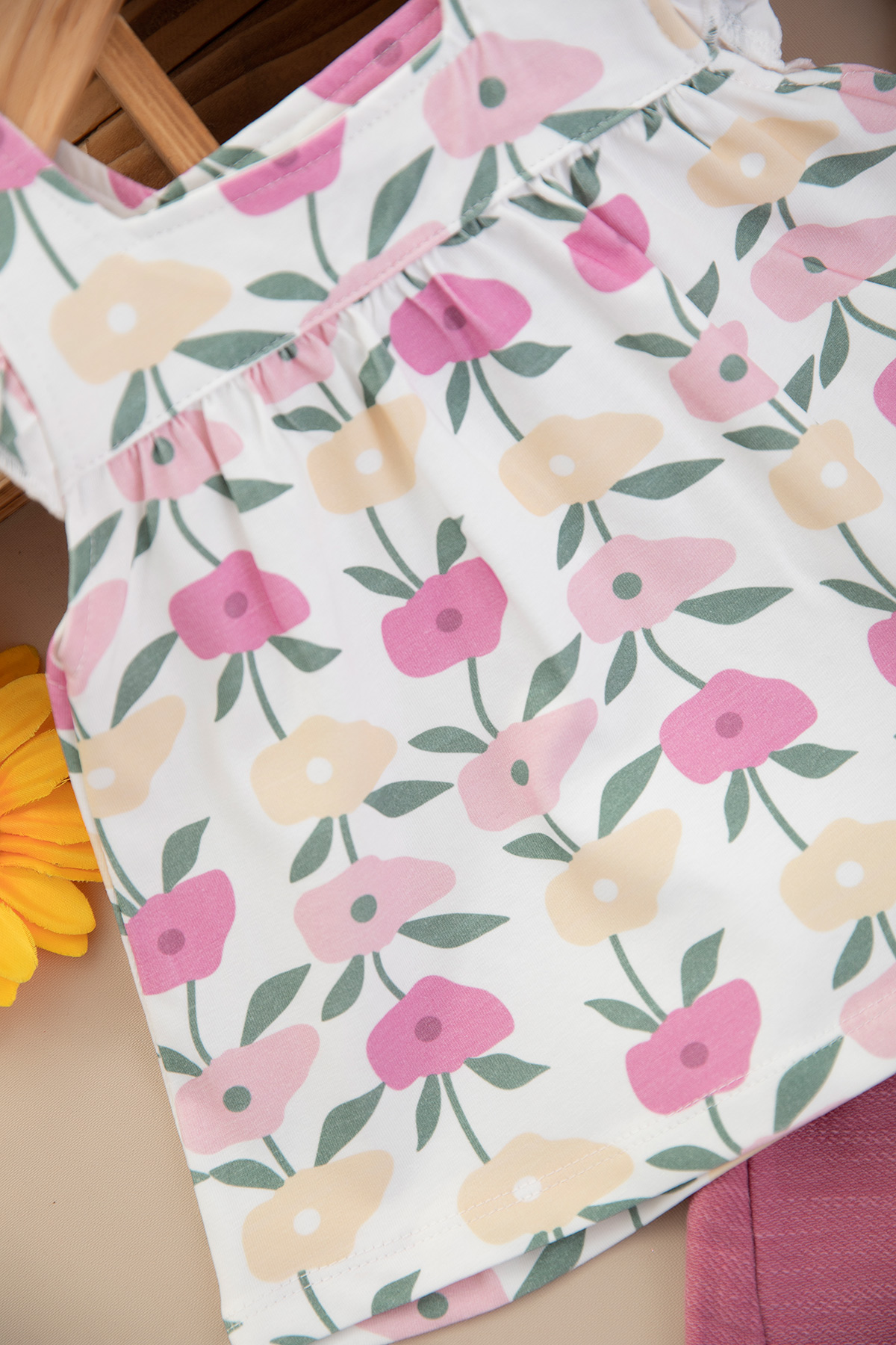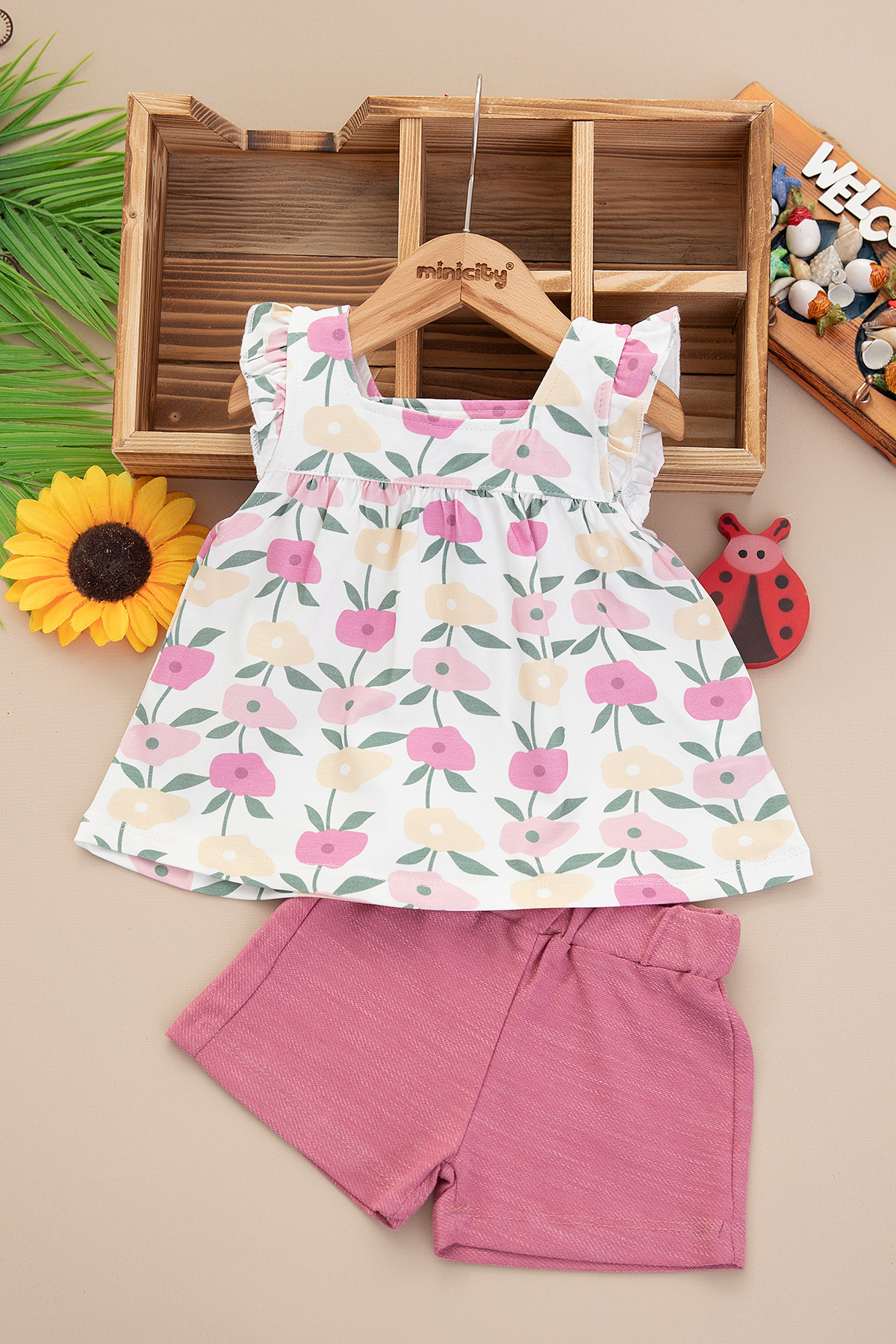 Kız Bebek Çiçek Baskılı Şortlu Takım - 25525 (9-24 Ay)