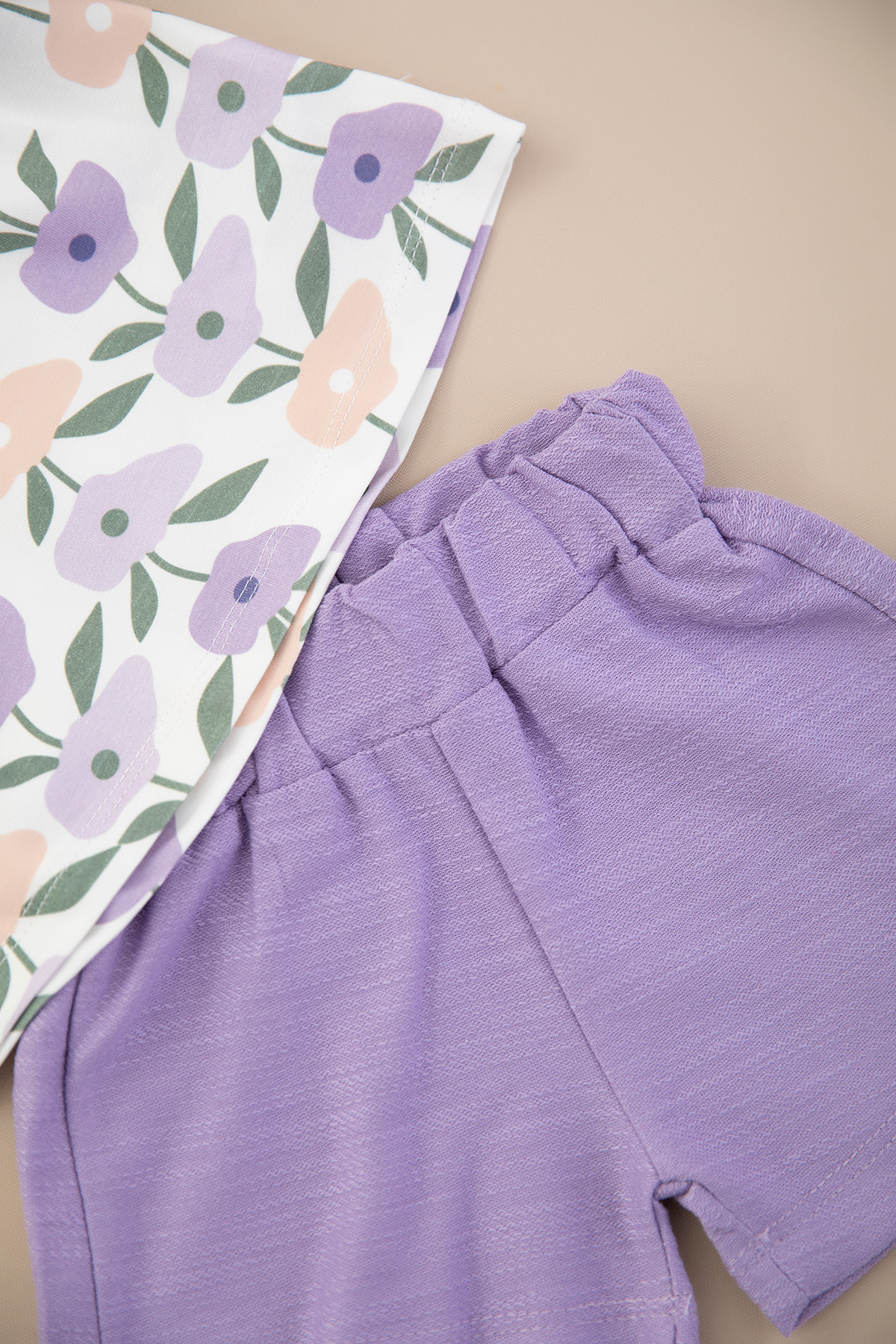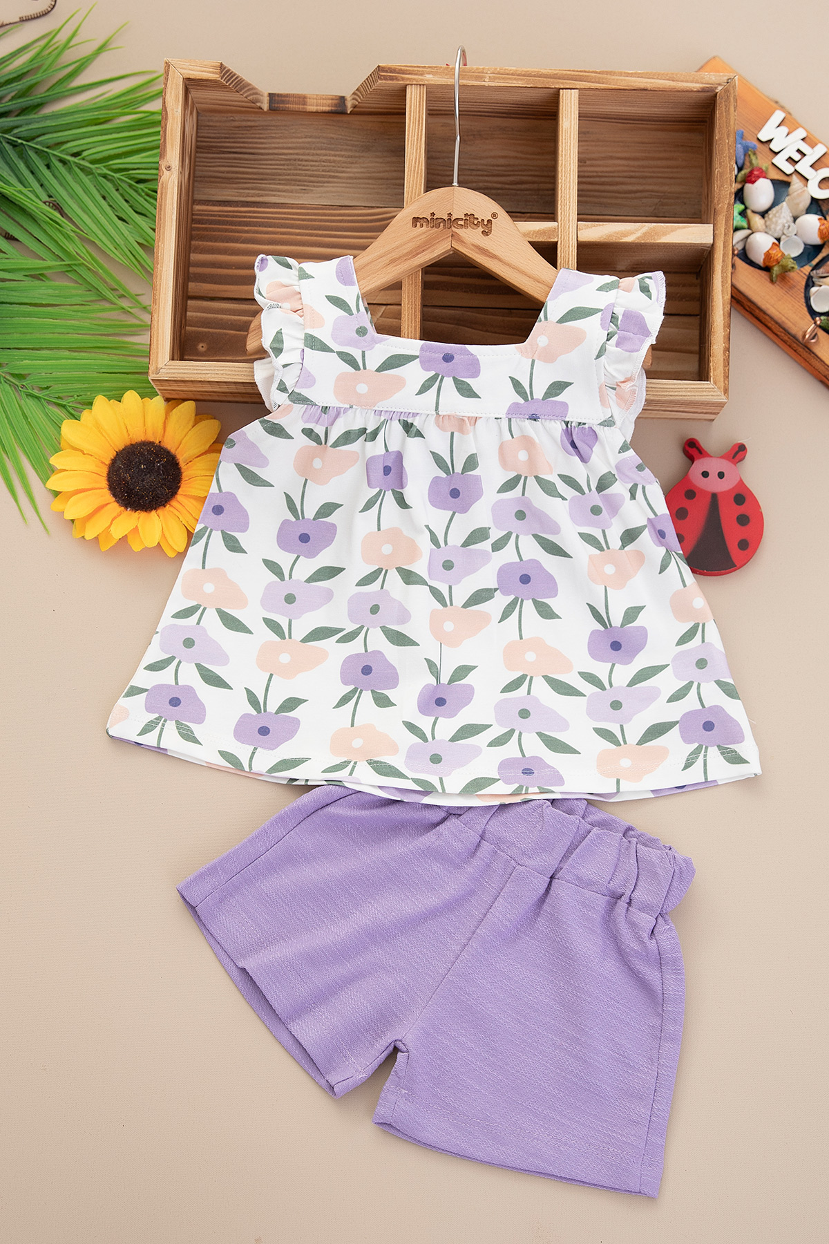 Kız Bebek Çiçek Baskılı Şortlu Takım - 25525 (9-24 Ay)