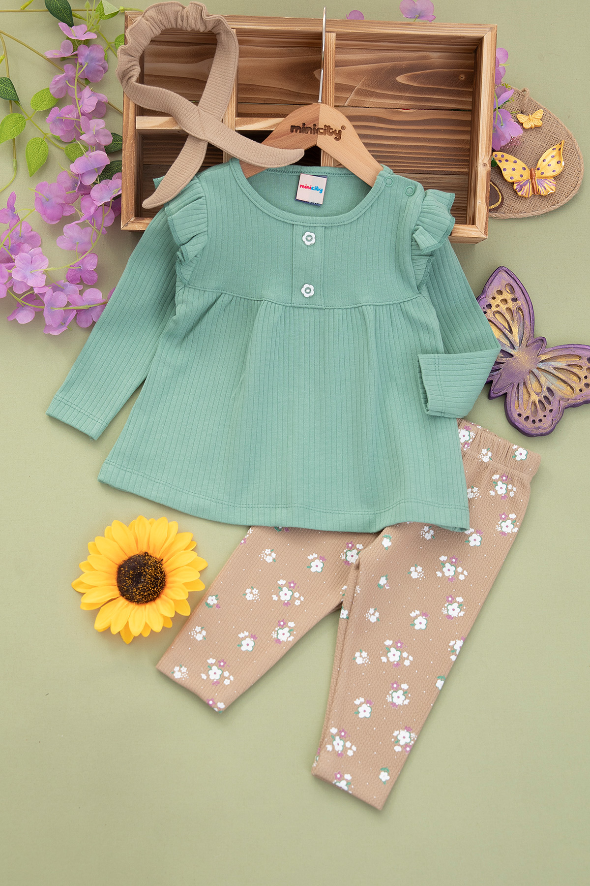 Kız Bebek Çiçek Baskılı Takım - 24512 (9-24 Ay)