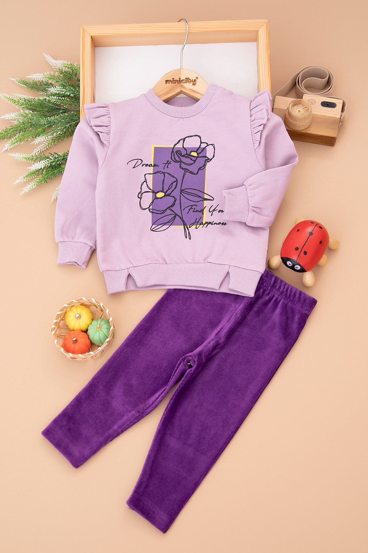 Kız Bebek Çiçek Baskılı Üçip Takım - 23701 (9-24 Ay)