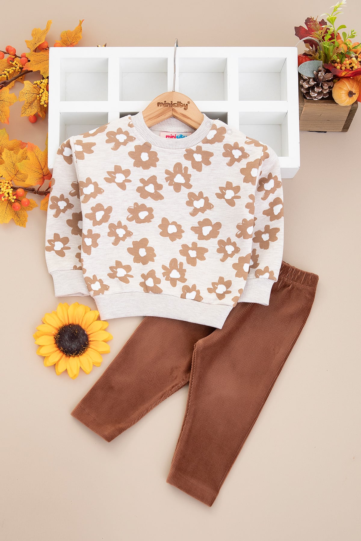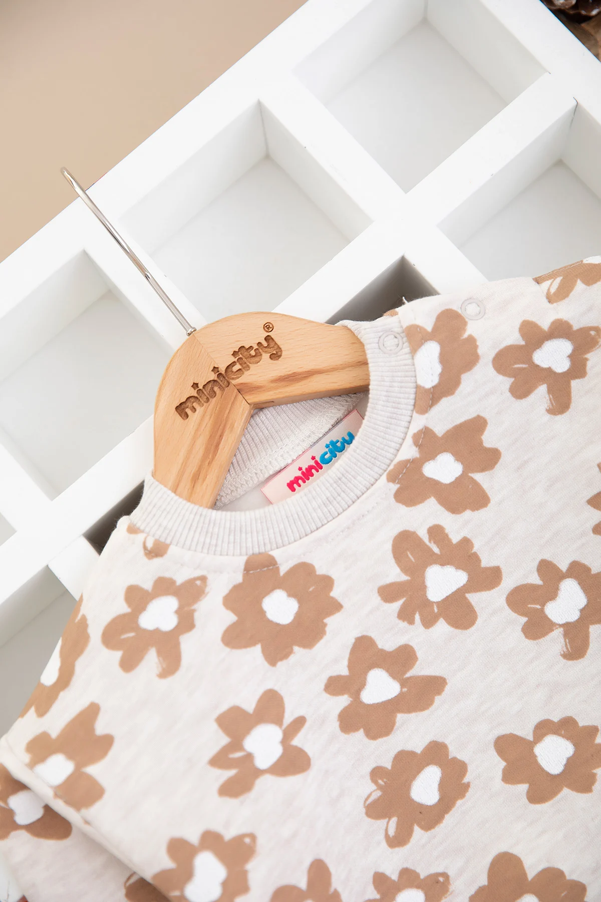 Kız Bebek Çiçek Baskılı Üçip Takım - 25994 (9-24 Ay)