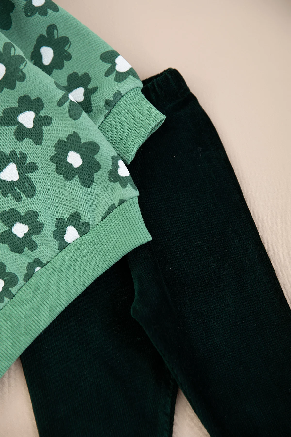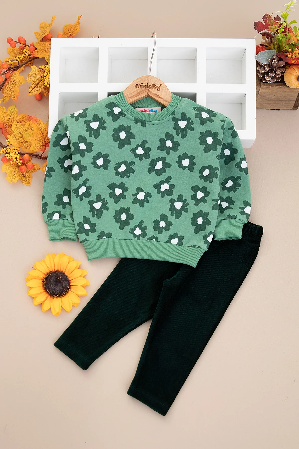 Kız Bebek Çiçek Baskılı Üçip Takım - 25994 (9-24 Ay)