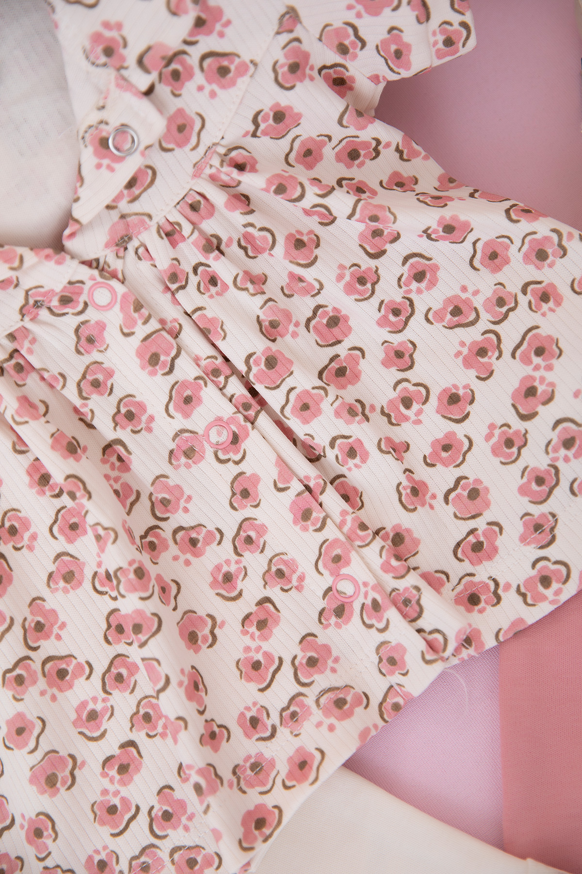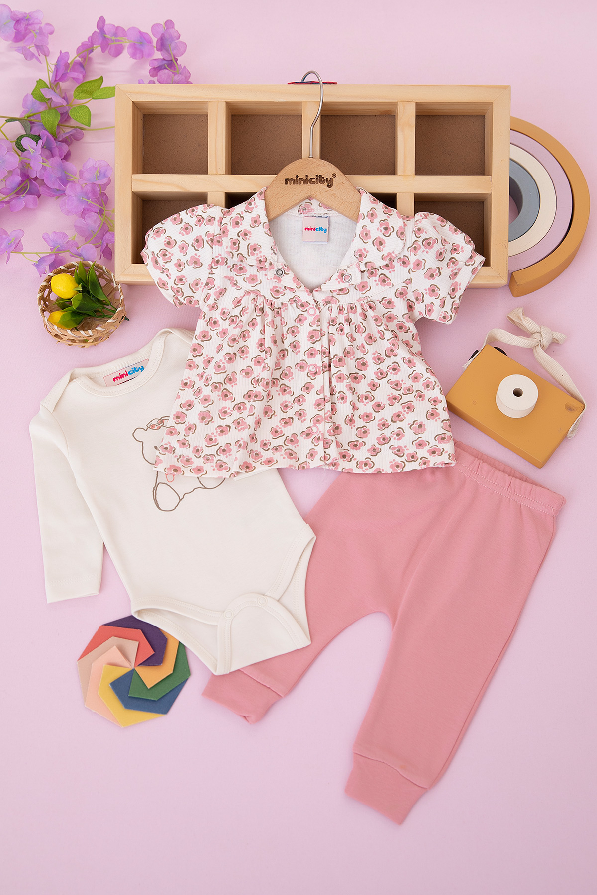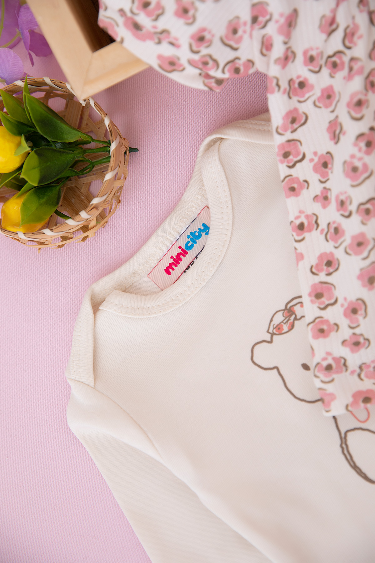 Kız Bebek Çiçek Baskılı Üçlü Takım - NB050 (3-12 Ay)