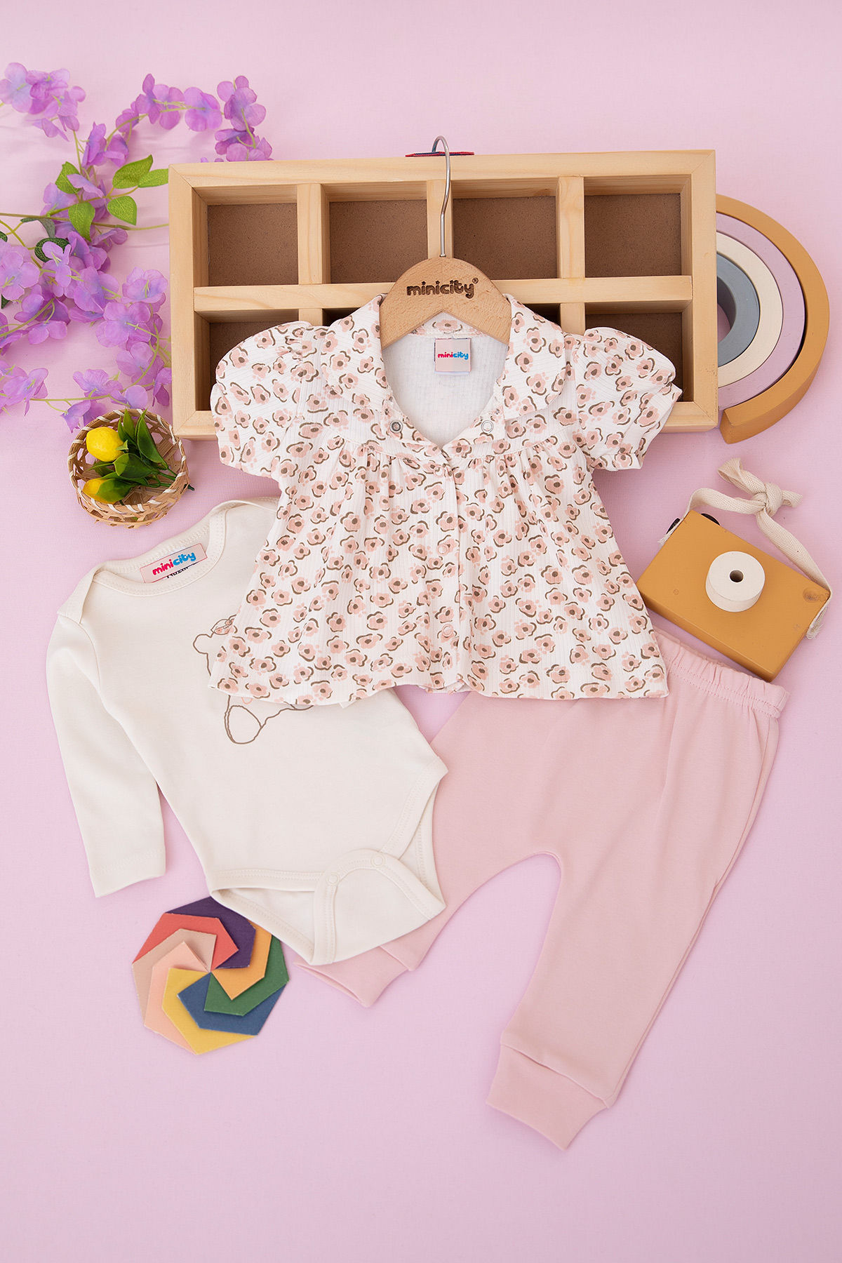 Kız Bebek Çiçek Baskılı Üçlü Takım - NB050 (3-12 Ay)